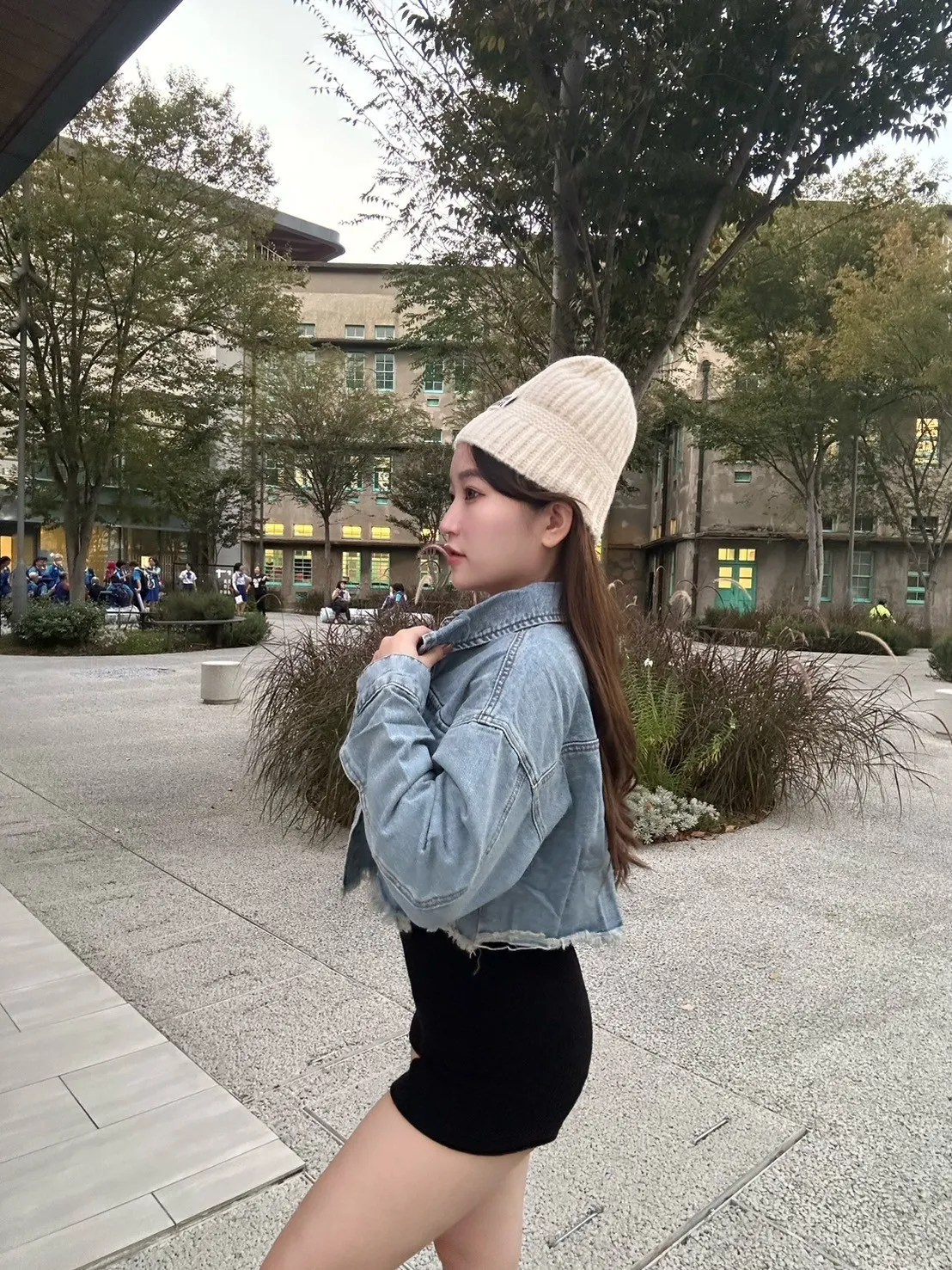 闆娘實穿:150/40短版版型 穿上身打造3:7好身材😎 下擺不修邊 背後刷破設計 帥氣感十足🖤 大口袋設計超方便 跳色反車線 提升設計感✨ 下身搭配皮褲也很靚 牛仔外套單品絕對不會出錯💯 搭配什麼都好看百搭><