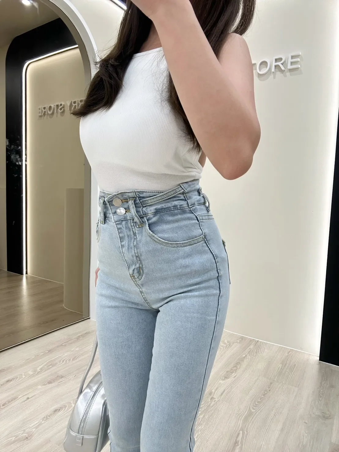 𝒔𝒉𝒆𝒓𝒓𝒚𝒔𝒕𝒐𝒓𝒆會呼吸的牛仔側邊交叉微喇叭褲60380