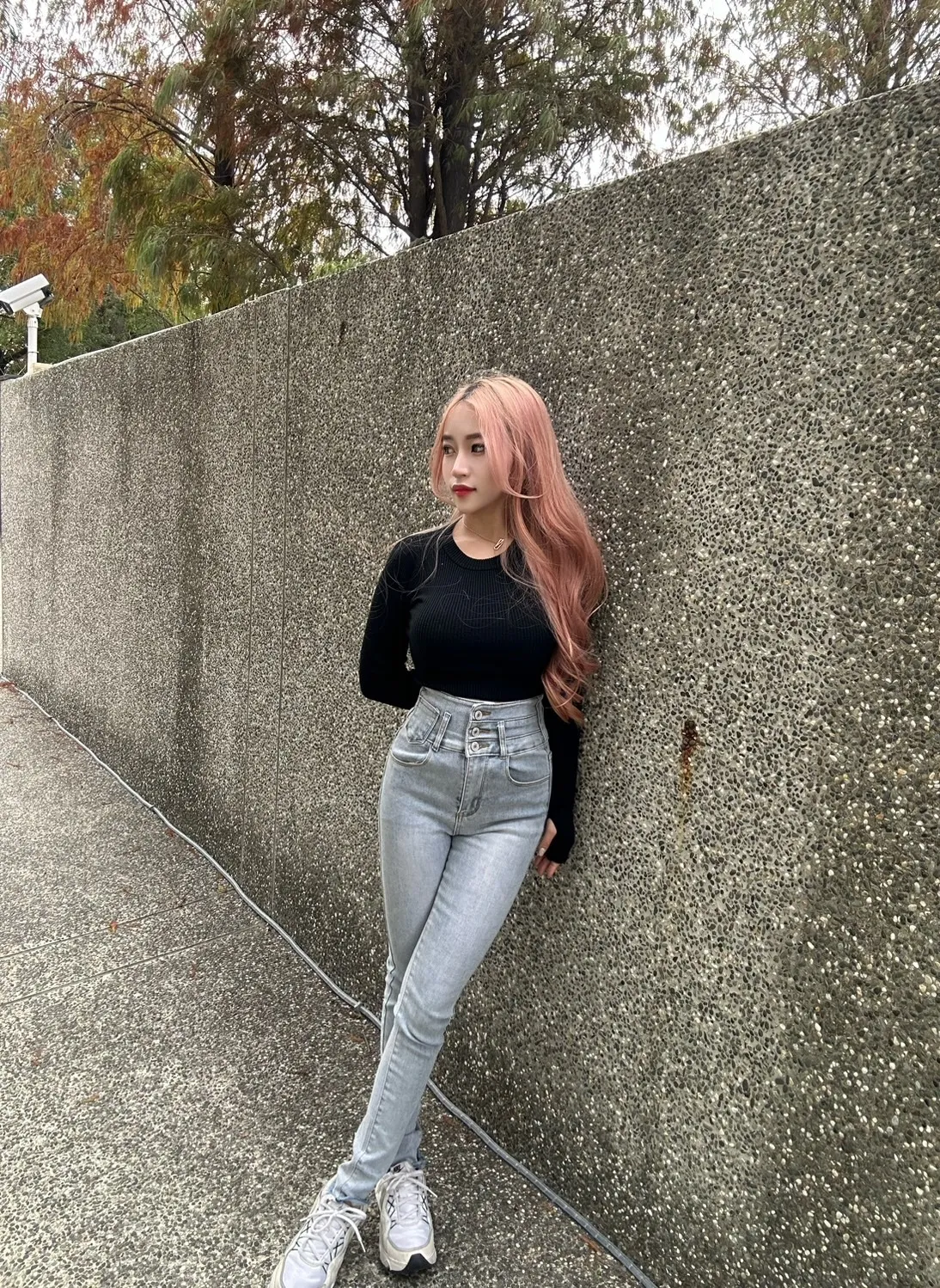 現貨+預購高腰刷色顯瘦彈性三排釦牛仔長褲90051