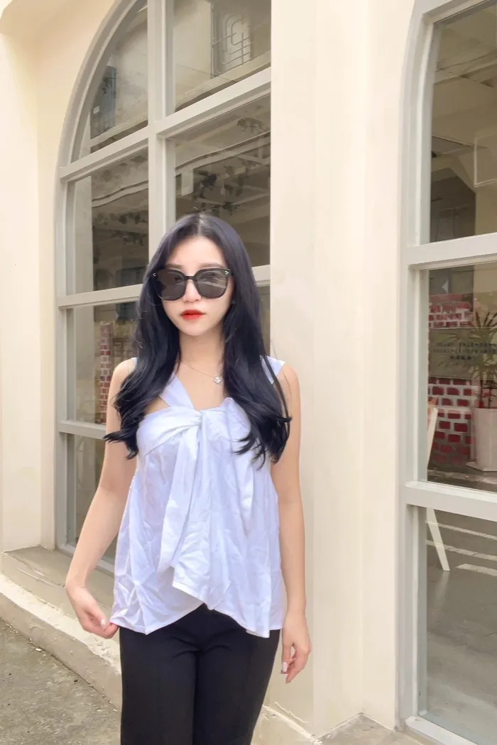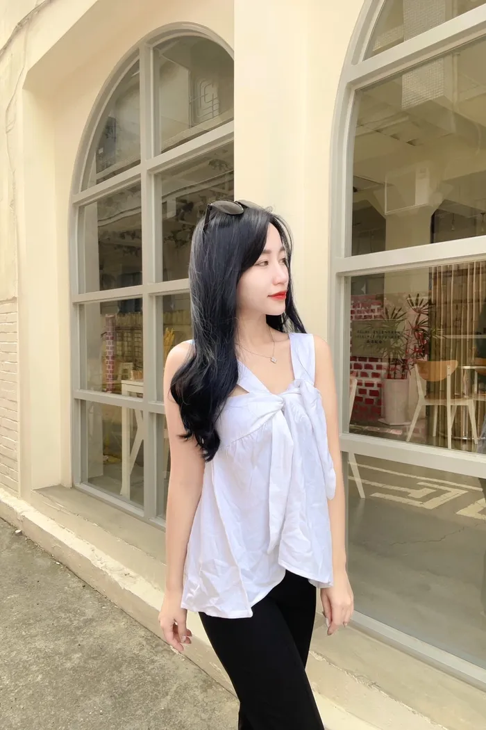 夏季甜美荷葉邊綁繩蝴蝶結上衣A2018