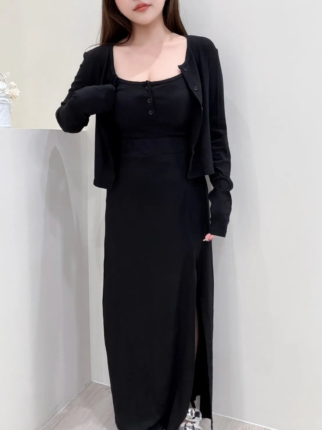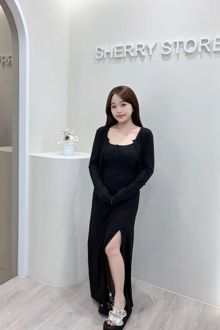𝒔𝒉𝒆𝒓𝒓𝒚𝒔𝒕𝒐𝒓𝒆白搭修飾好身材開衩三件套長裙AA25115