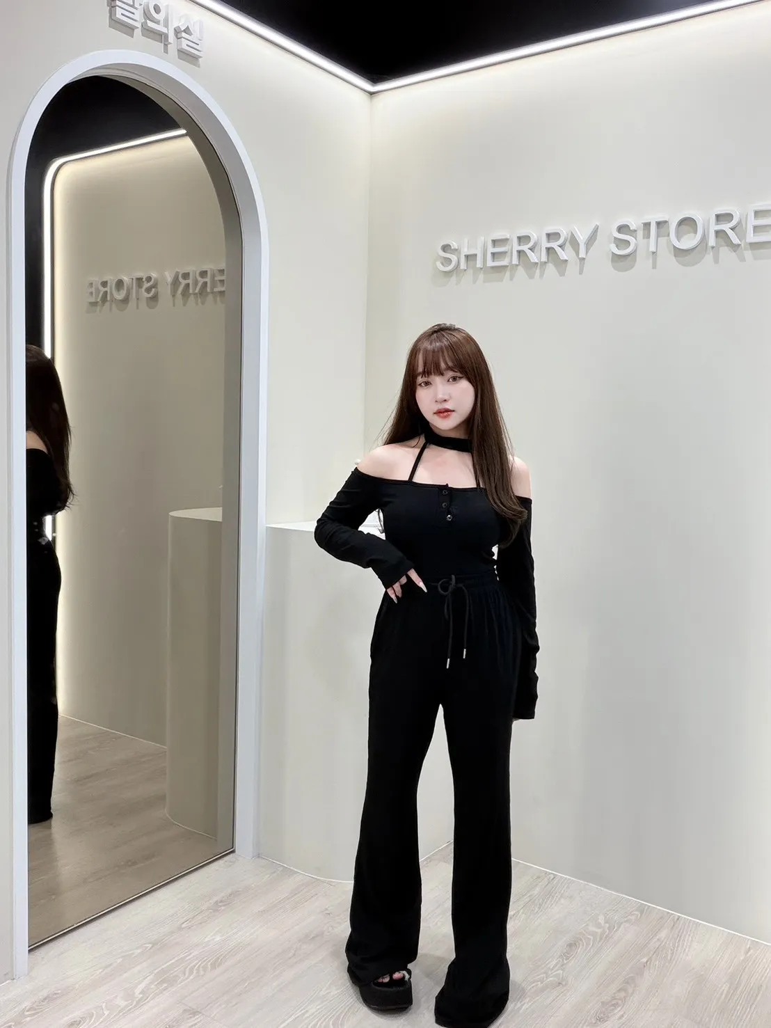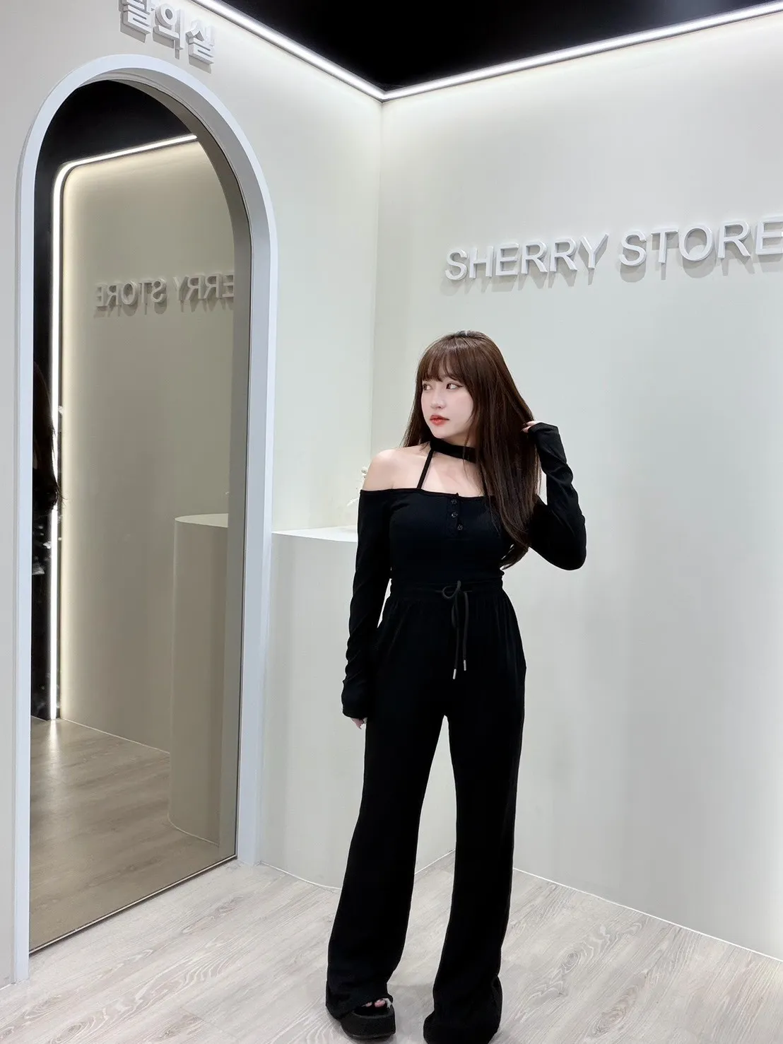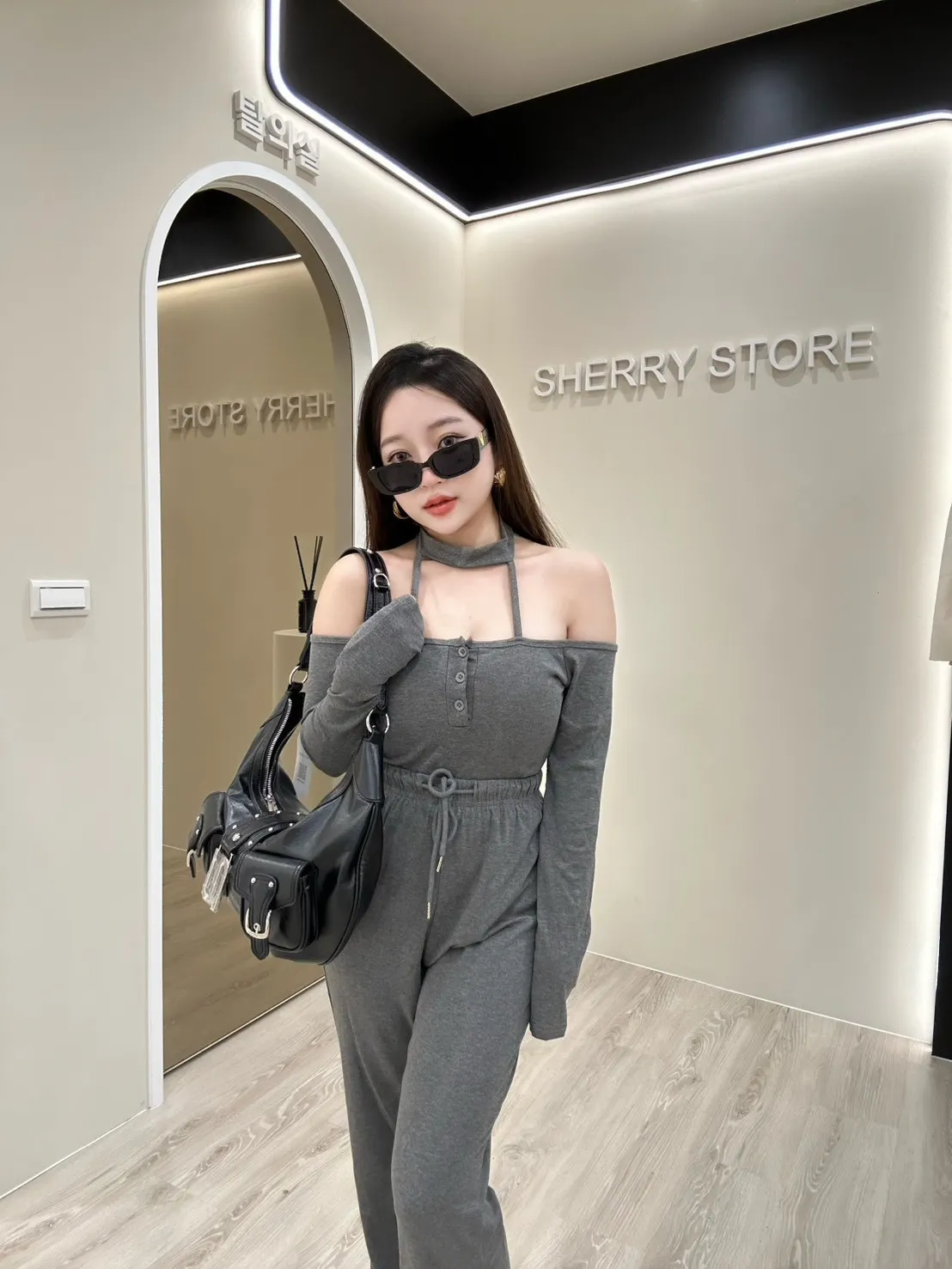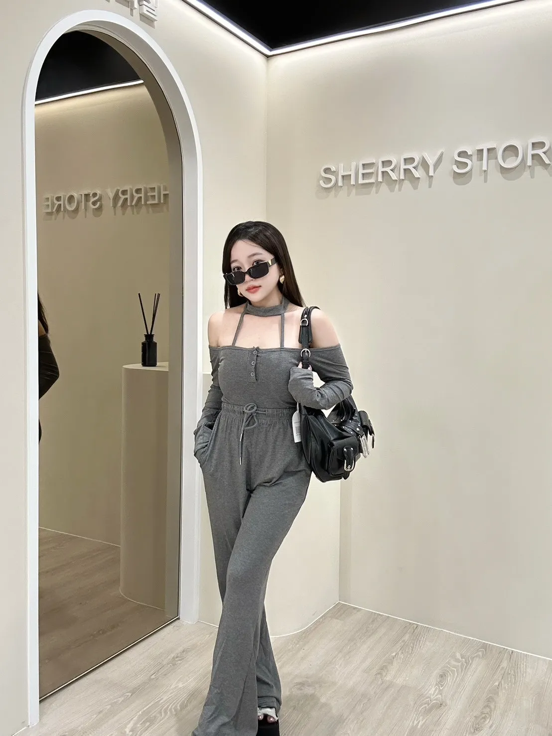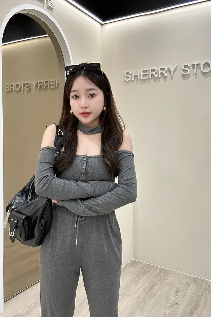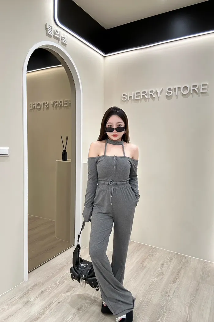 𝒔𝒉𝒆𝒓𝒓𝒚𝒔𝒕𝒐𝒓𝒆辣妹掛脖一字領早秋兩件式套裝褲AA5736
