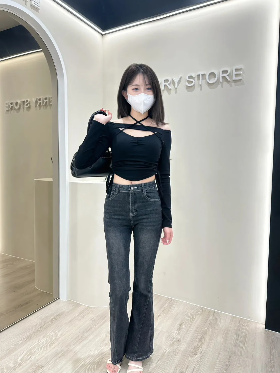 𝒔𝒉𝒆𝒓𝒓𝒚𝒔𝒕𝒐𝒓𝒆長腿小姊姊高腰三排扣刷色後交叉喇叭褲AY9102