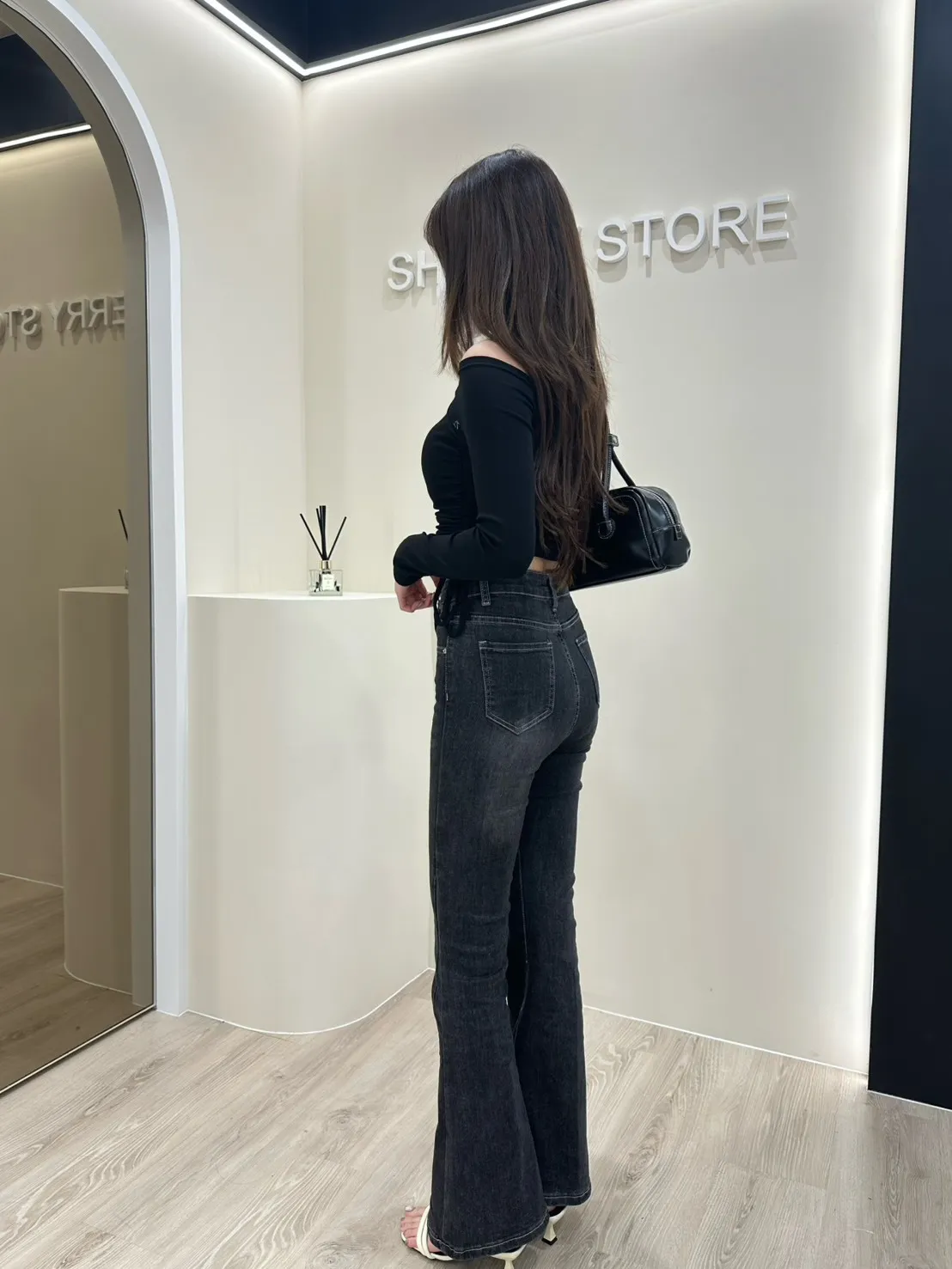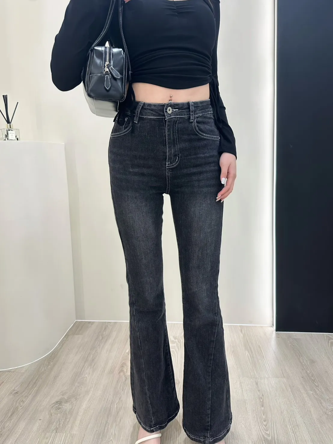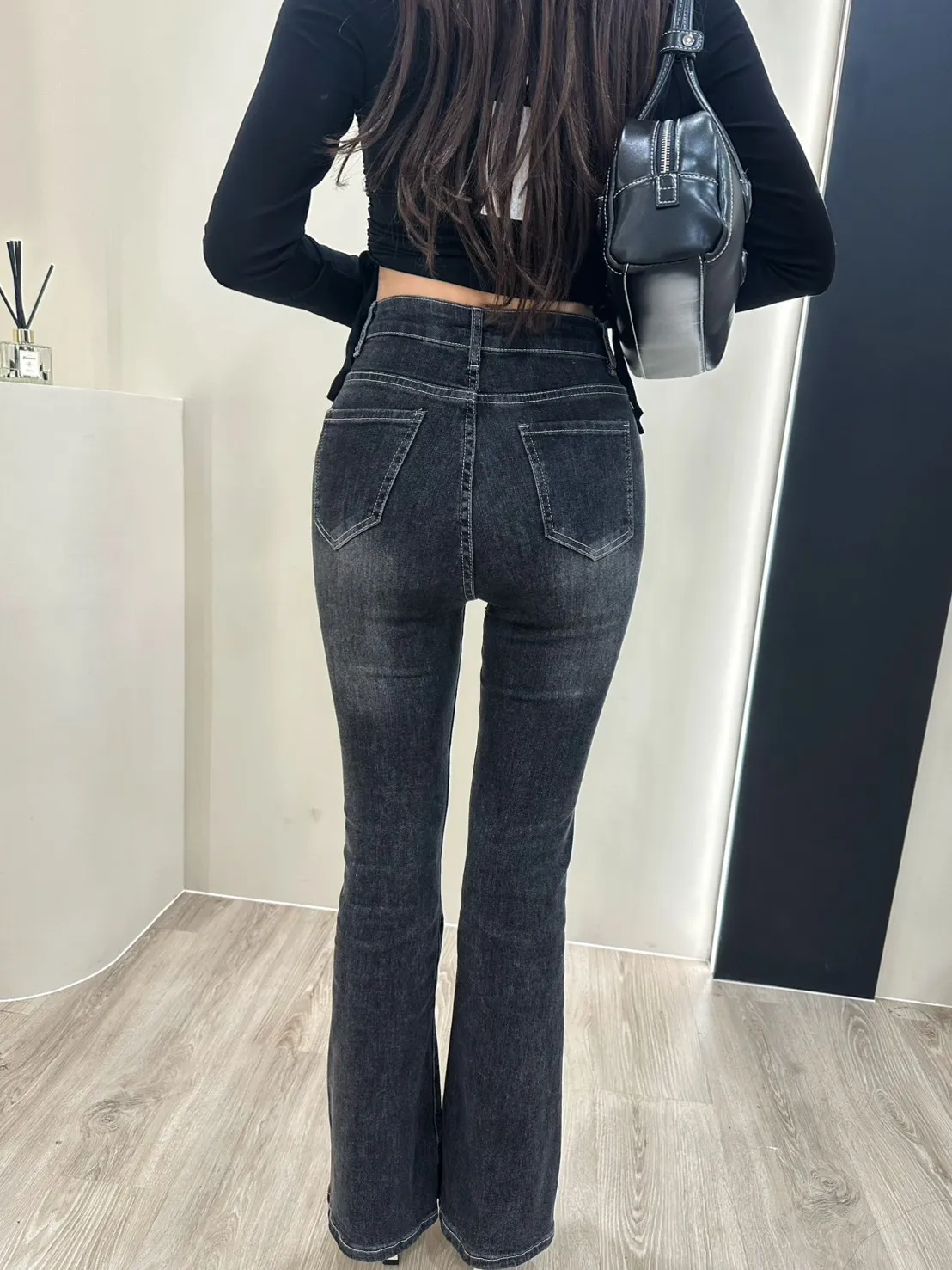 𝒔𝒉𝒆𝒓𝒓𝒚𝒔𝒕𝒐𝒓𝒆歐膩好顯瘦復古刷色喇叭褲AY9082