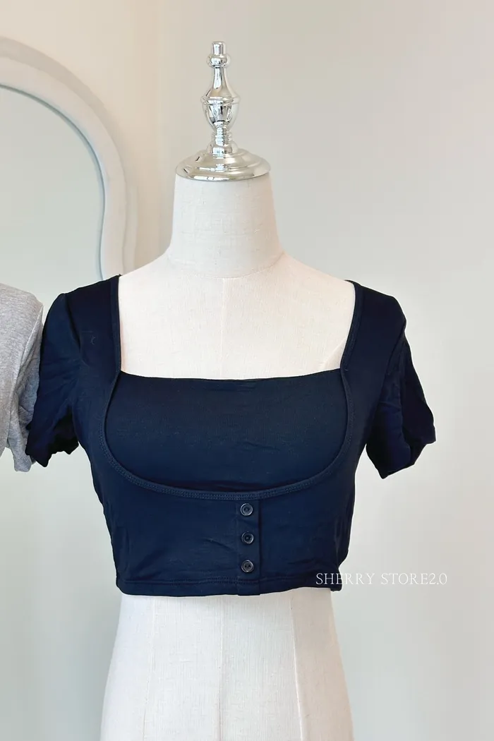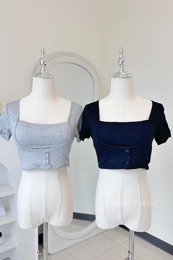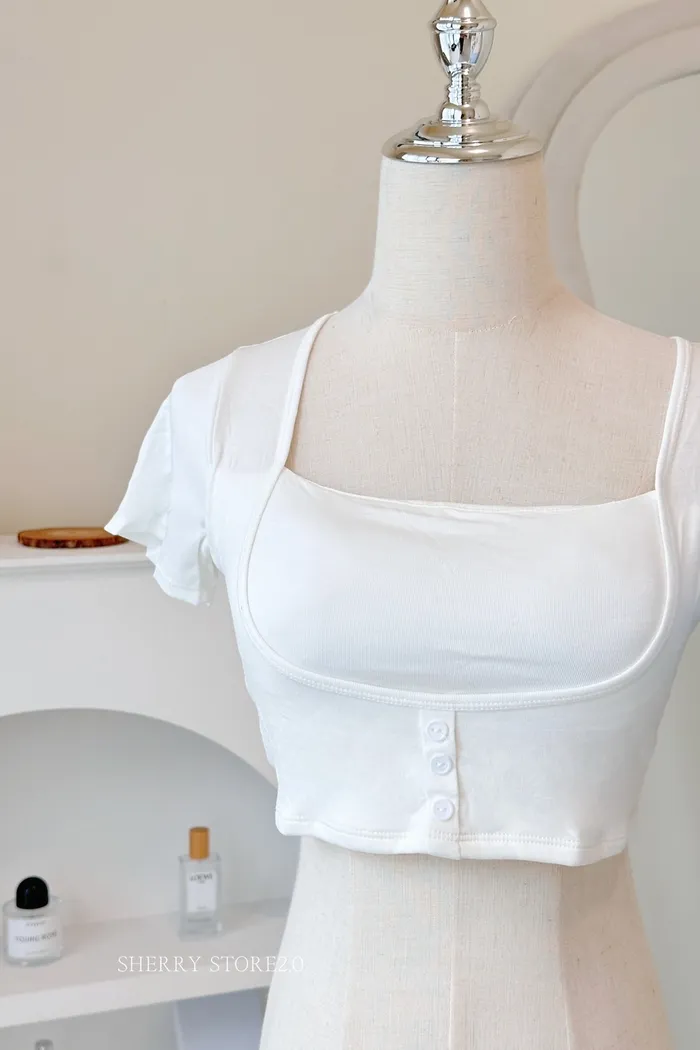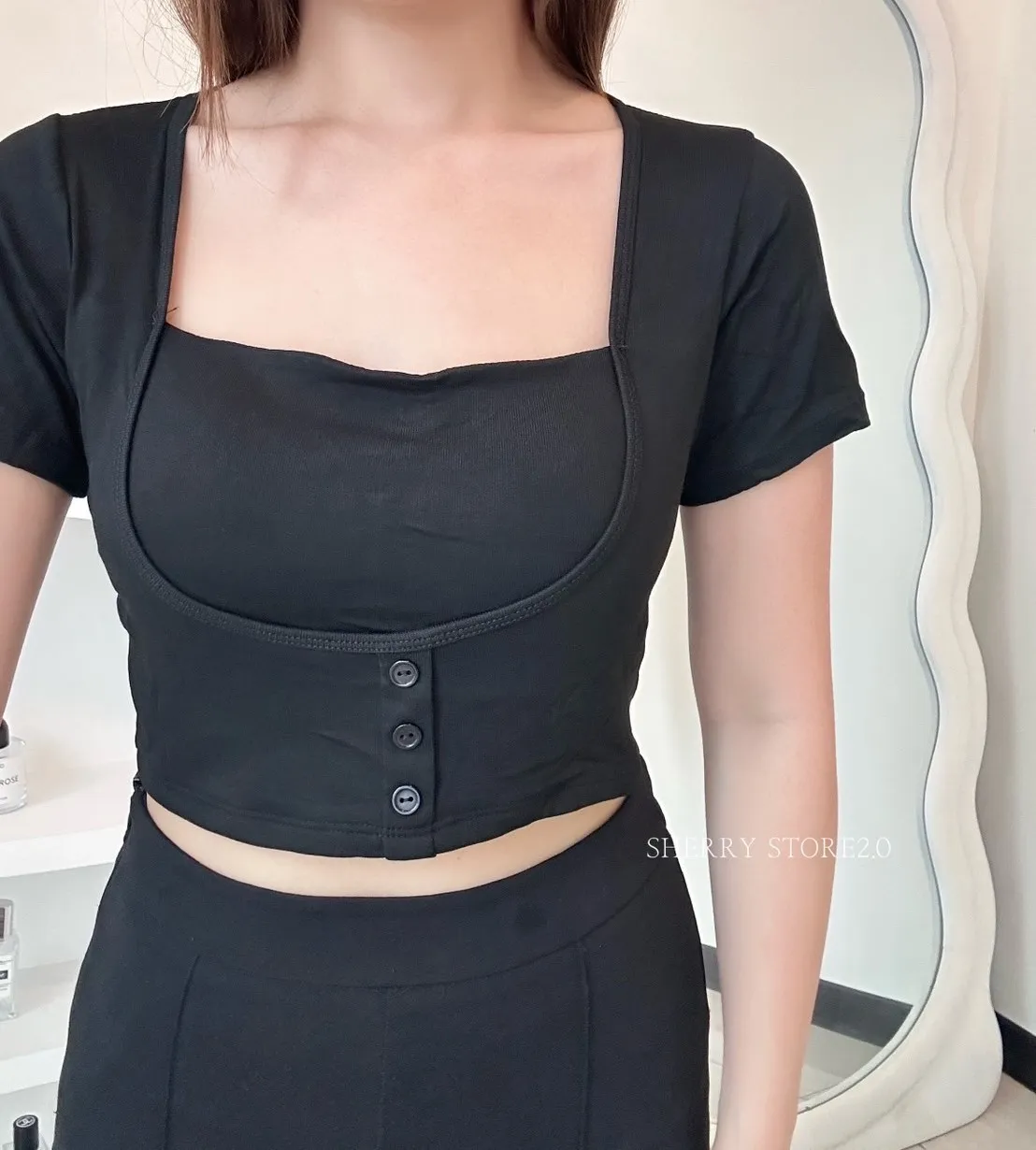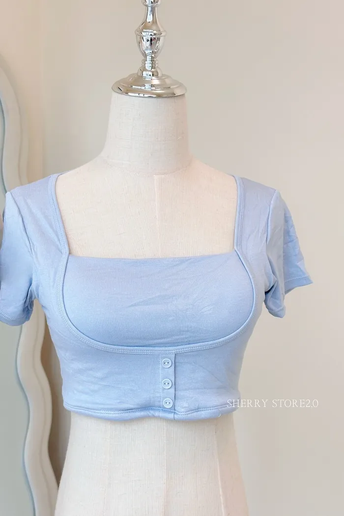 𝒔𝒉𝒆𝒓𝒓𝒚𝒔𝒕𝒐𝒓𝒆 保守女孩必備假兩件罩杯上衣B1619