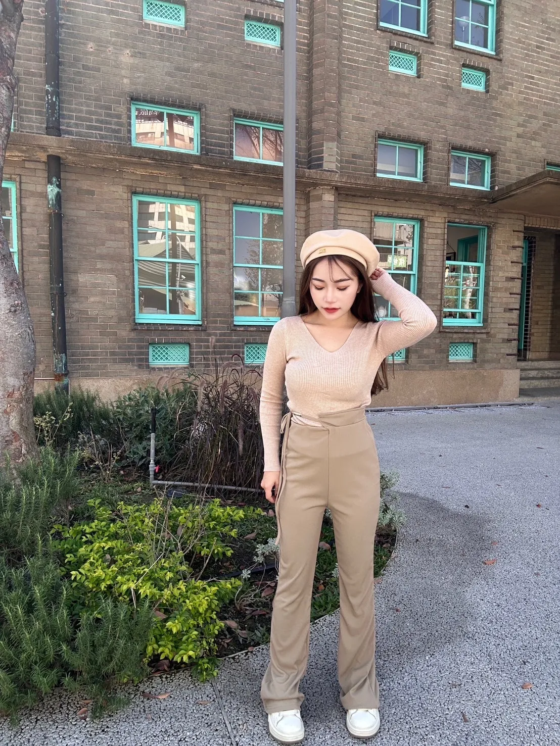 小隻馬顯腿長不悶熱側綁喇叭褲C0882