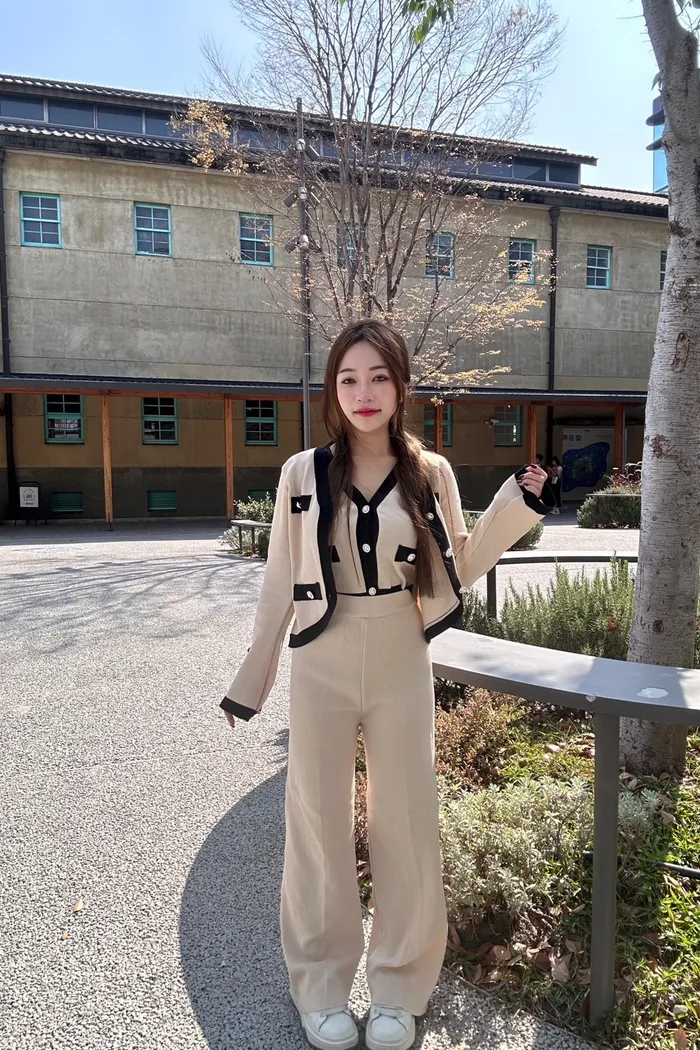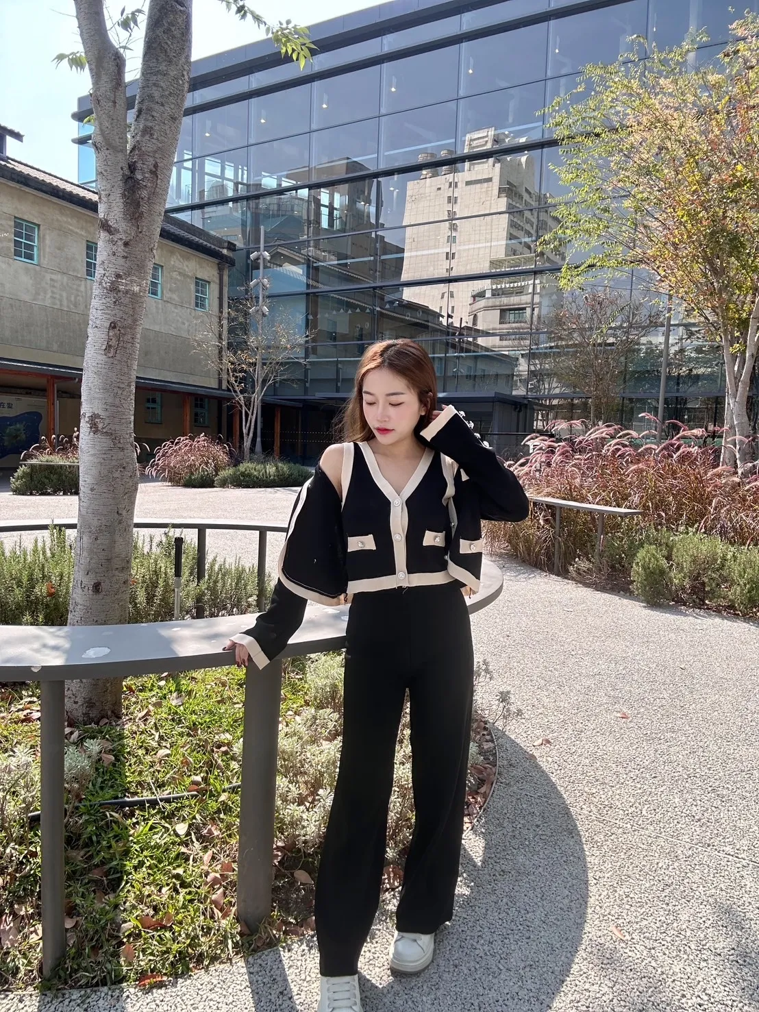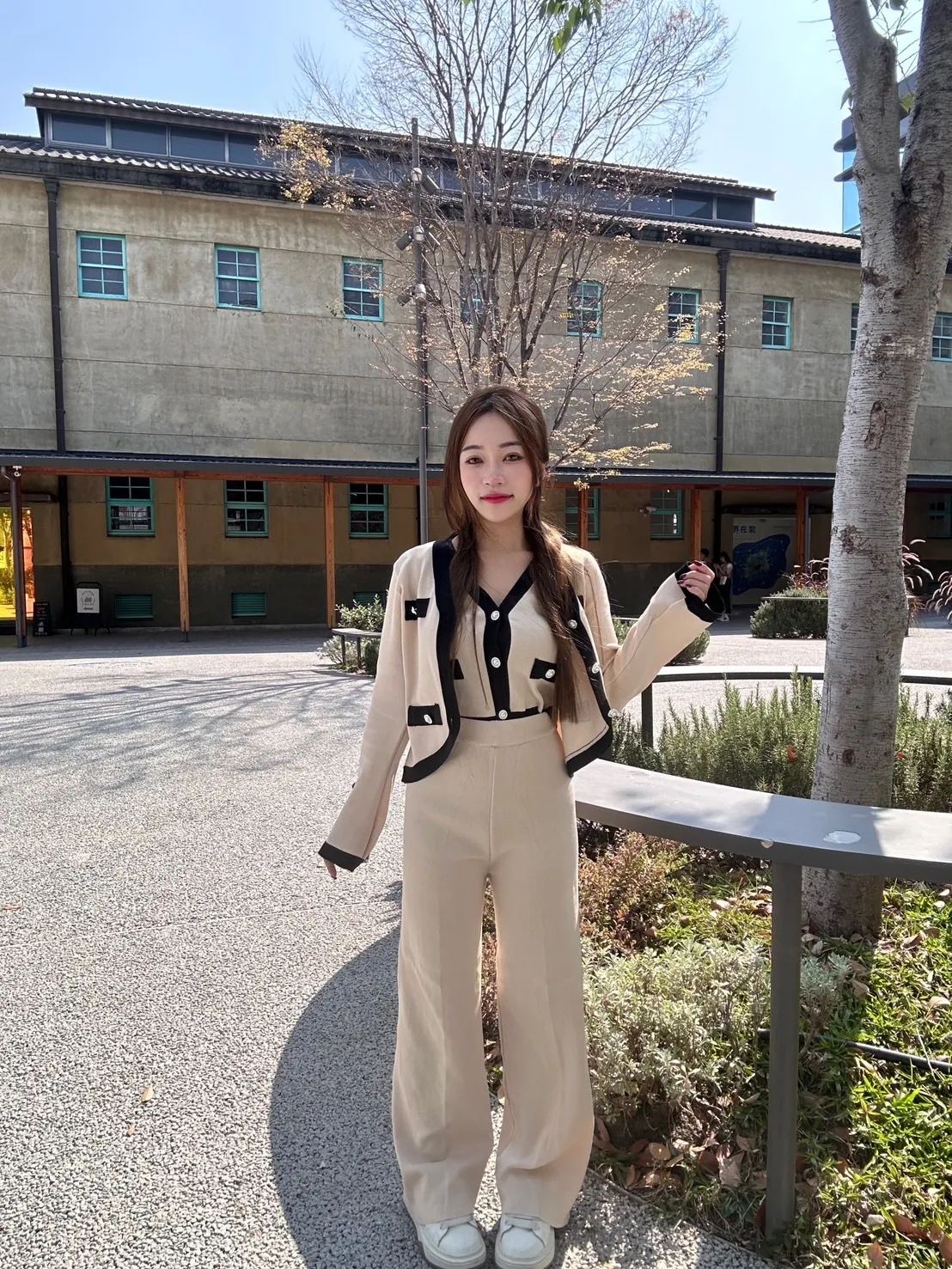 小姐姐小香風背心+外套+高腰寬褲三件套C0995