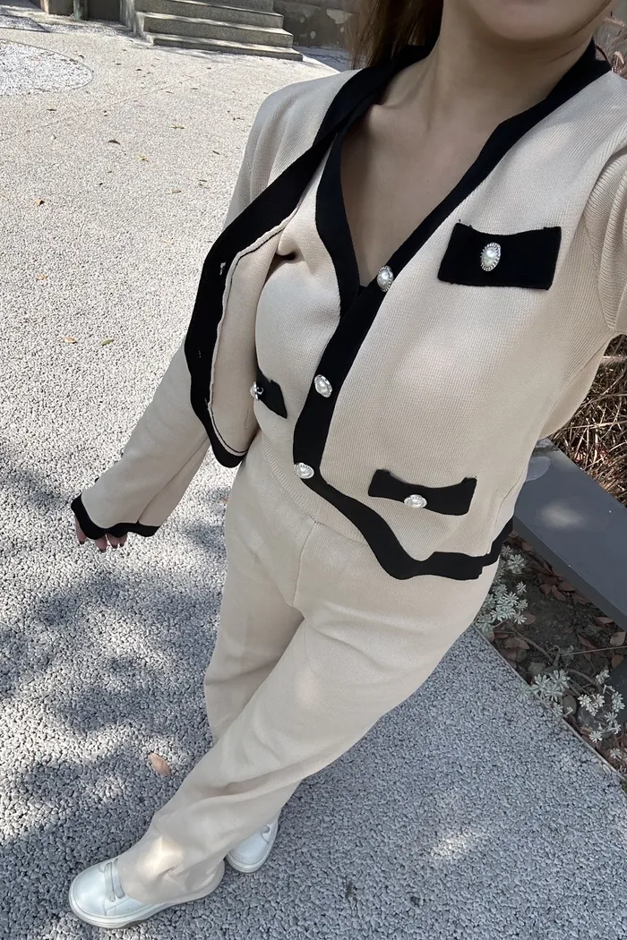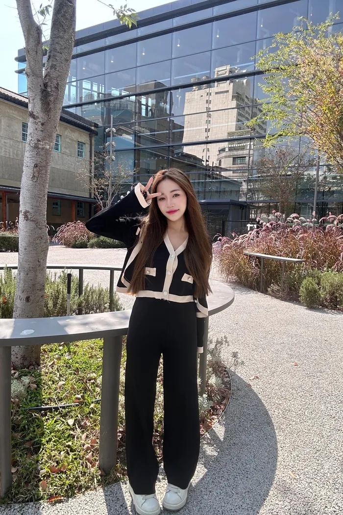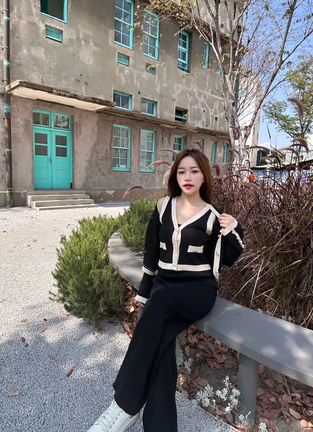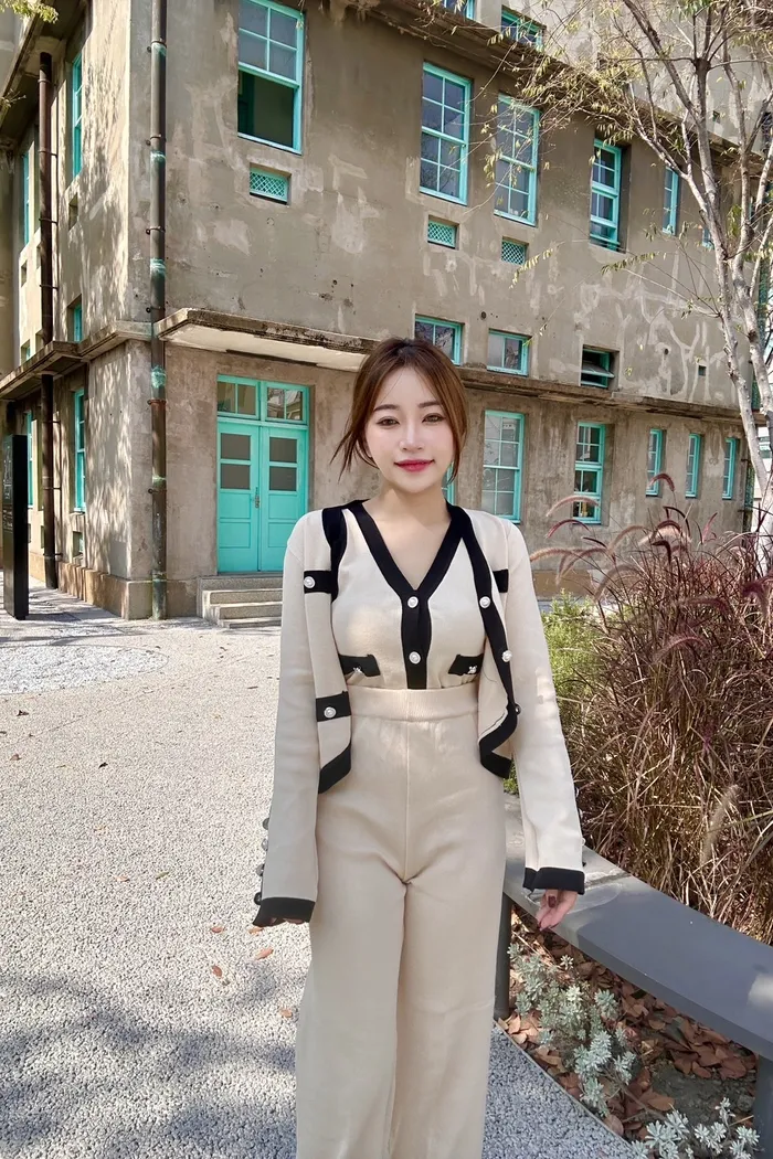 小姐姐小香風背心+外套+高腰寬褲三件套C0995