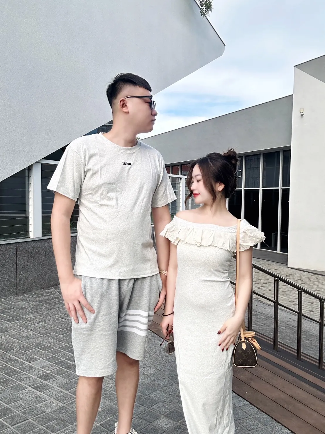 獨家小眾蕾絲一字領連身裙_男款麻白上衣情侶款C1054(女款)C1055(男款)