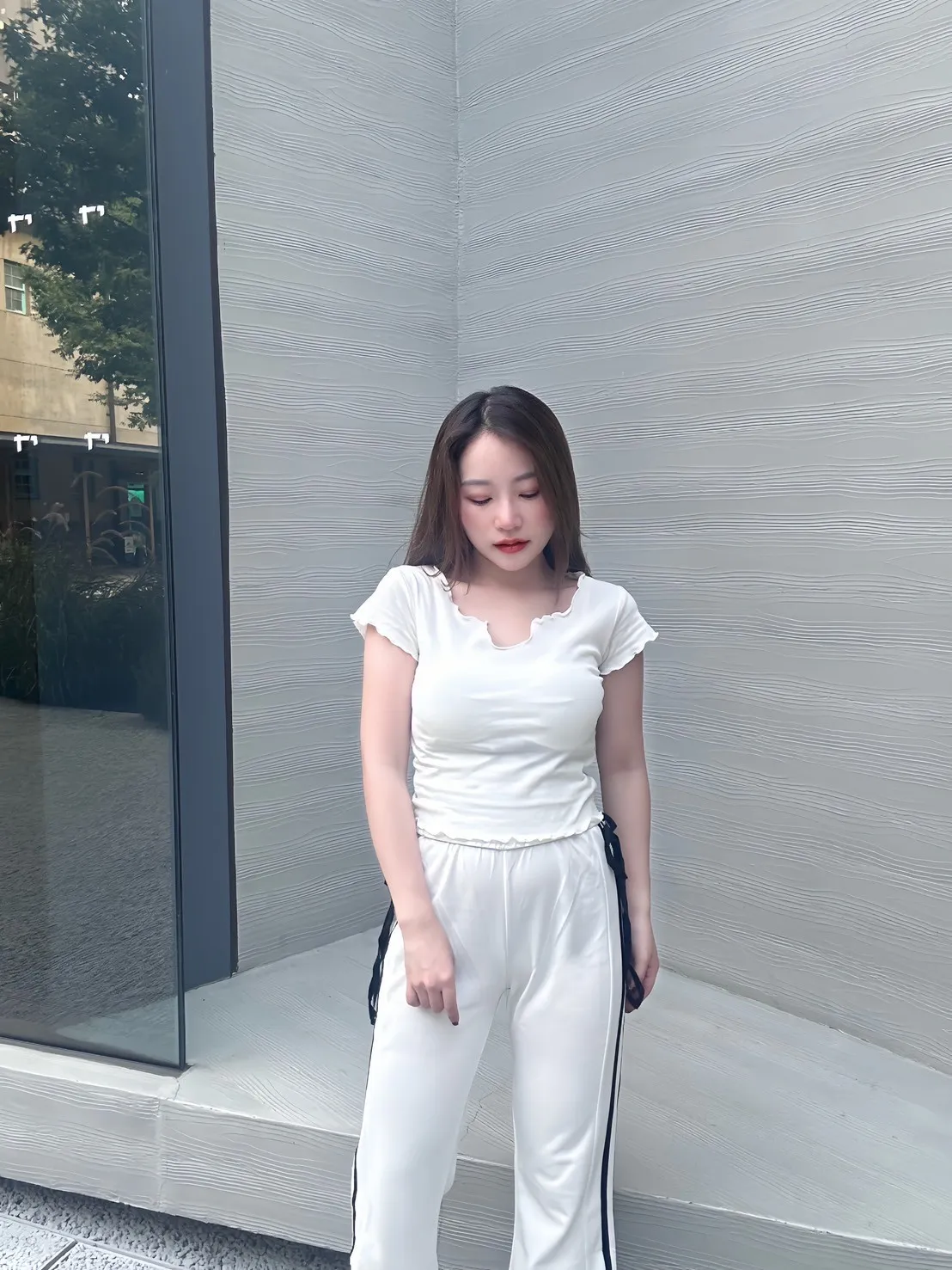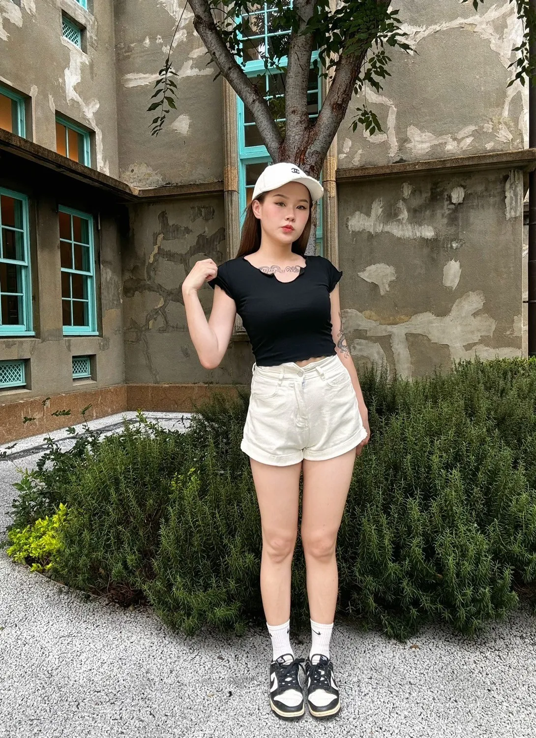 𝒔𝒉𝒆𝒓𝒓𝒚𝒔𝒕𝒐𝒓𝒆 超百搭!彈力木耳邊小V領上衣C1069