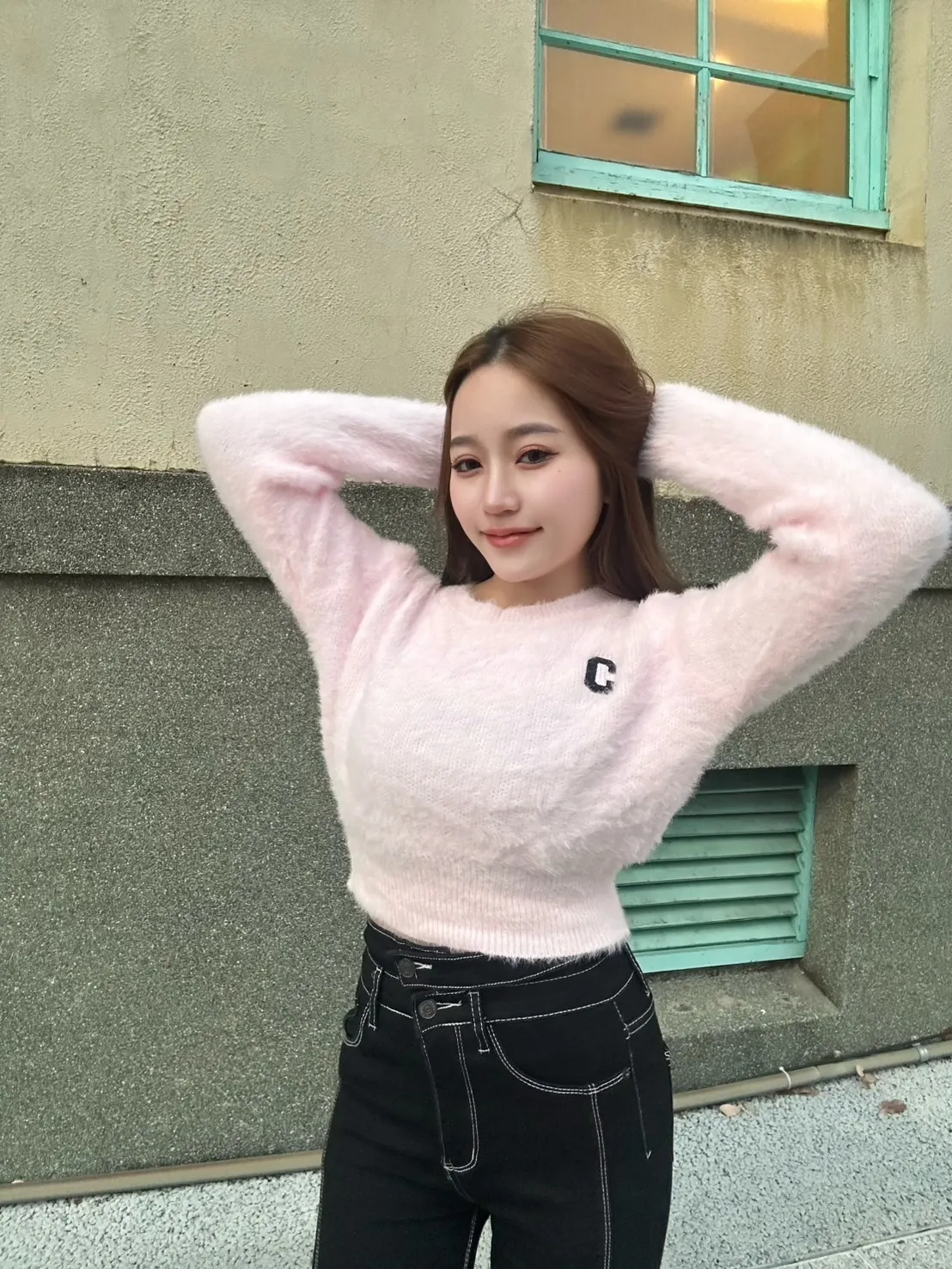 𝒔𝒉𝒆𝒓𝒓𝒚𝒔𝒕𝒐𝒓𝒆好親膚柔軟水貂毛英文字毛衣C1131