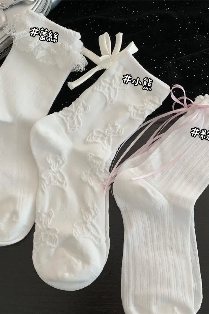 𝒔𝒉𝒆𝒓𝒓𝒚𝒔𝒕𝒐𝒓𝒆韓系中筒花邊少女風ins蝴蝶結襪子C1192