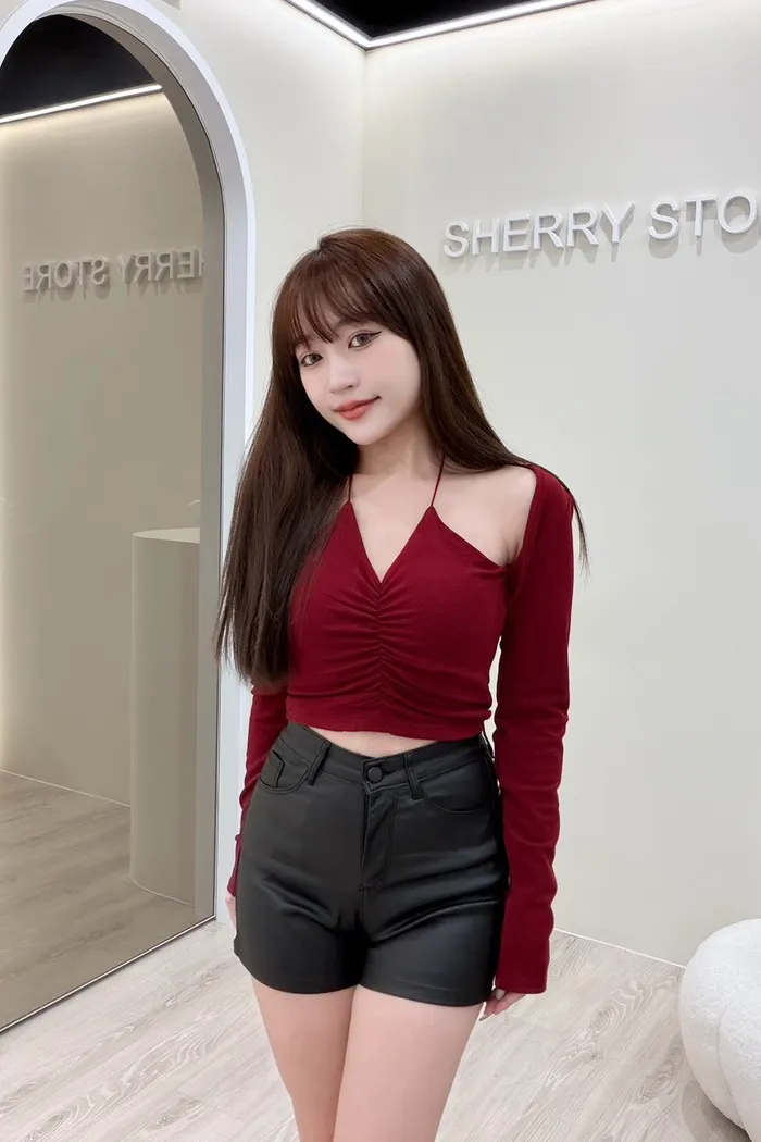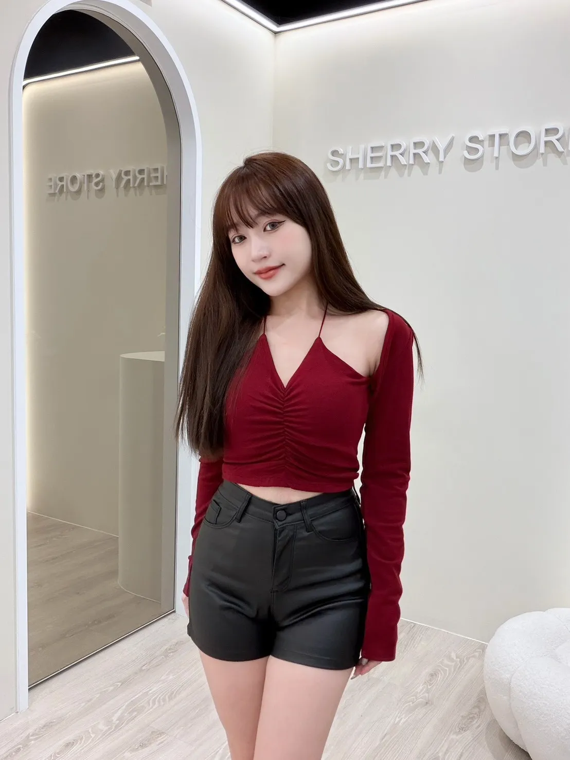 𝒔𝒉𝒆𝒓𝒓𝒚𝒔𝒕𝒐𝒓𝒆斜頸微辣感修身綁繩上衣DI9203