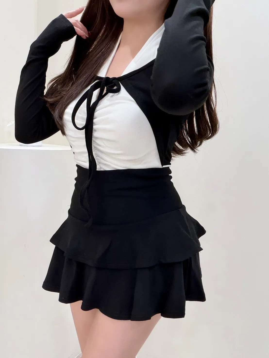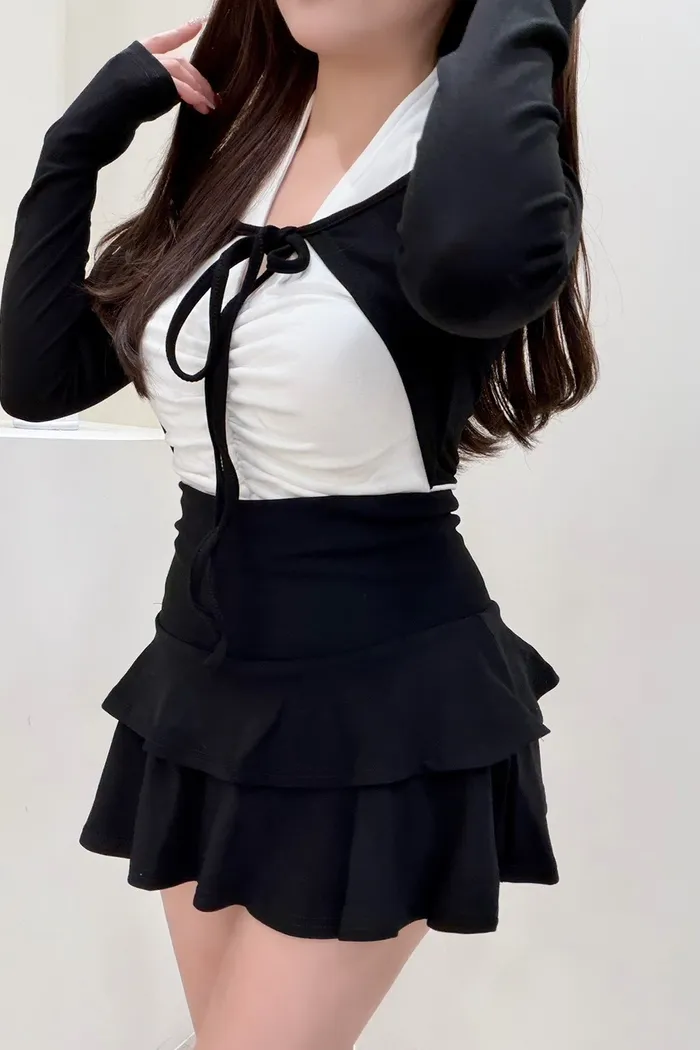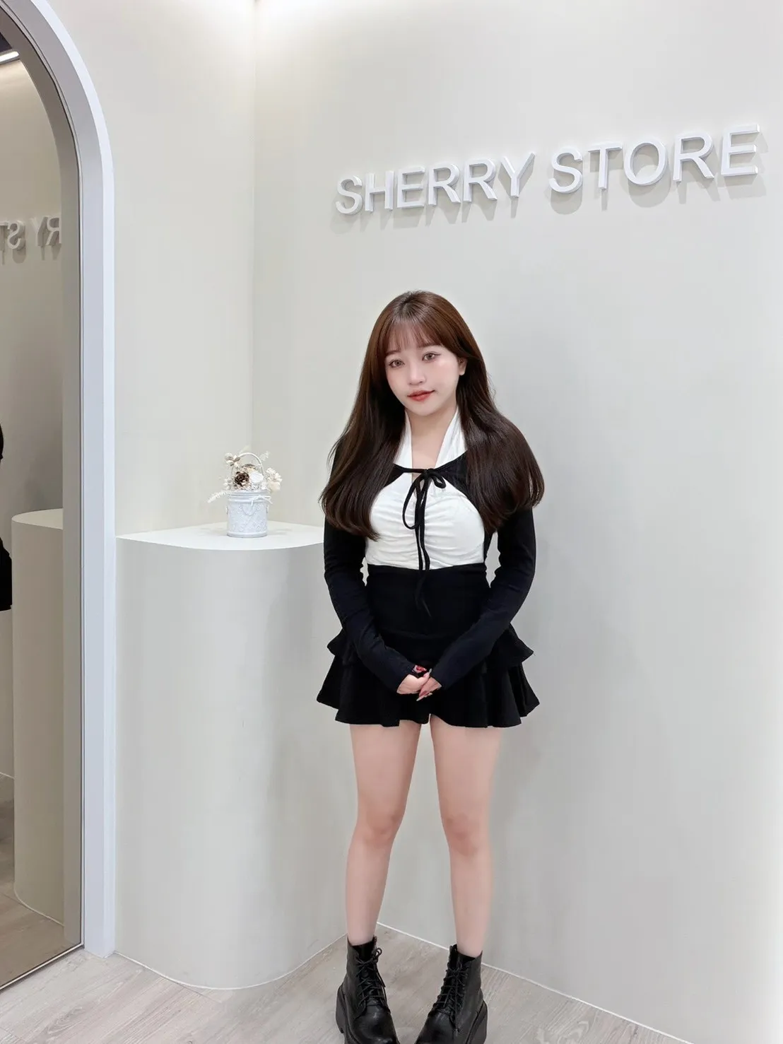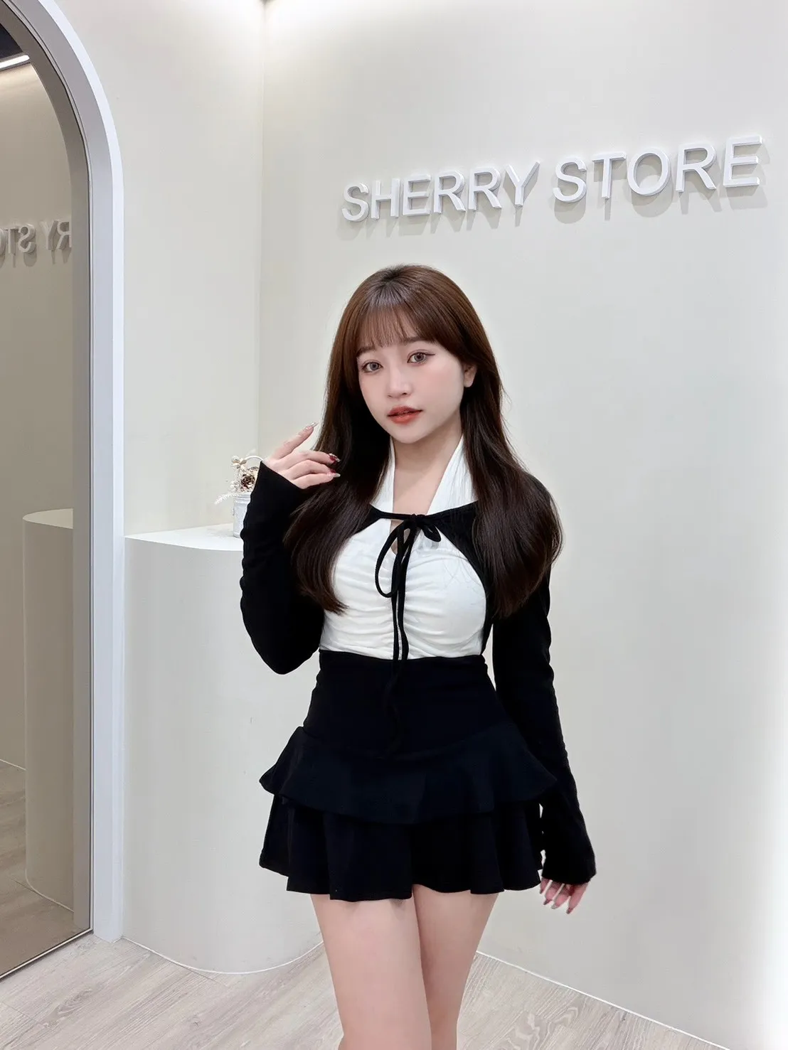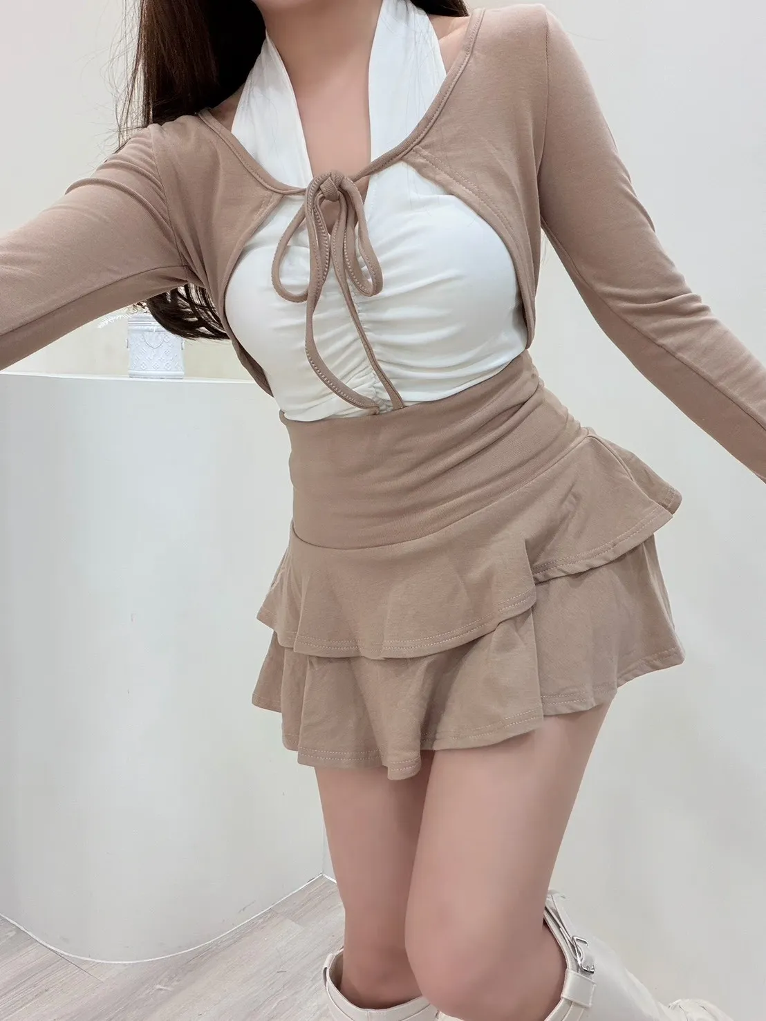 𝒔𝒉𝒆𝒓𝒓𝒚𝒔𝒕𝒐𝒓甜酷辣妹必帶假兩件掛脖內刷毛上衣兩件套裝高腰裙DI9516