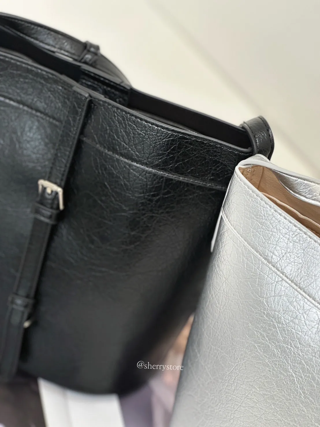 𝒔𝒉𝒆𝒓𝒓𝒚𝒔𝒕𝒐𝒓𝒆人間銀河皺皺感皮革水桶包EO4430