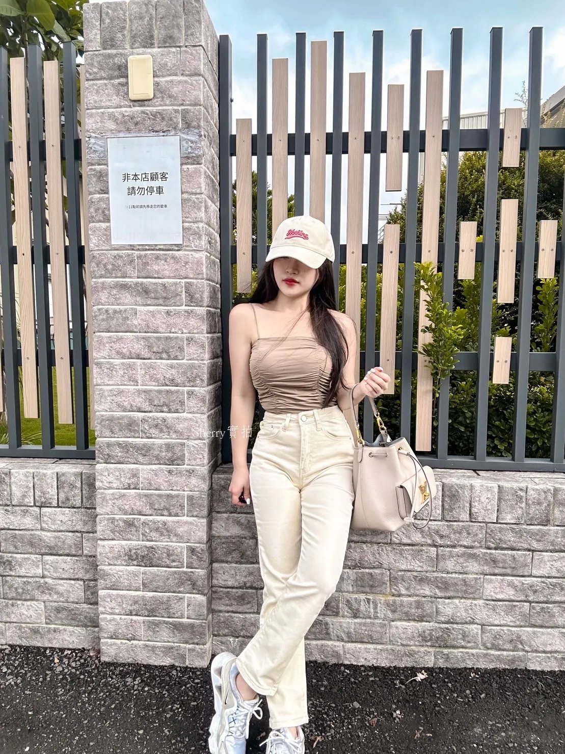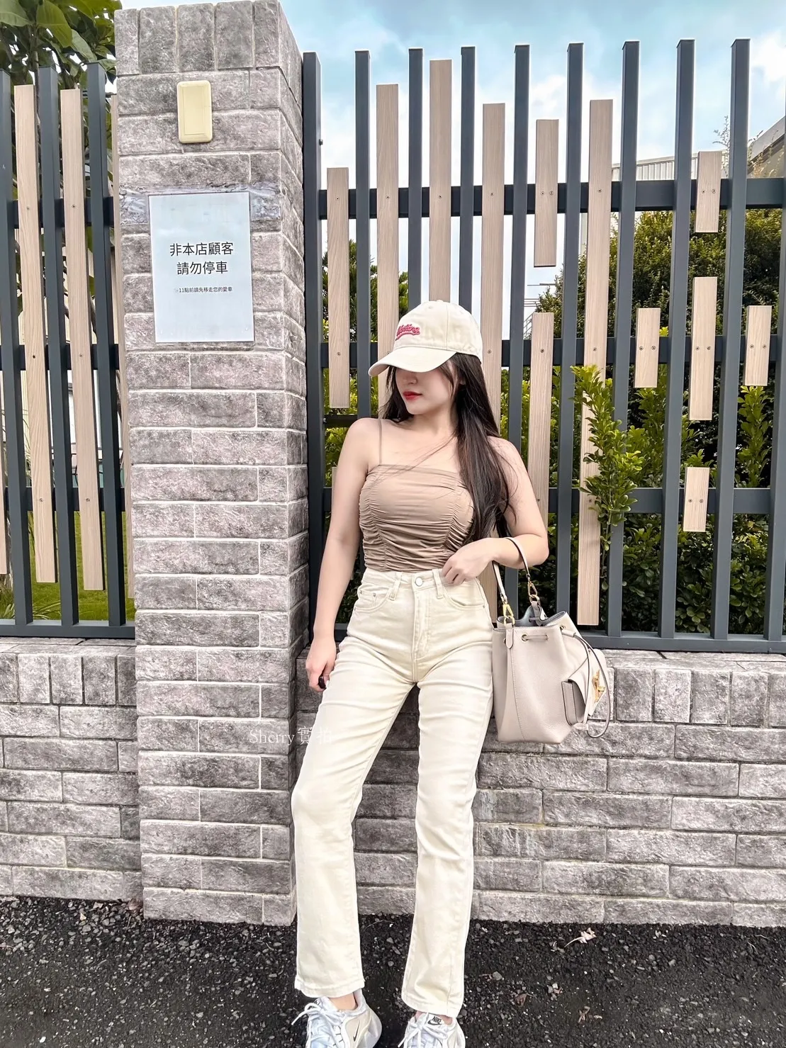 正韓國奶白高腰顯瘦煙管褲牛仔褲F6700