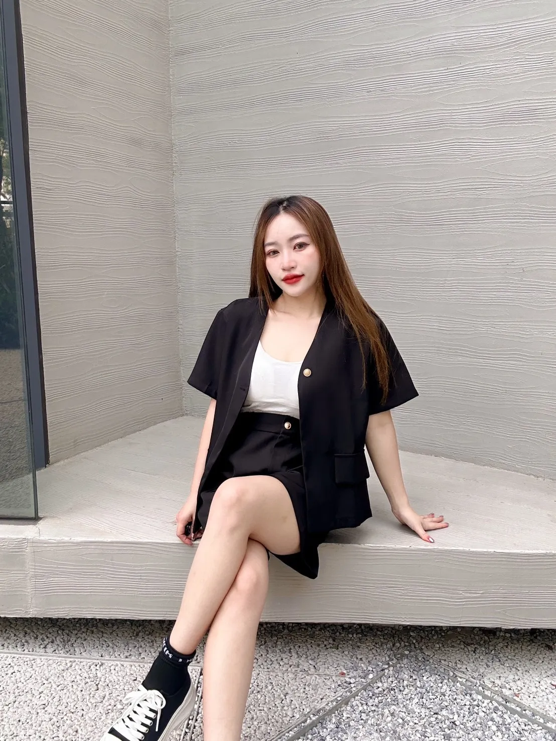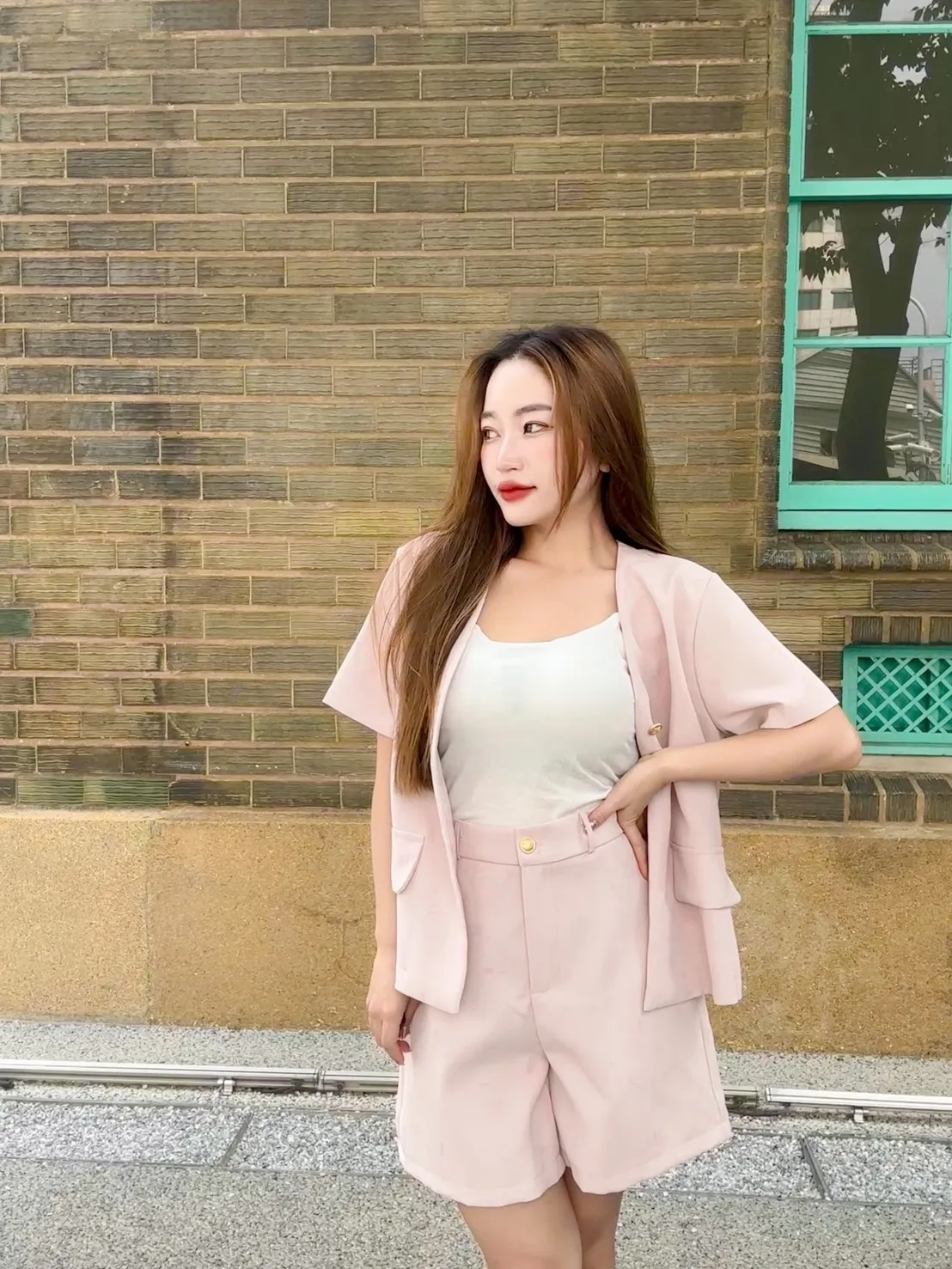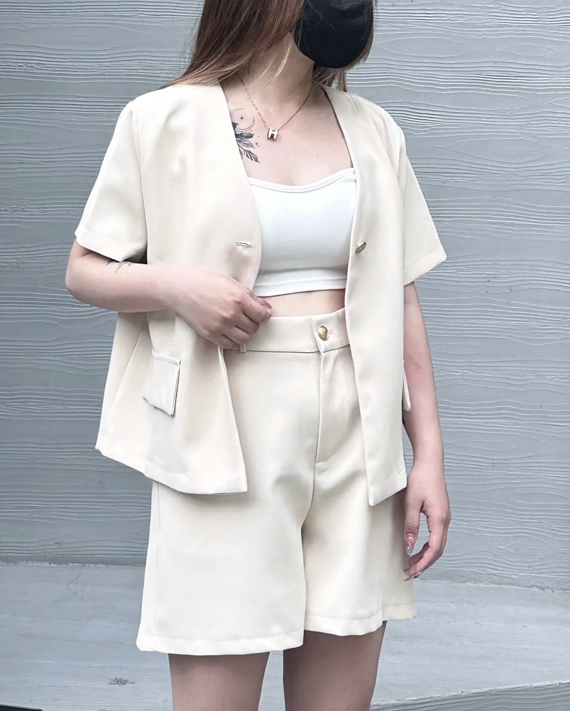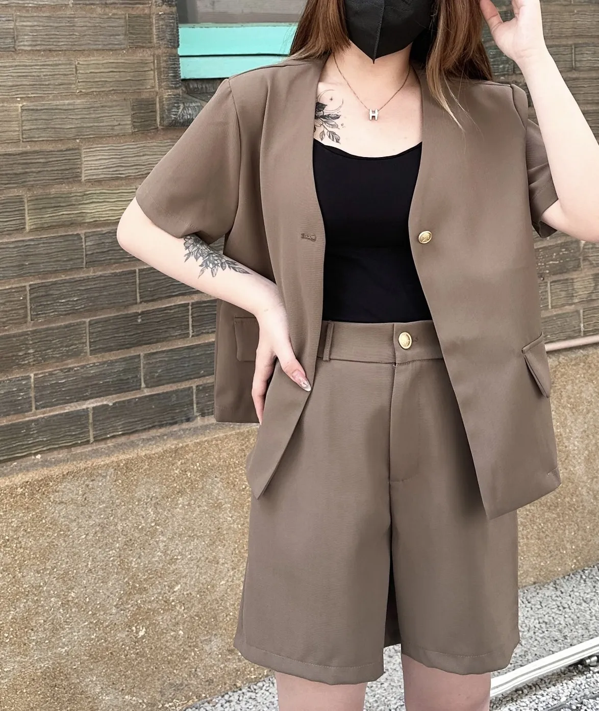 韓系簡約風西裝外套+鬆緊高腰短褲G8802