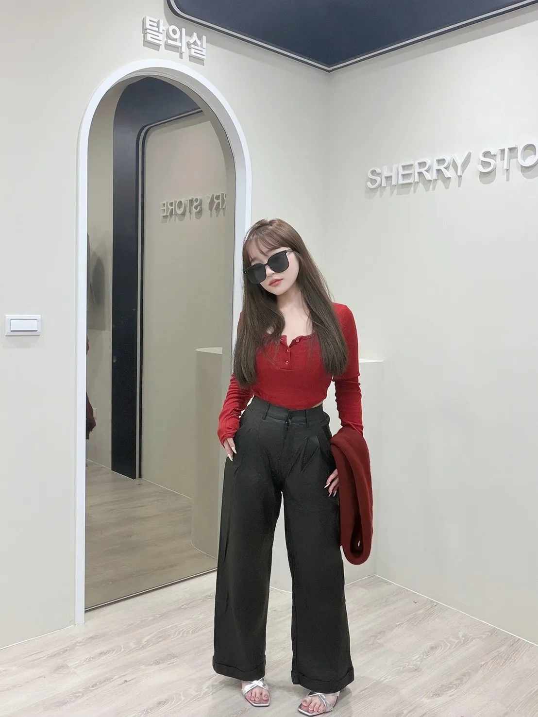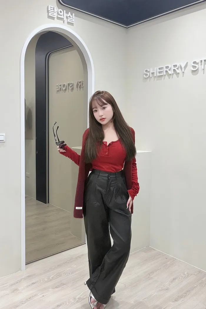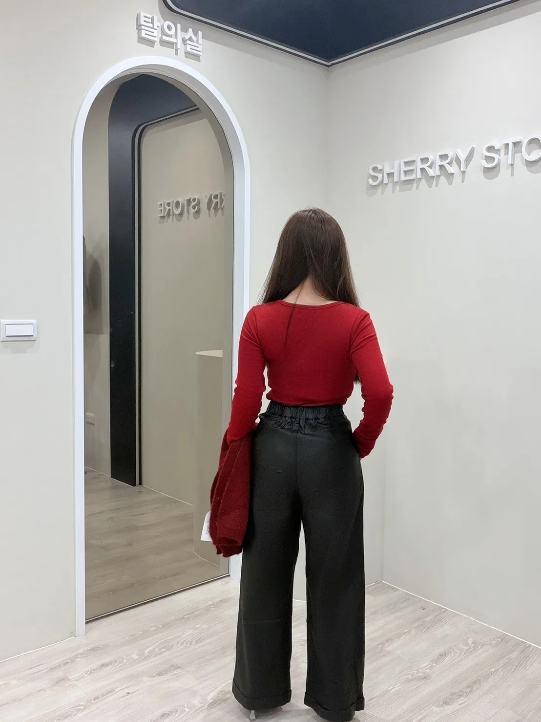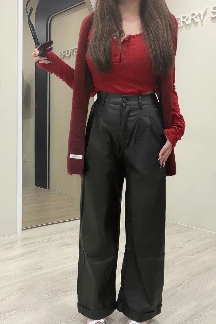 𝒔𝒉𝒆𝒓𝒓𝒚𝒔𝒕𝒐𝒓𝒆小個子修身零贅肉顯瘦皮革寬褲H40040