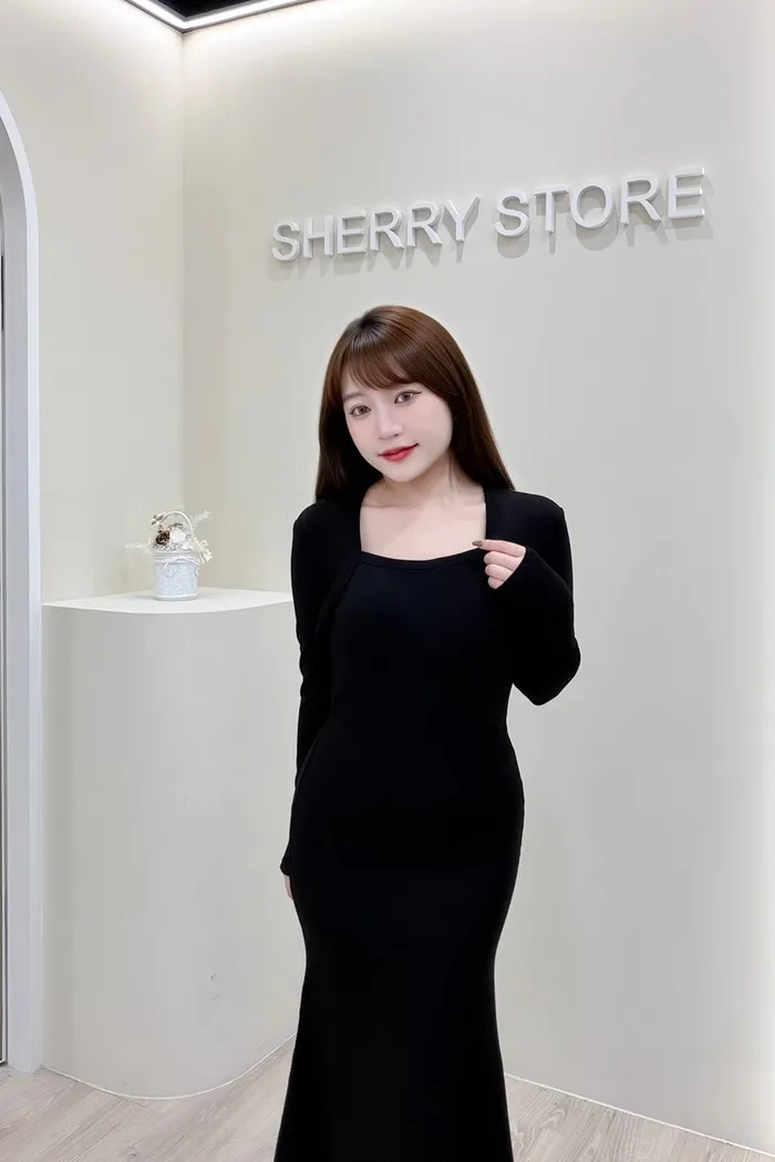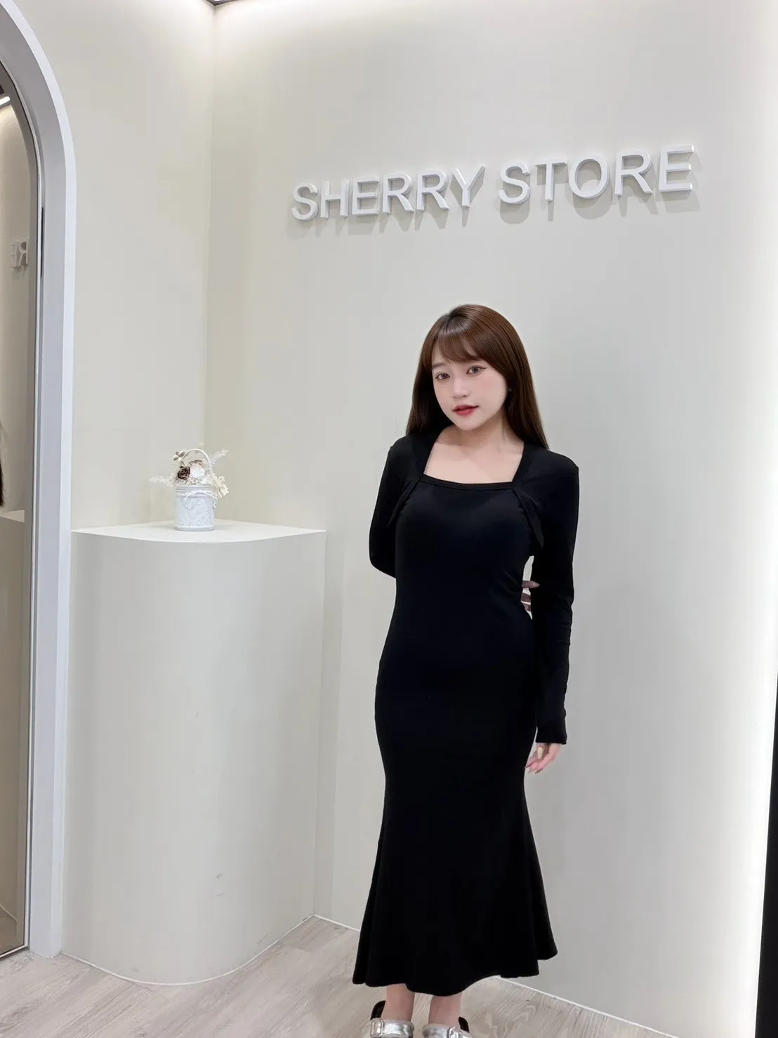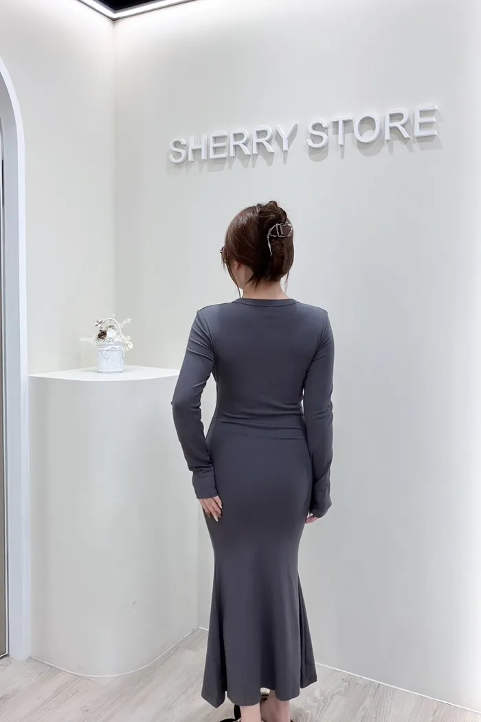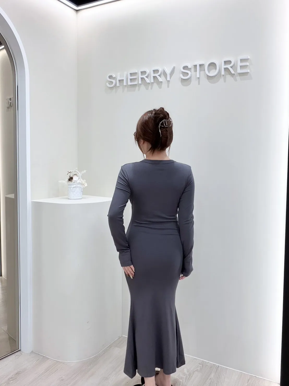 𝒔𝒉𝒆𝒓𝒓𝒚𝒔𝒕𝒐𝒓𝒆顯好身材貼身彈力包臀長洋裙I9823