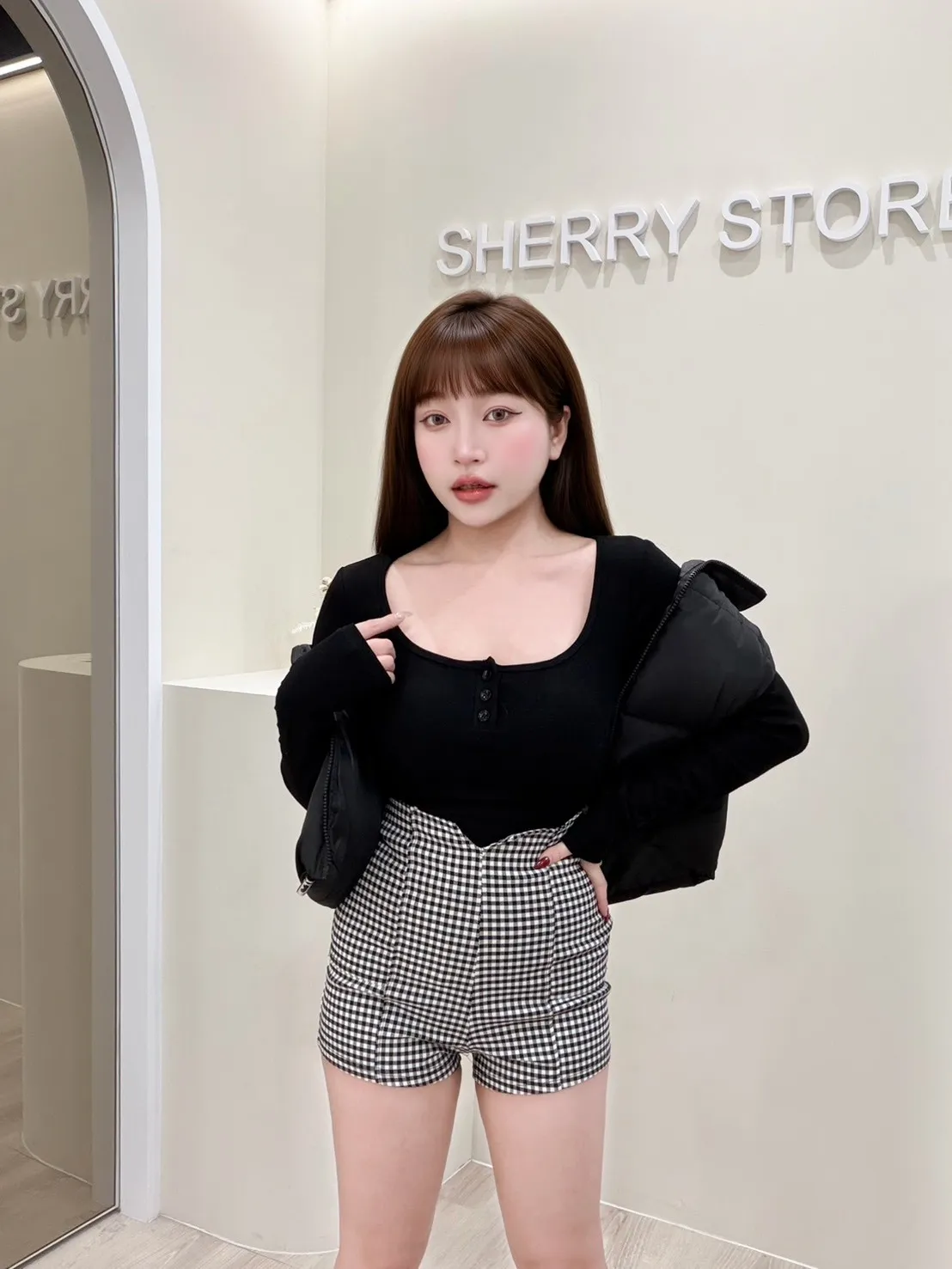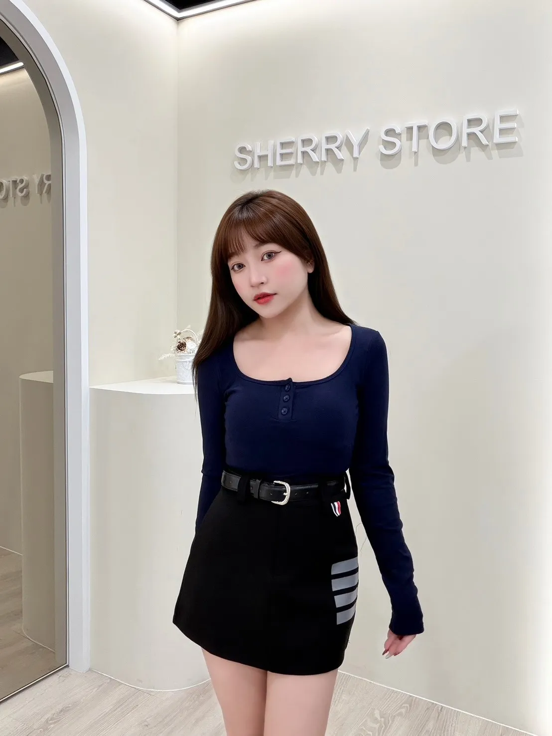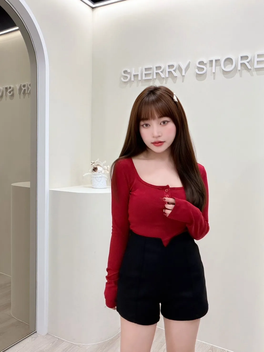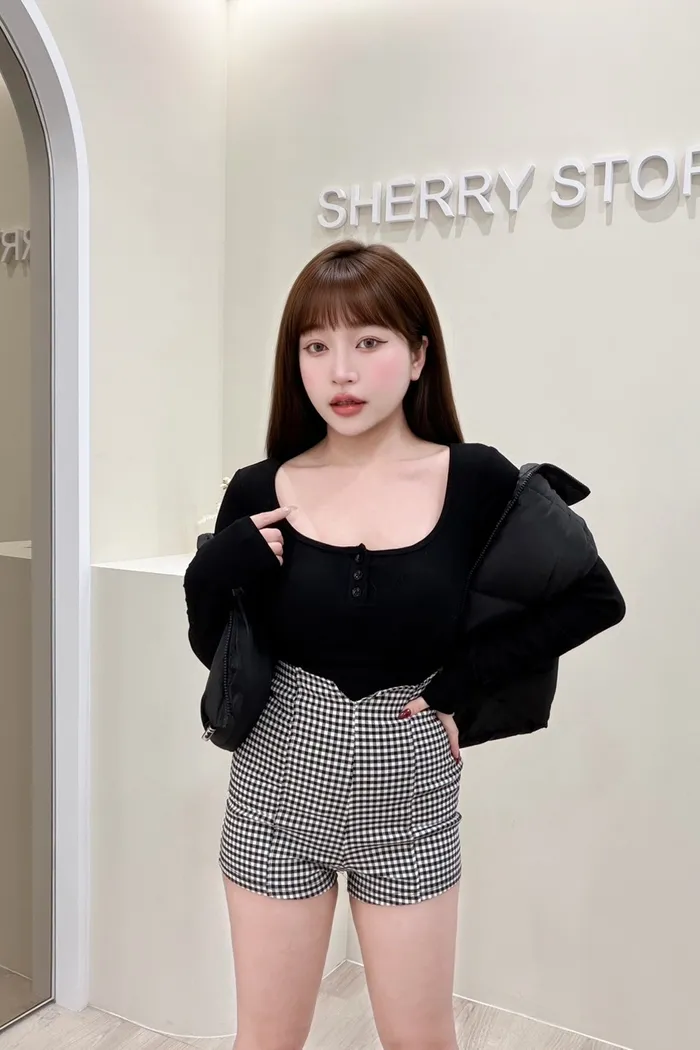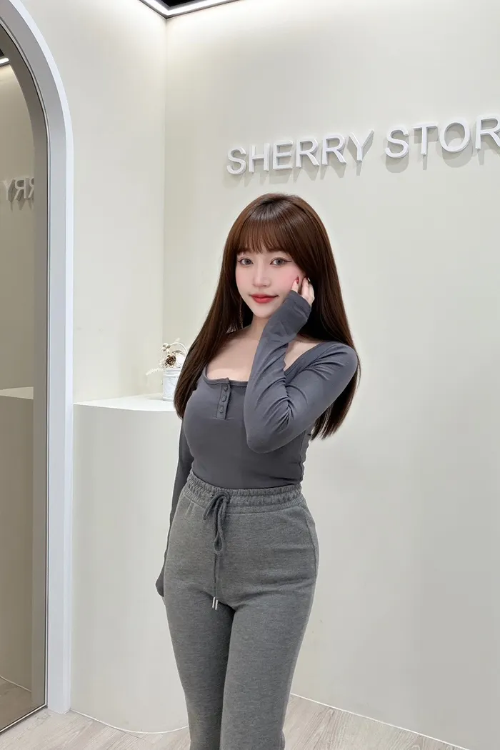 𝒔𝒉𝒆𝒓𝒓𝒚𝒔𝒕𝒐𝒓𝒆法式微甜排扣修身上衣I9957