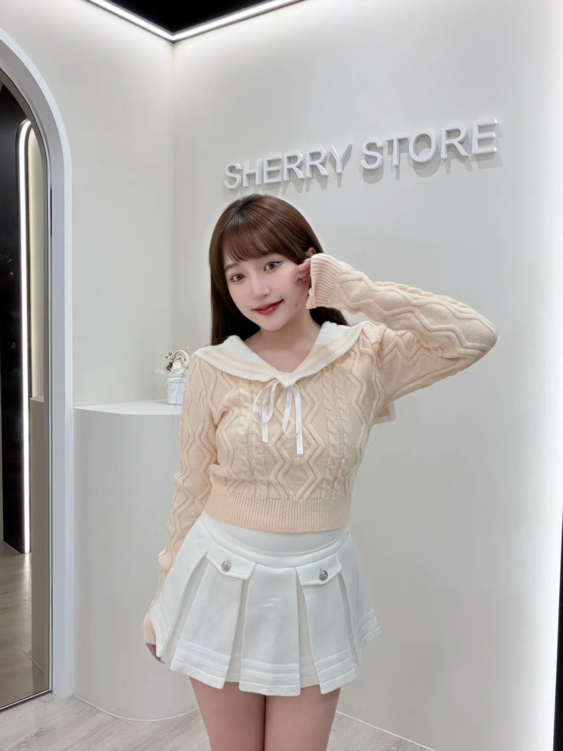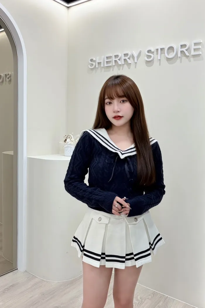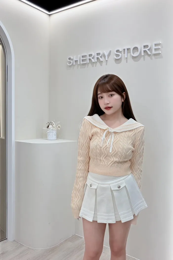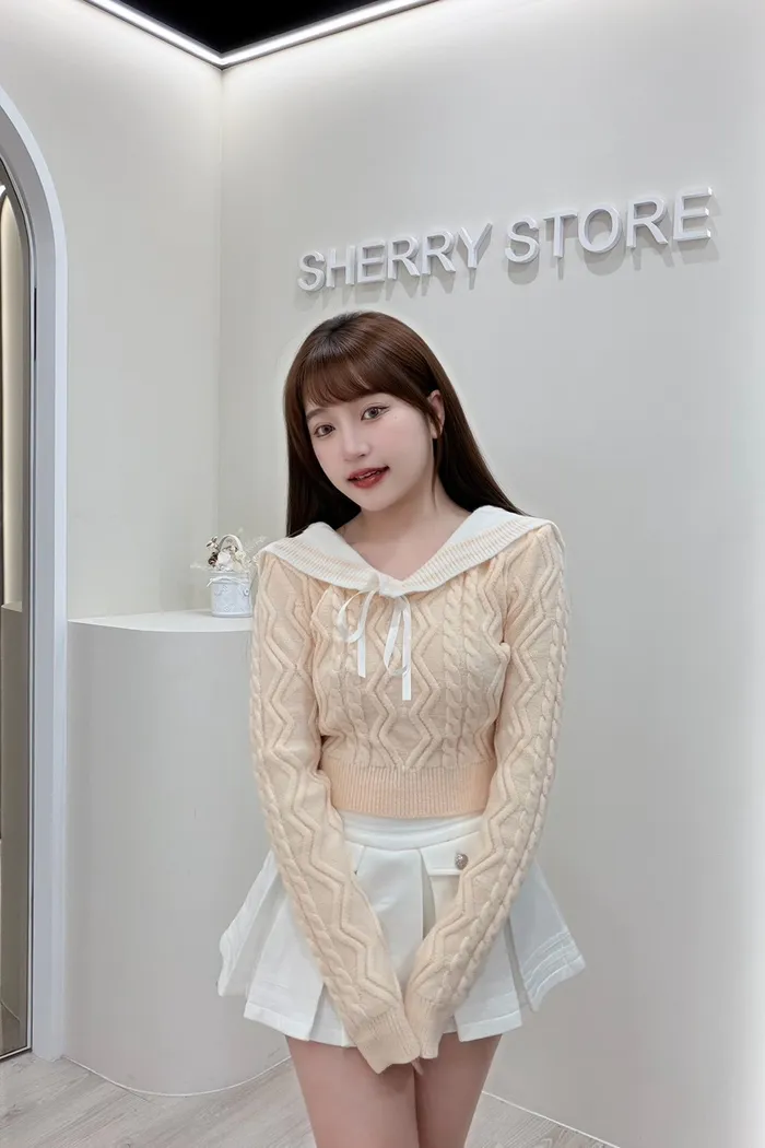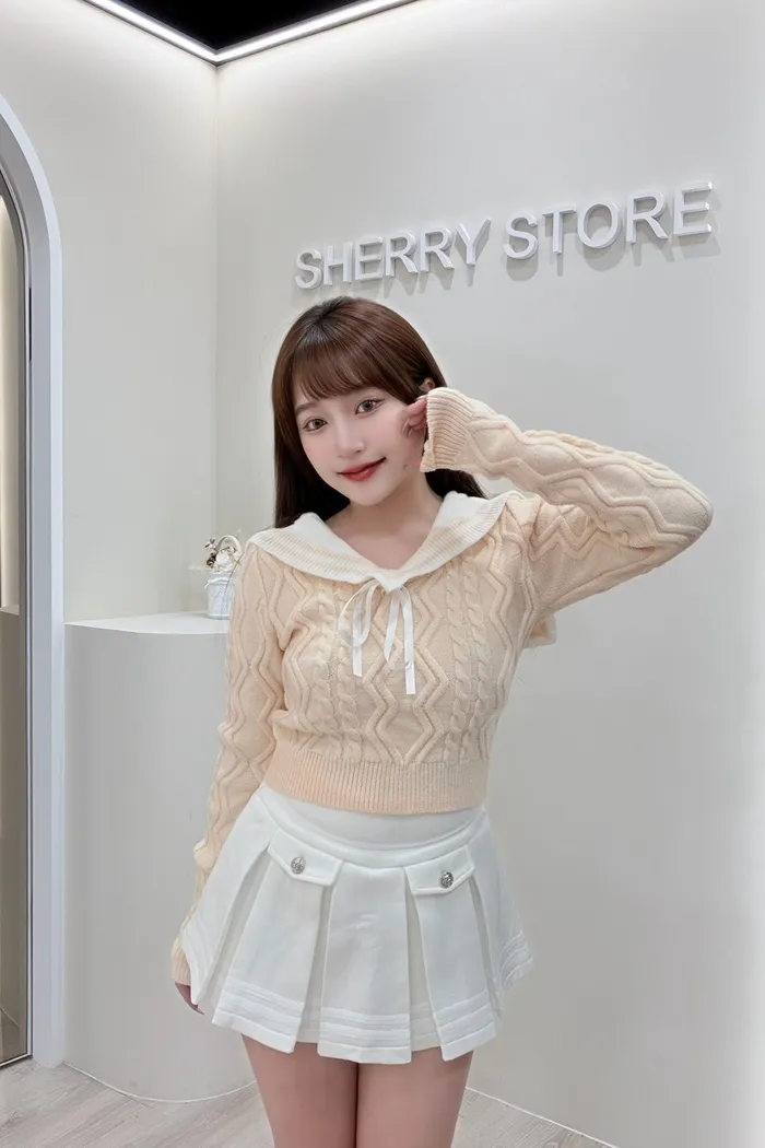 𝒔𝒉𝒆𝒓𝒓𝒚𝒔𝒕𝒐𝒓𝒆奶呼呼甜妹必備蝴蝶結針織學院風兩件套裝裙J7718