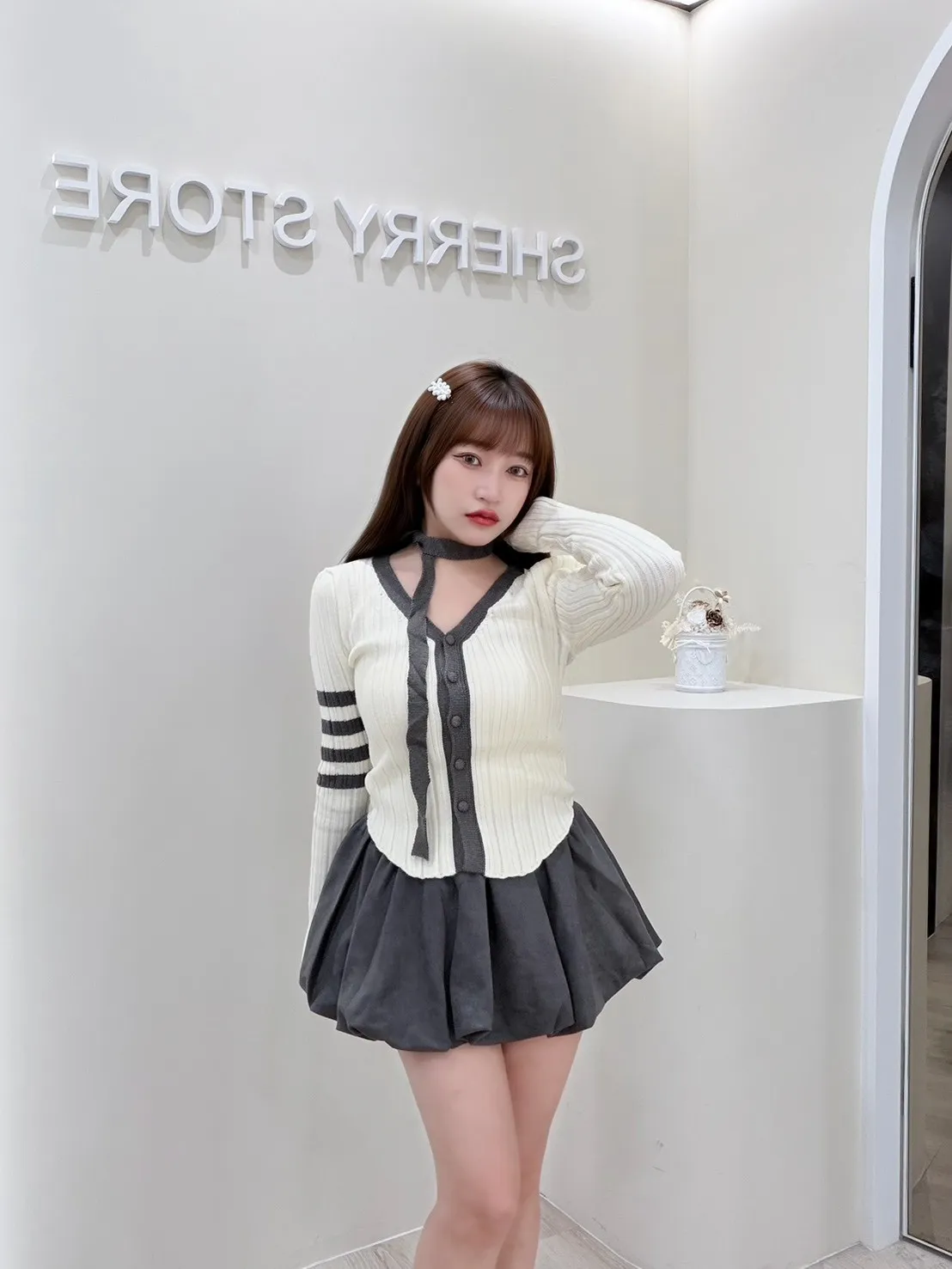 𝒔𝒉𝒆𝒓𝒓𝒚𝒔𝒕𝒐𝒓𝒆學院風純欲兩件套裝澎澎裙J8803