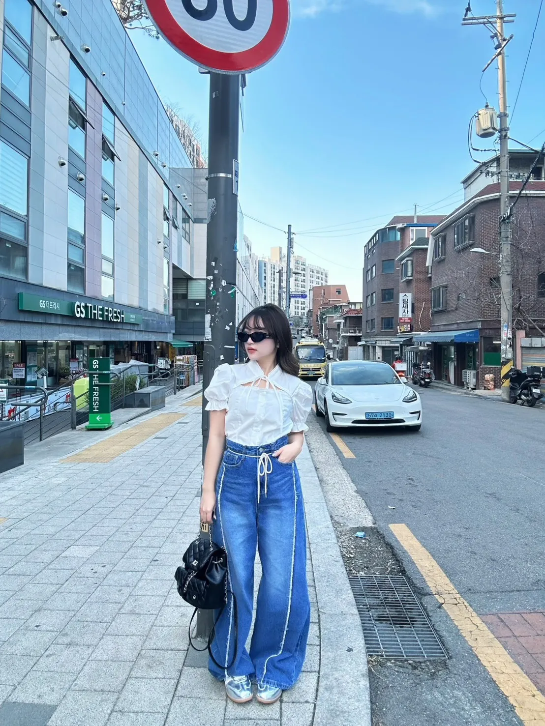 𝒔𝒉𝒆𝒓𝒓𝒚𝒔𝒕𝒐𝒓𝒆正韓🇰🇷連線款不規則刷色遮肉高腰寬褲KT0101