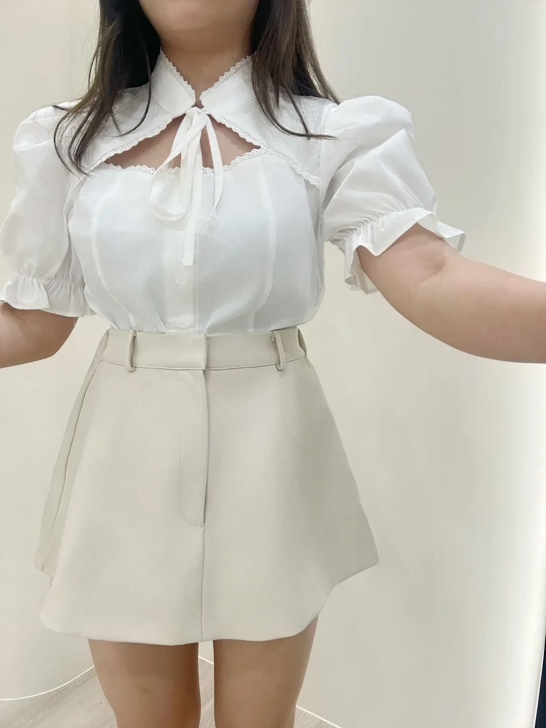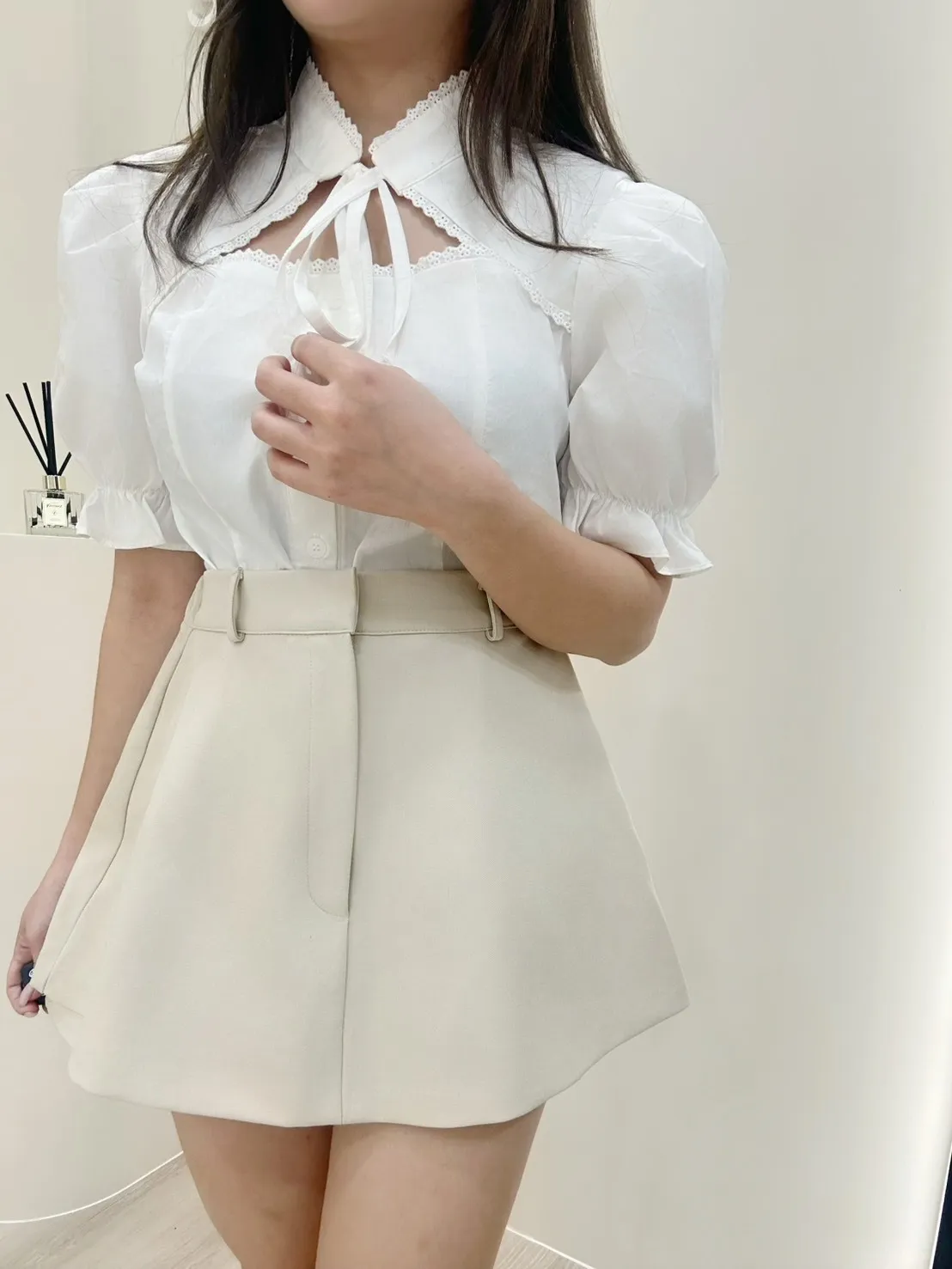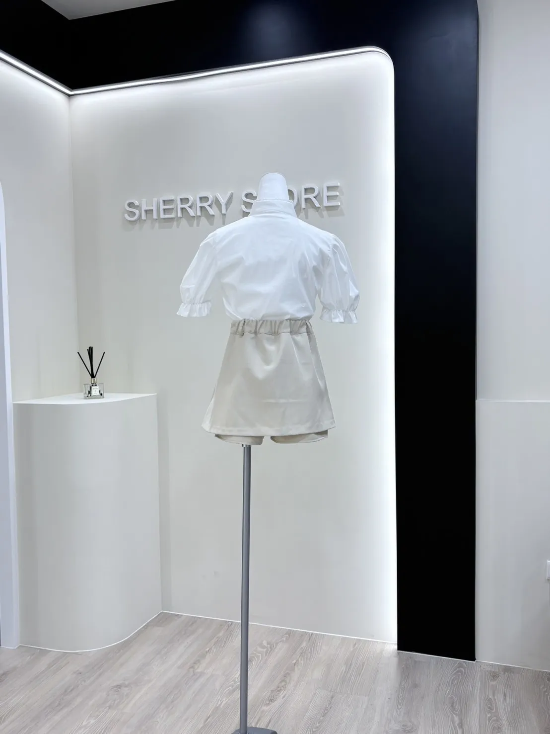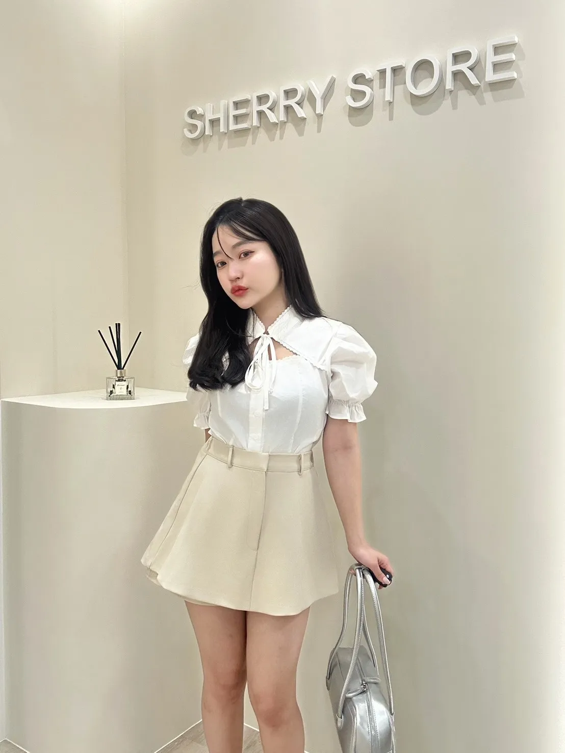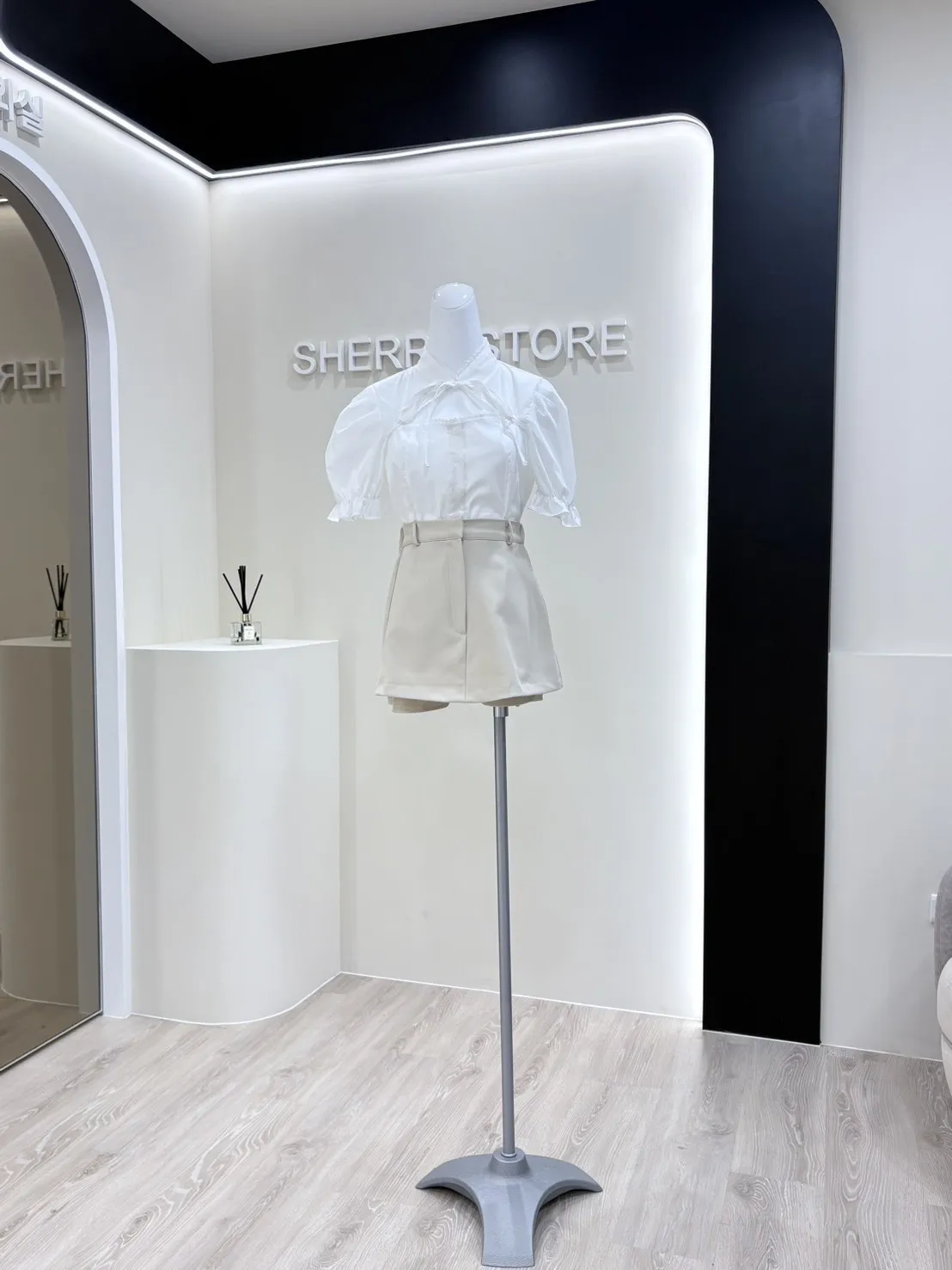 𝒔𝒉𝒆𝒓𝒓𝒚𝒔𝒕𝒐𝒓𝒆正韓小公主氣質澎澎袖綁繩上衣KT0106+奶茶色短褲KT0109