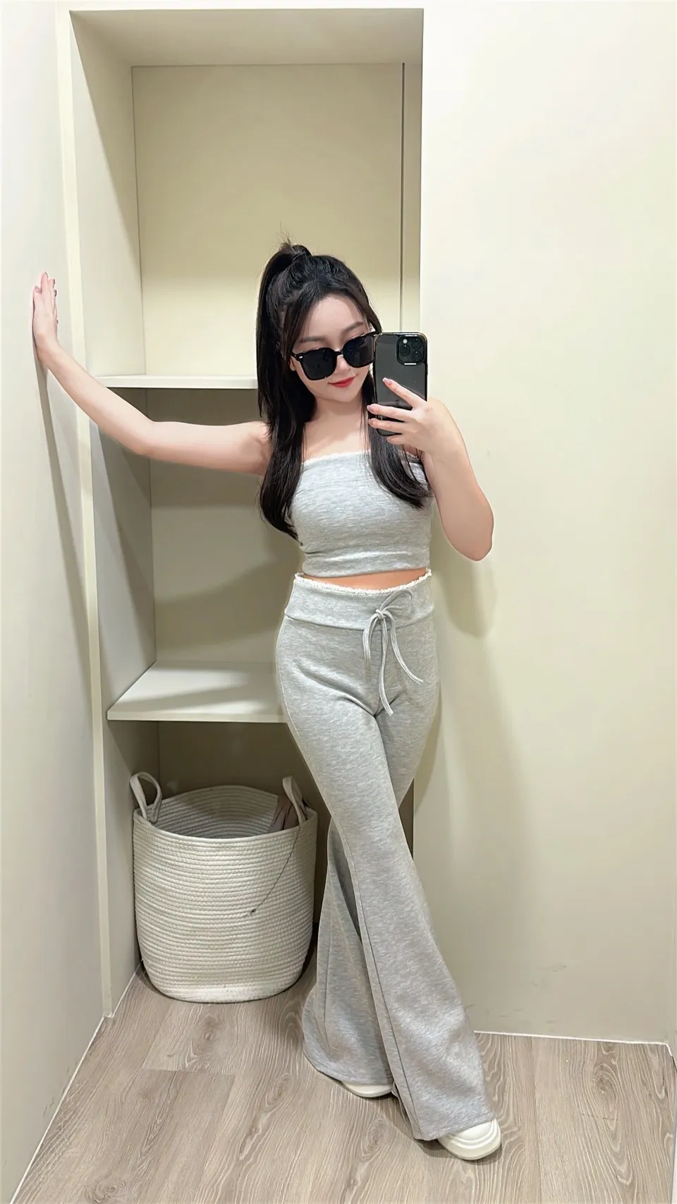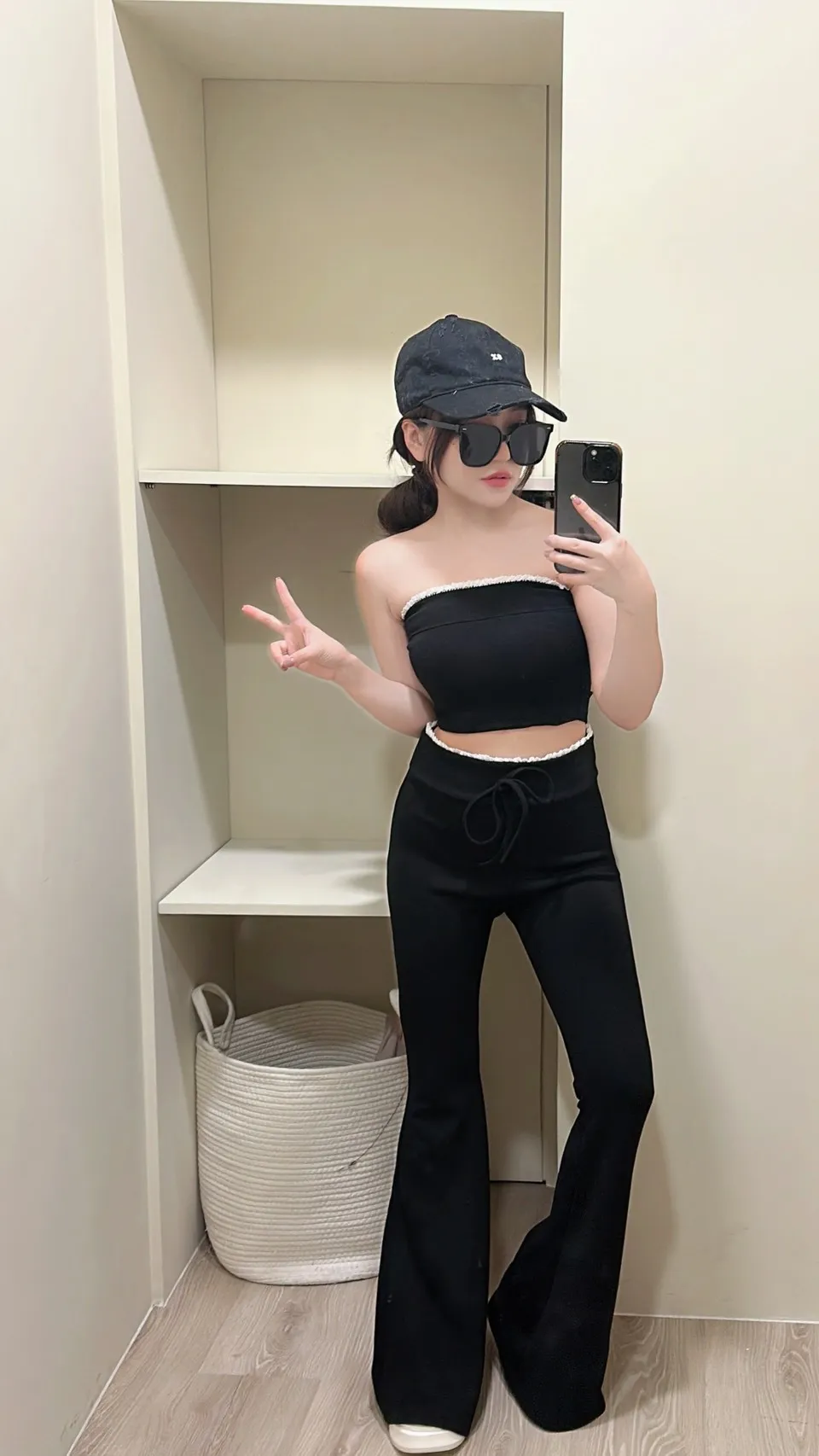 𝒔𝒉𝒆𝒓𝒓𝒚𝒔𝒕𝒐𝒓𝒆正韓蕾絲的浪漫抹胸上衣+高腰喇叭褲兩件套KT0123