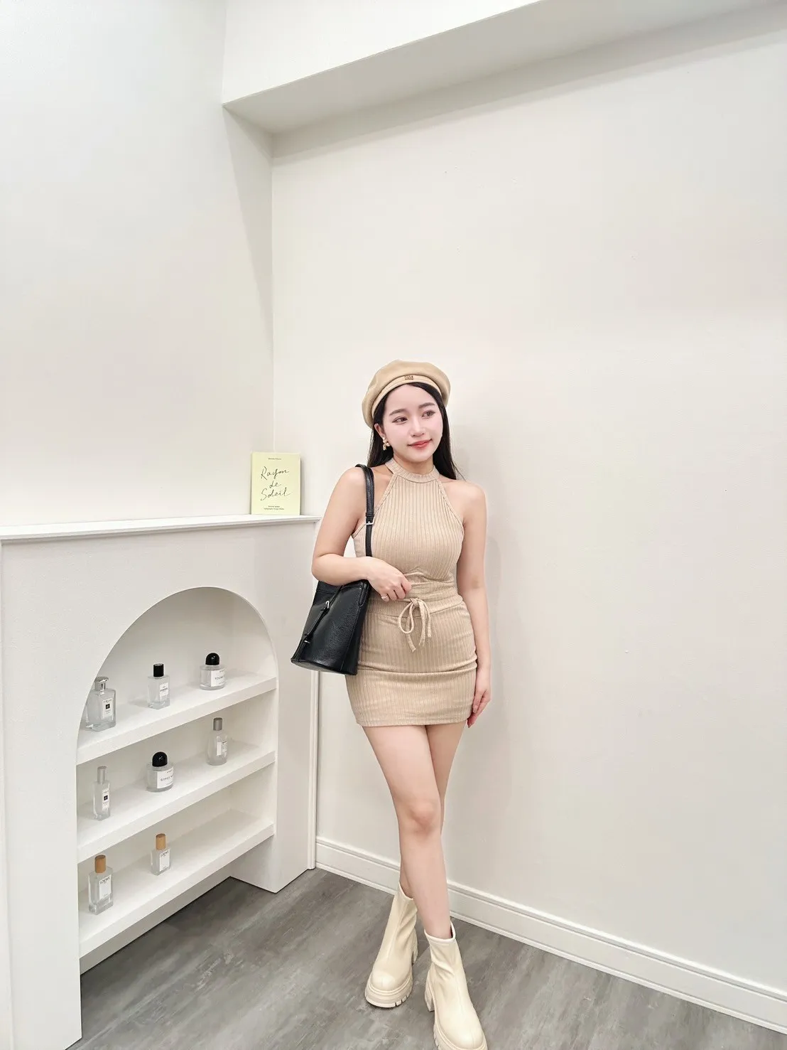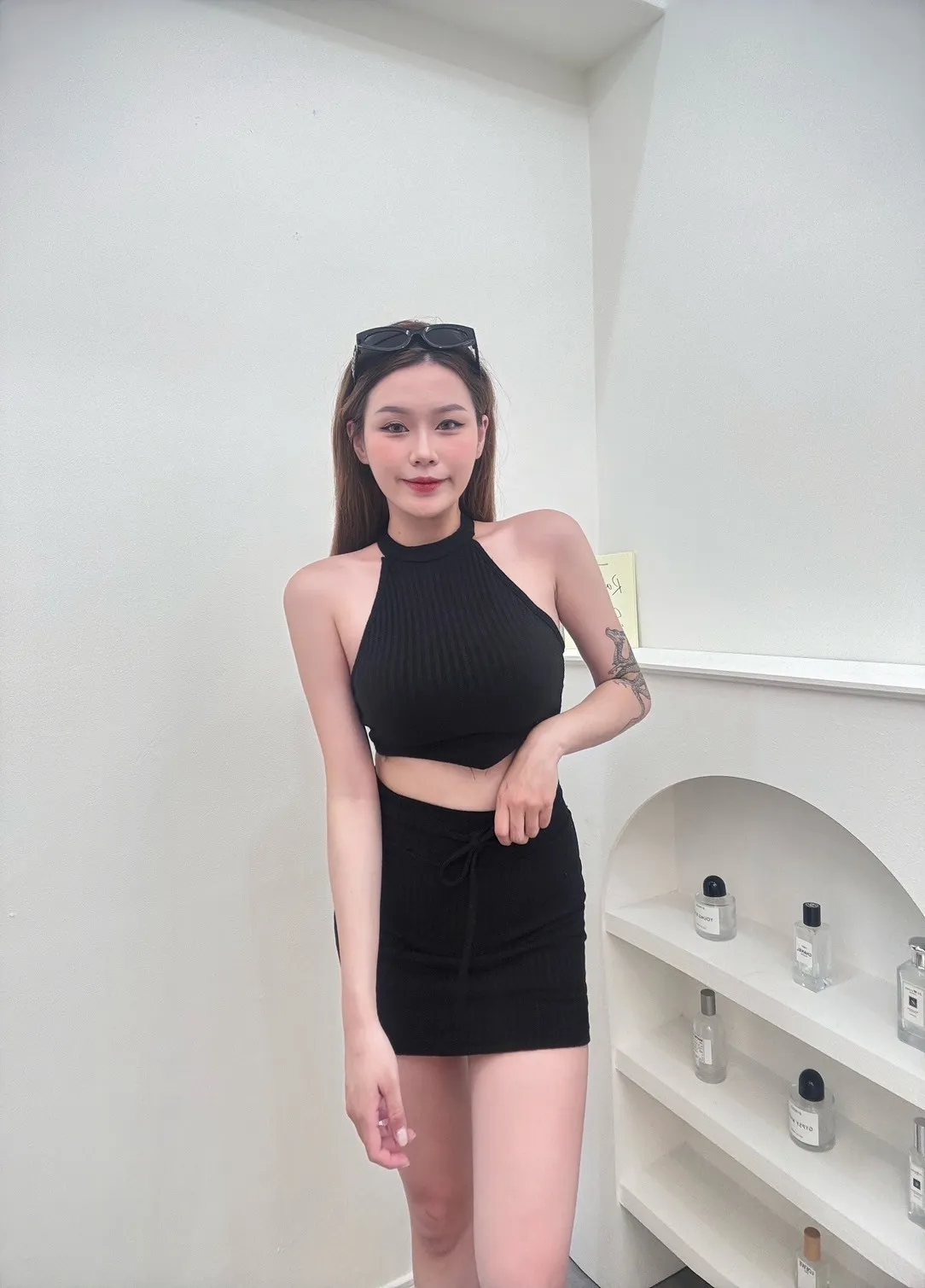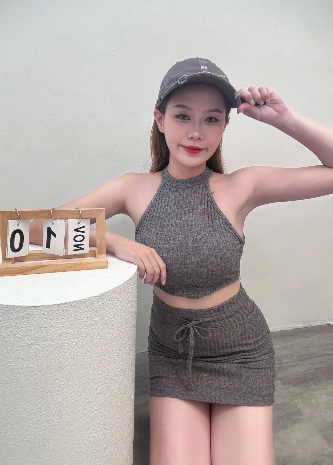 𝒔𝒉𝒆𝒓𝒓𝒚𝒔𝒕𝒐𝒓𝒆夏日微風坑條削肩罩杯套裝裙L3869