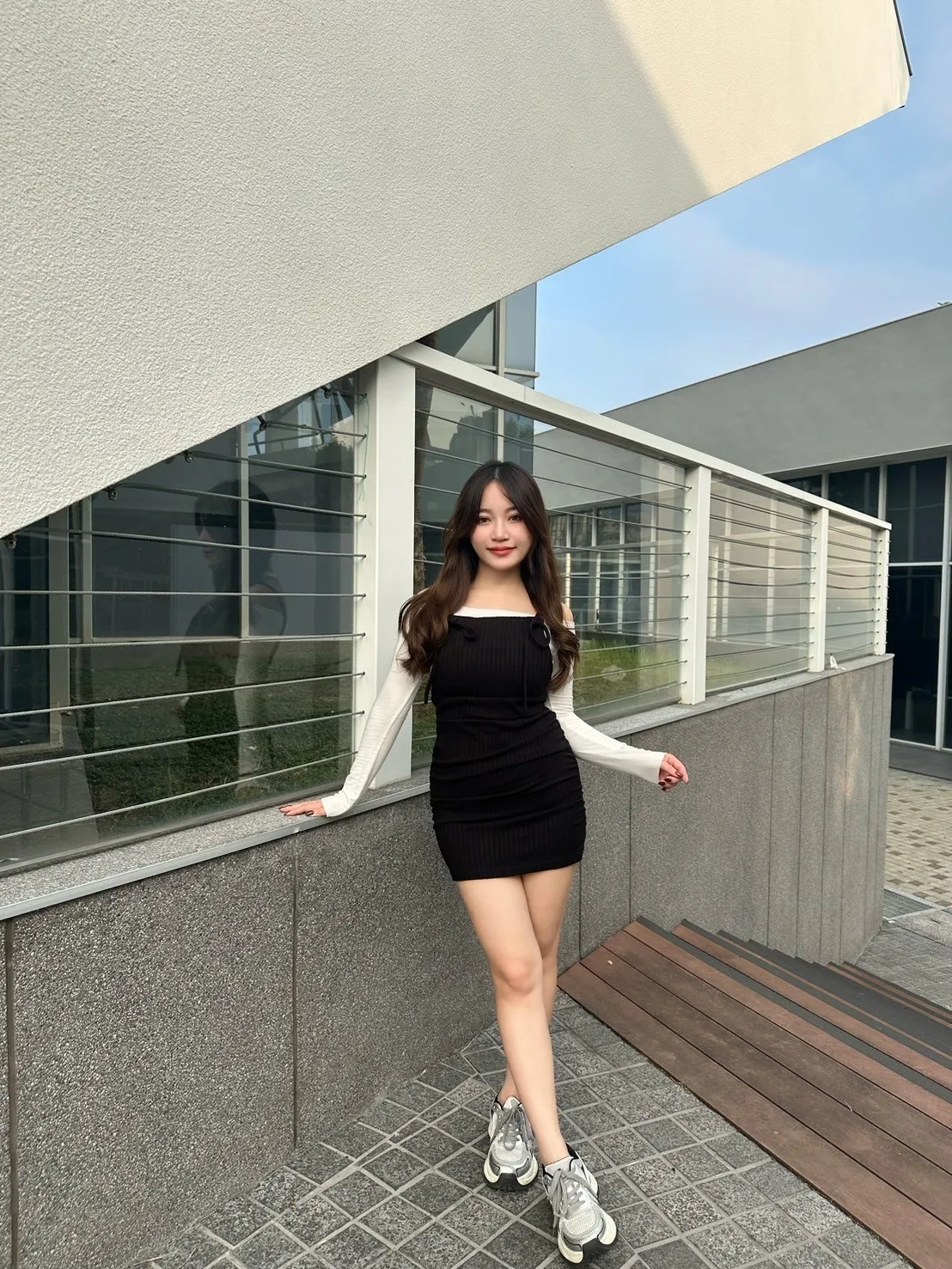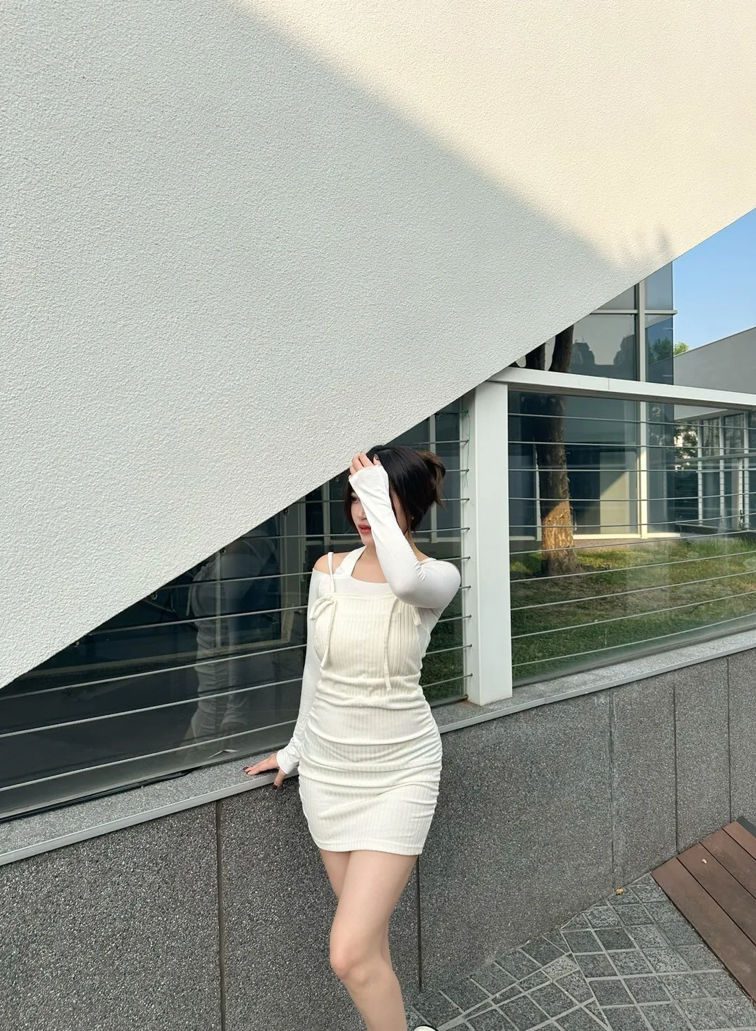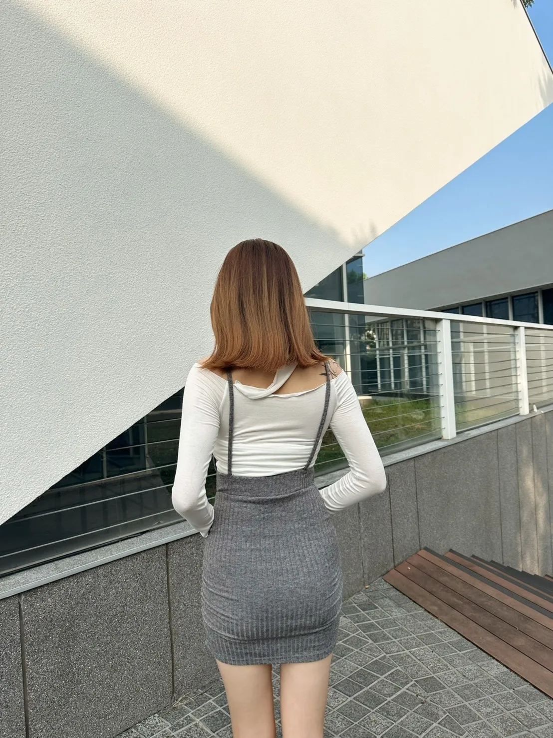 白色闆娘實穿:150/40灰色實穿MODEL:165/44可調節設計 高個矮個寶子們都可以輕鬆駕馭😍 棉料材質手感親膚 搭配一字領白色上衣減齡感十足🎀可愛感滿滿><微抓皺設計 有腰身 遮肚肚肉 好加分呀💝