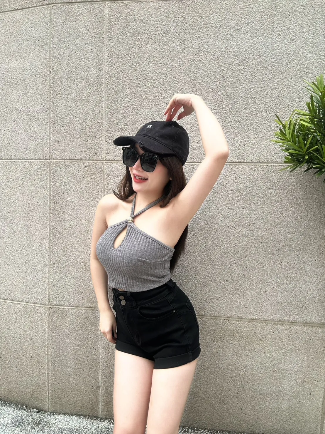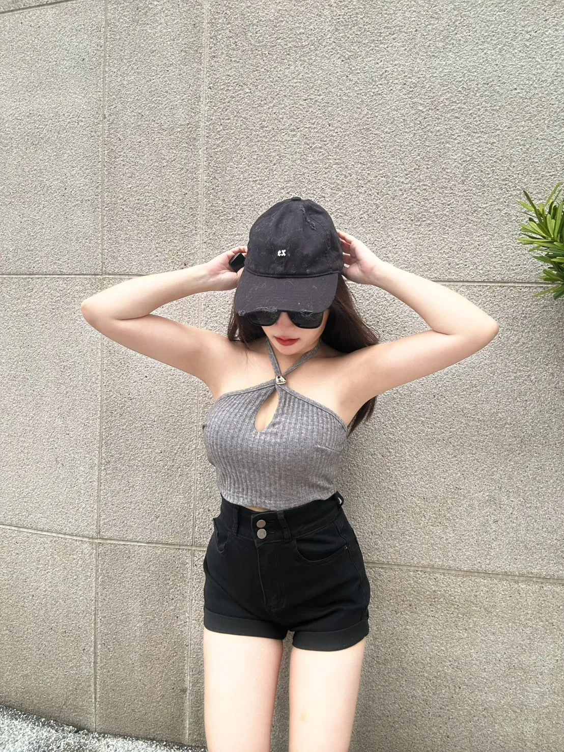 𝒔𝒉𝒆𝒓𝒓𝒚𝒔𝒕𝒐𝒓𝒆清涼一夏質感愛心扣簍空爆乳上衣L4196