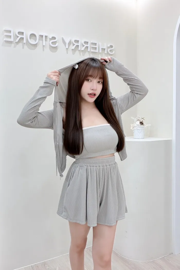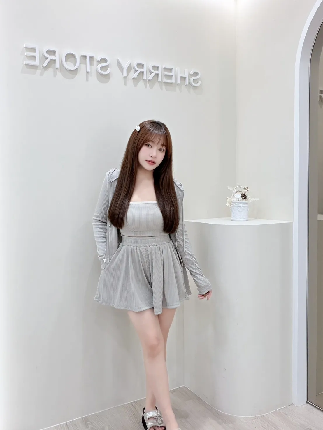 𝒔𝒉𝒆𝒓𝒓𝒚𝒔𝒕𝒐𝒓𝒆涼感辣妹撞色抹胸三件式套裝褲L4248