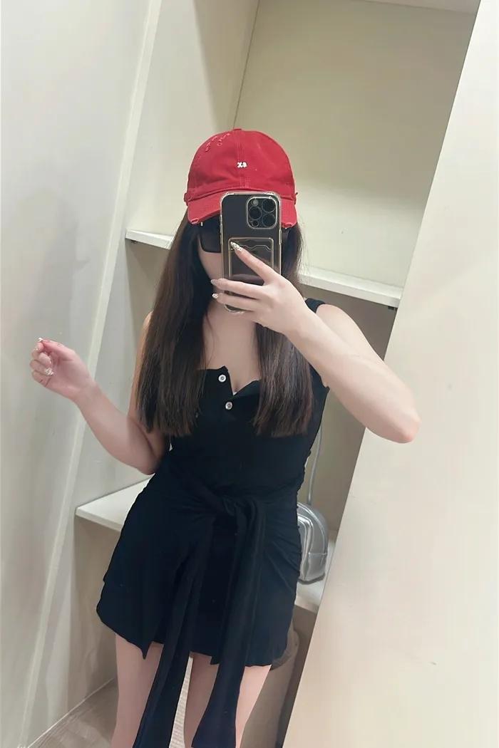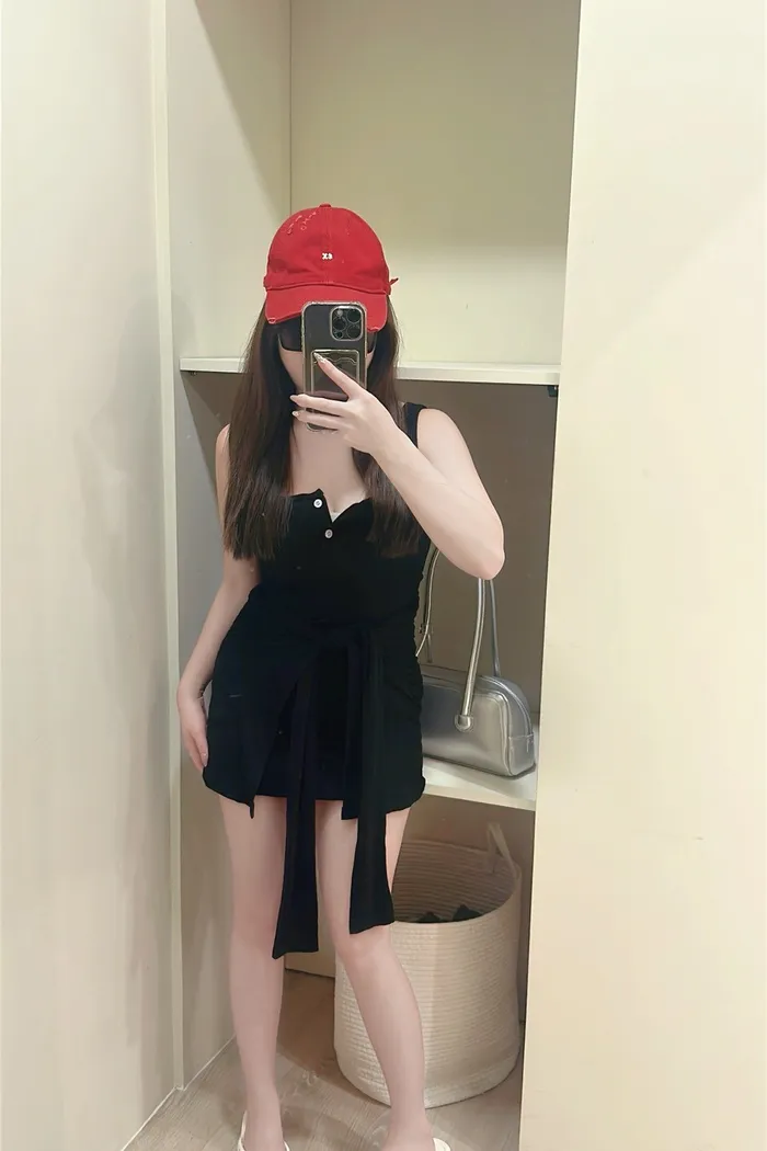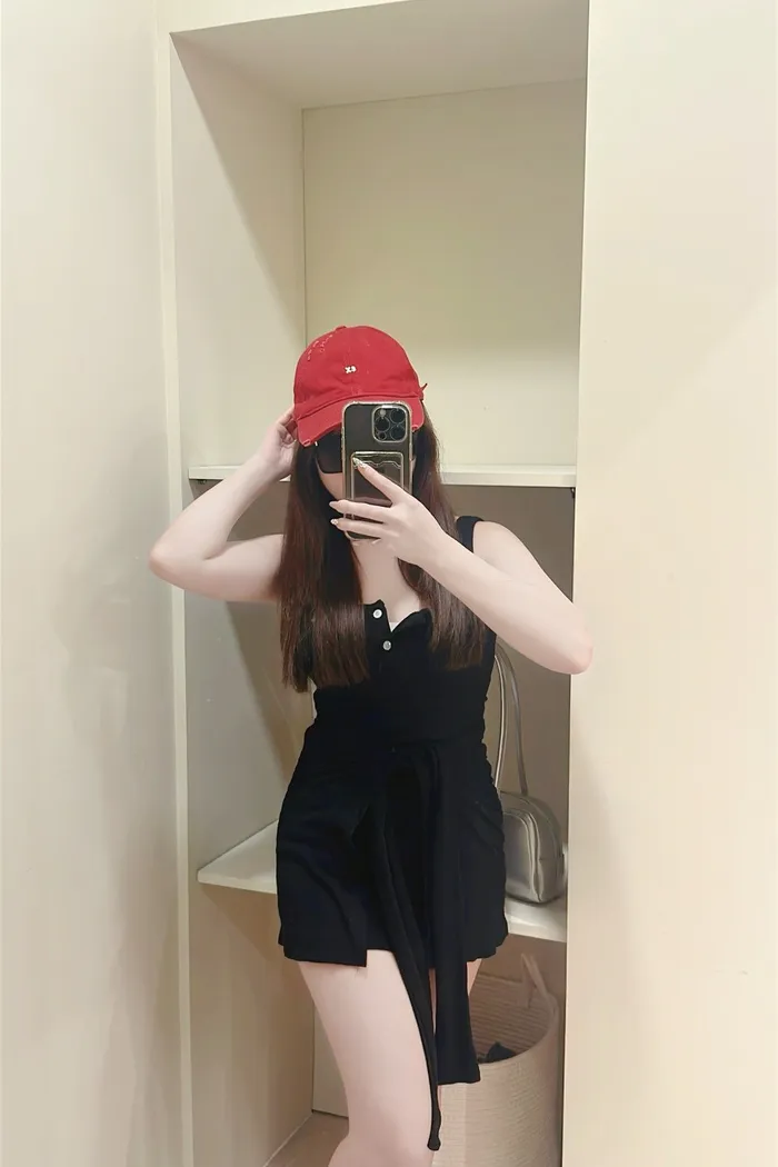 𝒔𝒉𝒆𝒓𝒓𝒚𝒔𝒕𝒐𝒓𝒆甜辣風吊帶綁腰彈力側抓皺短洋L4280