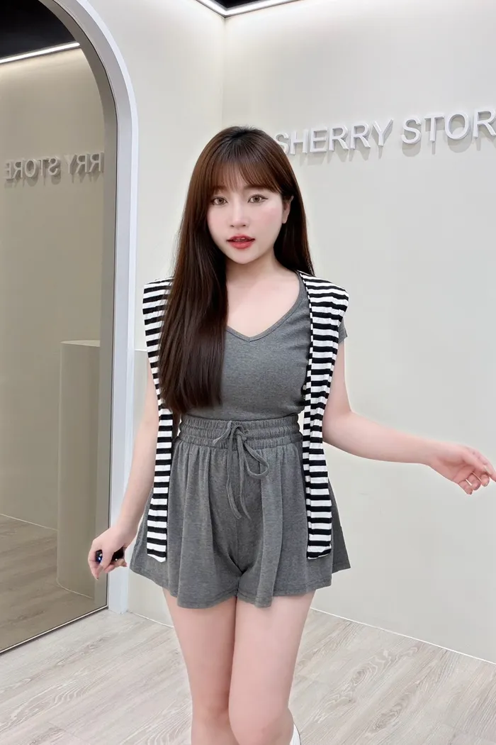 𝒔𝒉𝒆𝒓𝒓𝒚𝒔𝒕𝒐𝒓𝒆學院減齡感條紋三件套褲裝(披肩分開的)L4381