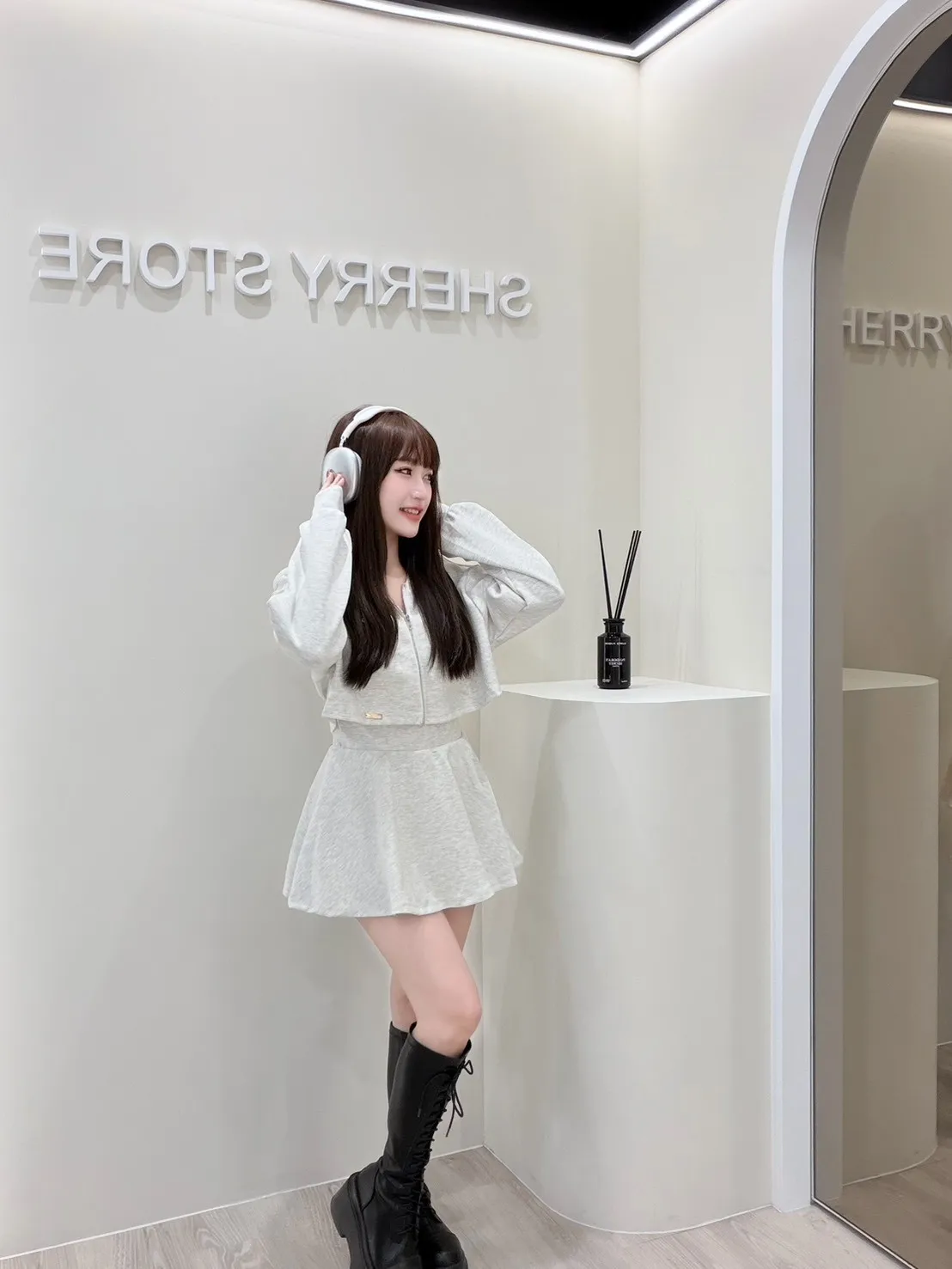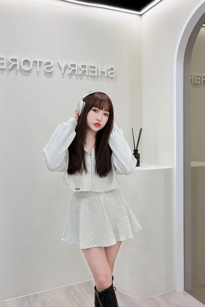 𝒔𝒉𝒆𝒓𝒓𝒚𝒔𝒕𝒐𝒓𝒆秒變韓國女高中生!!木耳邊連帽短版鬆緊三件套傘裙L4390