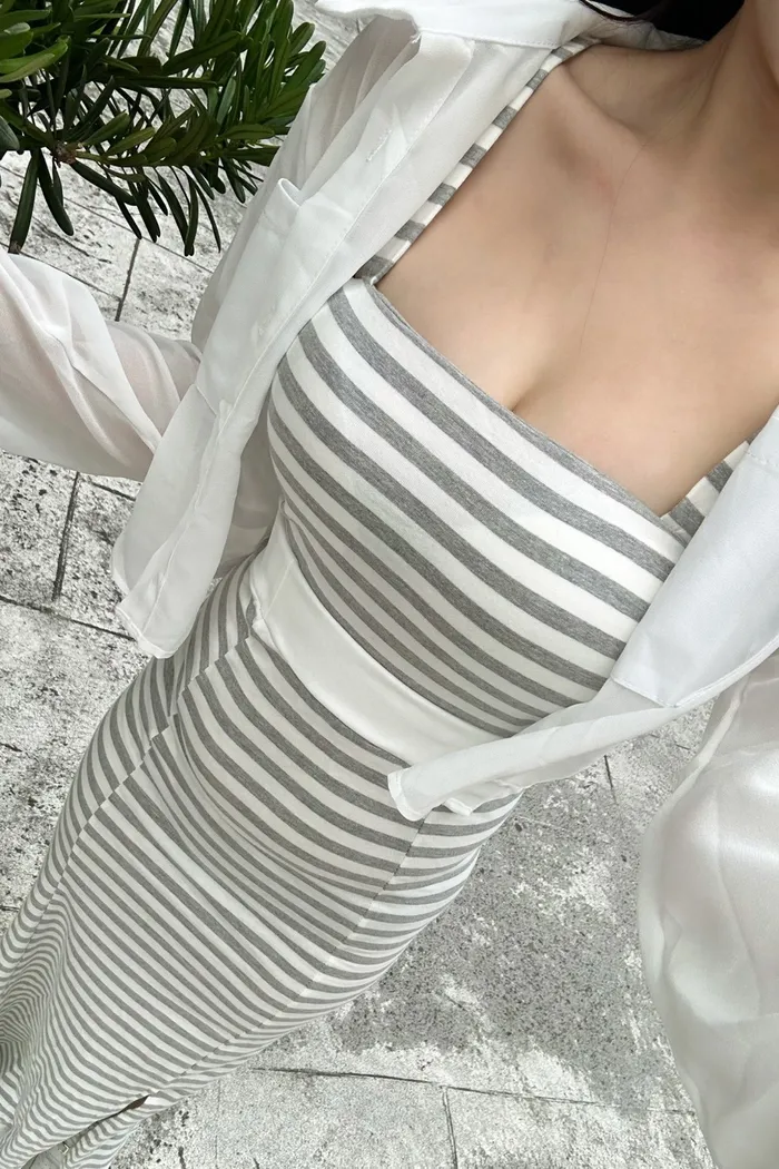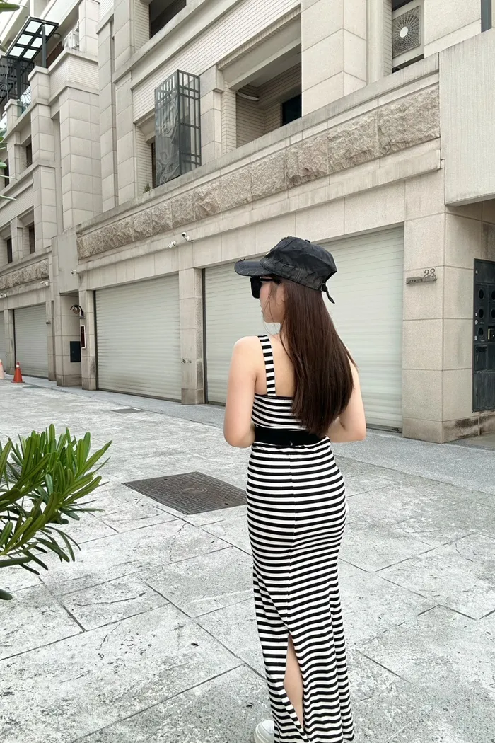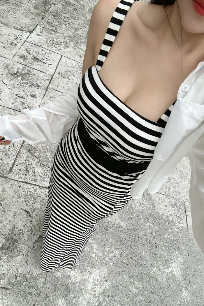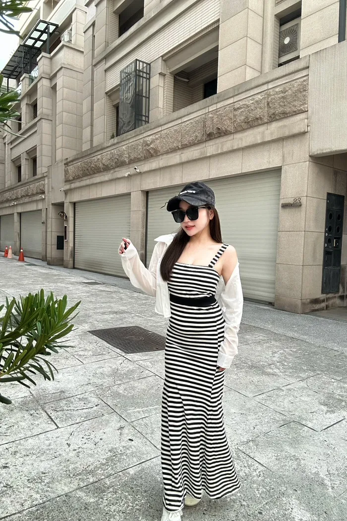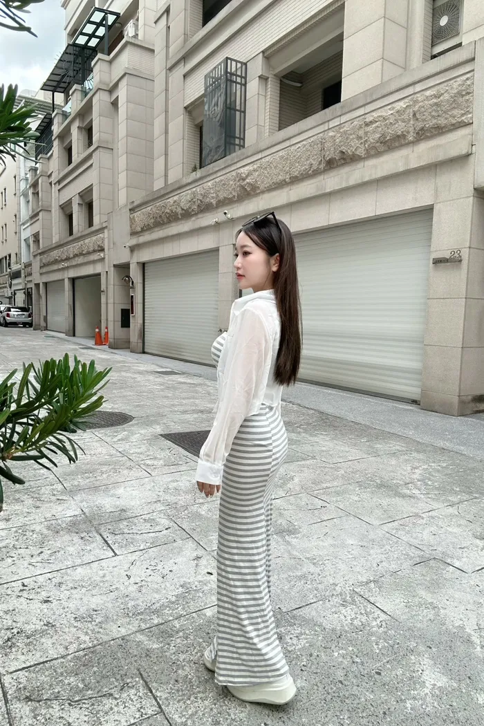 𝒔𝒉𝒆𝒓𝒓𝒚𝒔𝒕𝒐𝒓𝒆休閒雪紡透膚寬條紋開衩包臀三件套長裙L4398