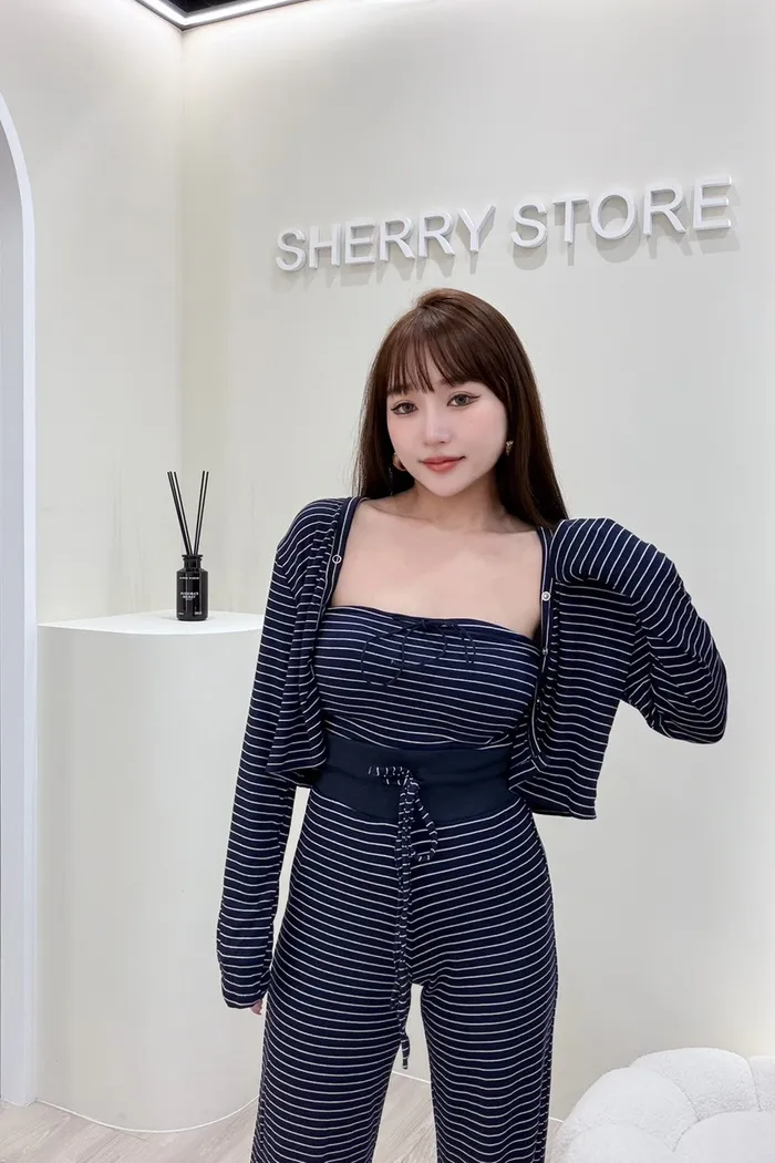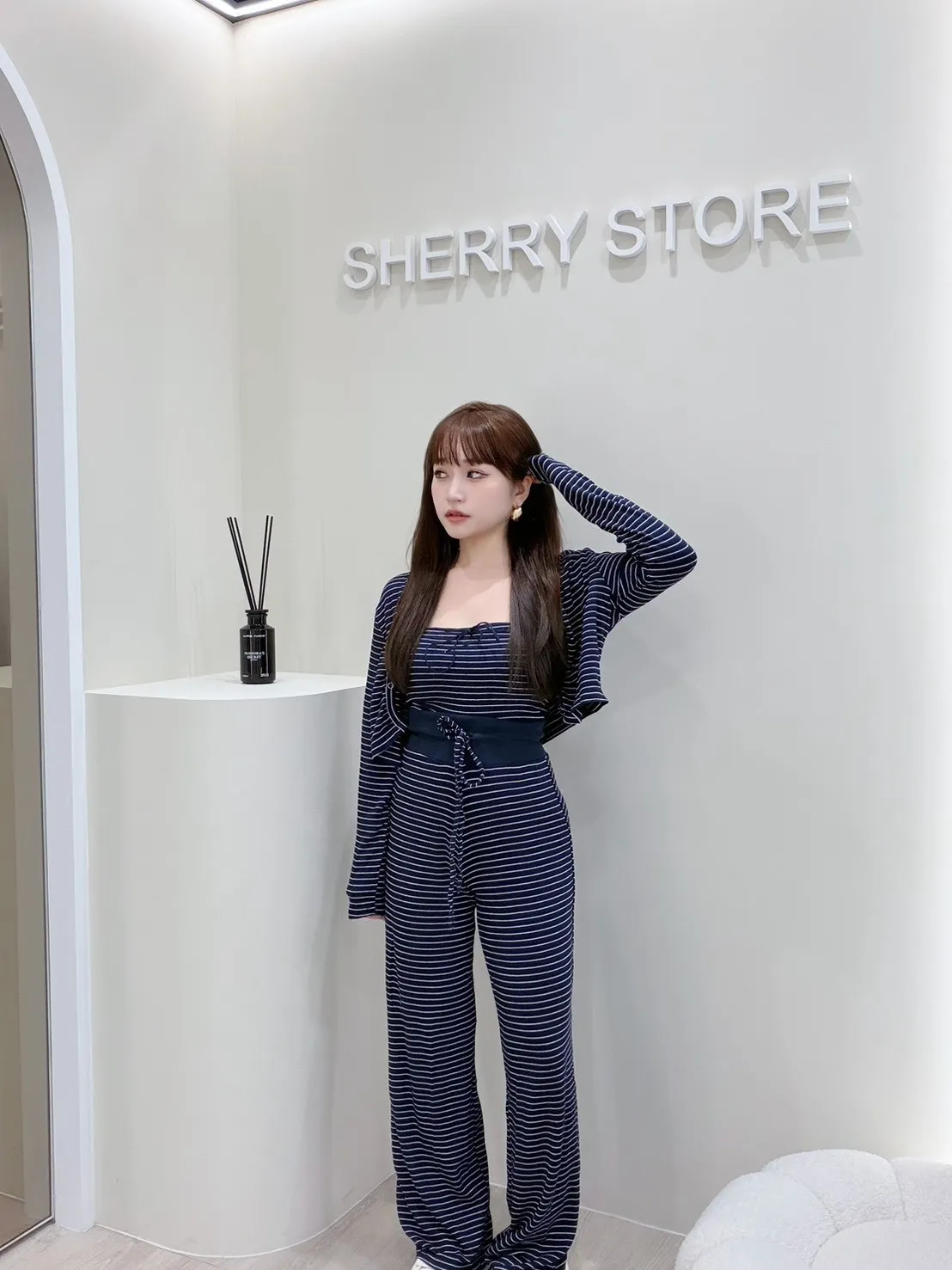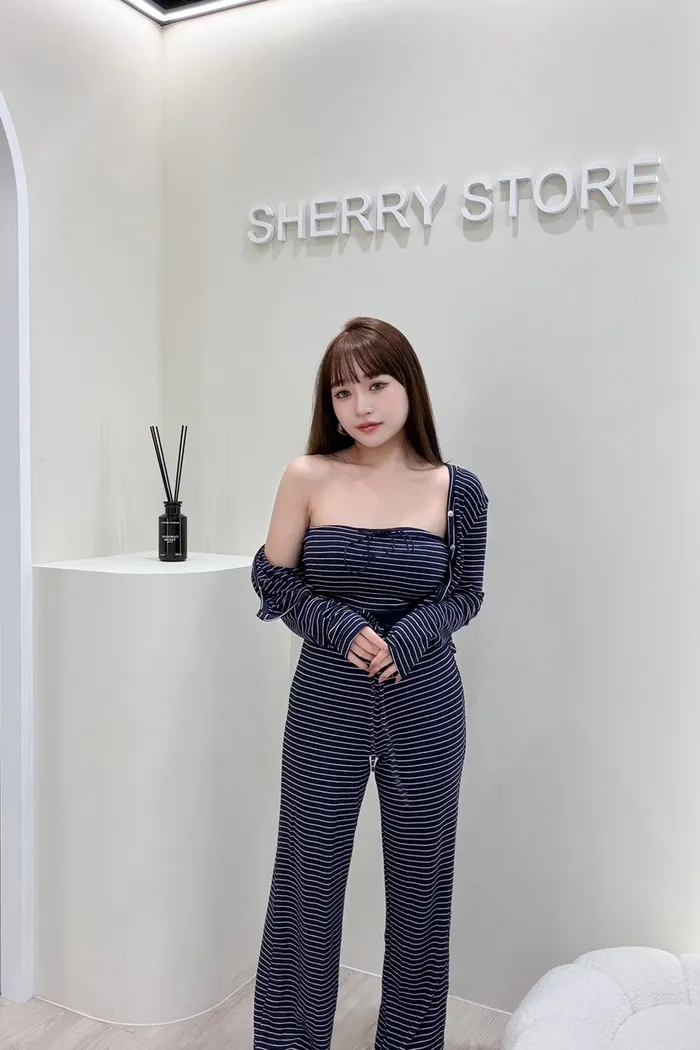 𝒔𝒉𝒆𝒓𝒓𝒚𝒔𝒕𝒐𝒓𝒆早秋ins條紋微性感抹胸三件套褲L4530