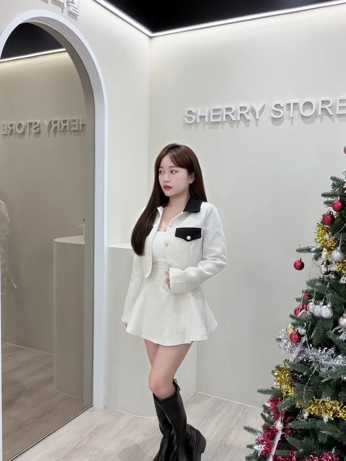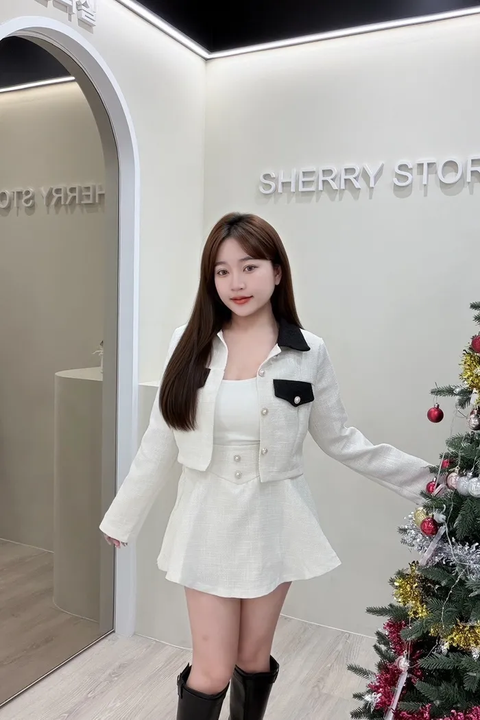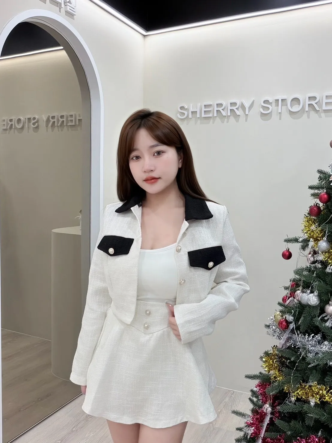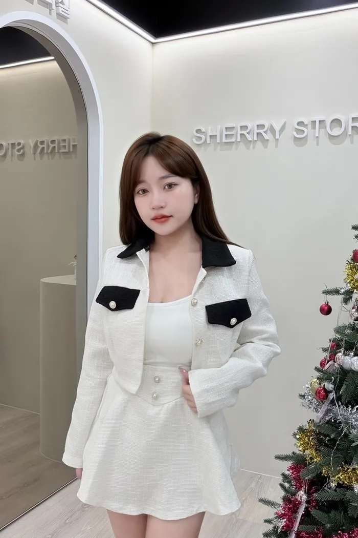 𝒔𝒉𝒆𝒓𝒓𝒚𝒔𝒕𝒐𝒓𝒆法式小香風珍珠扣短版外套套裝L4609