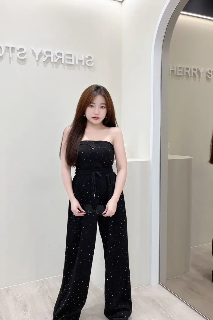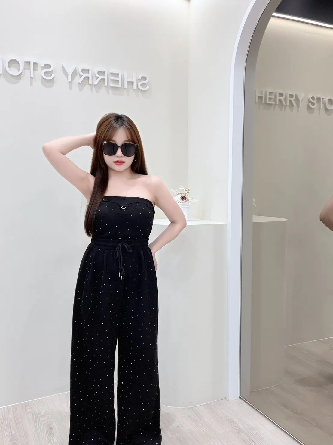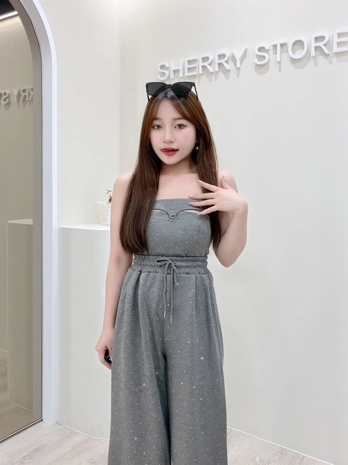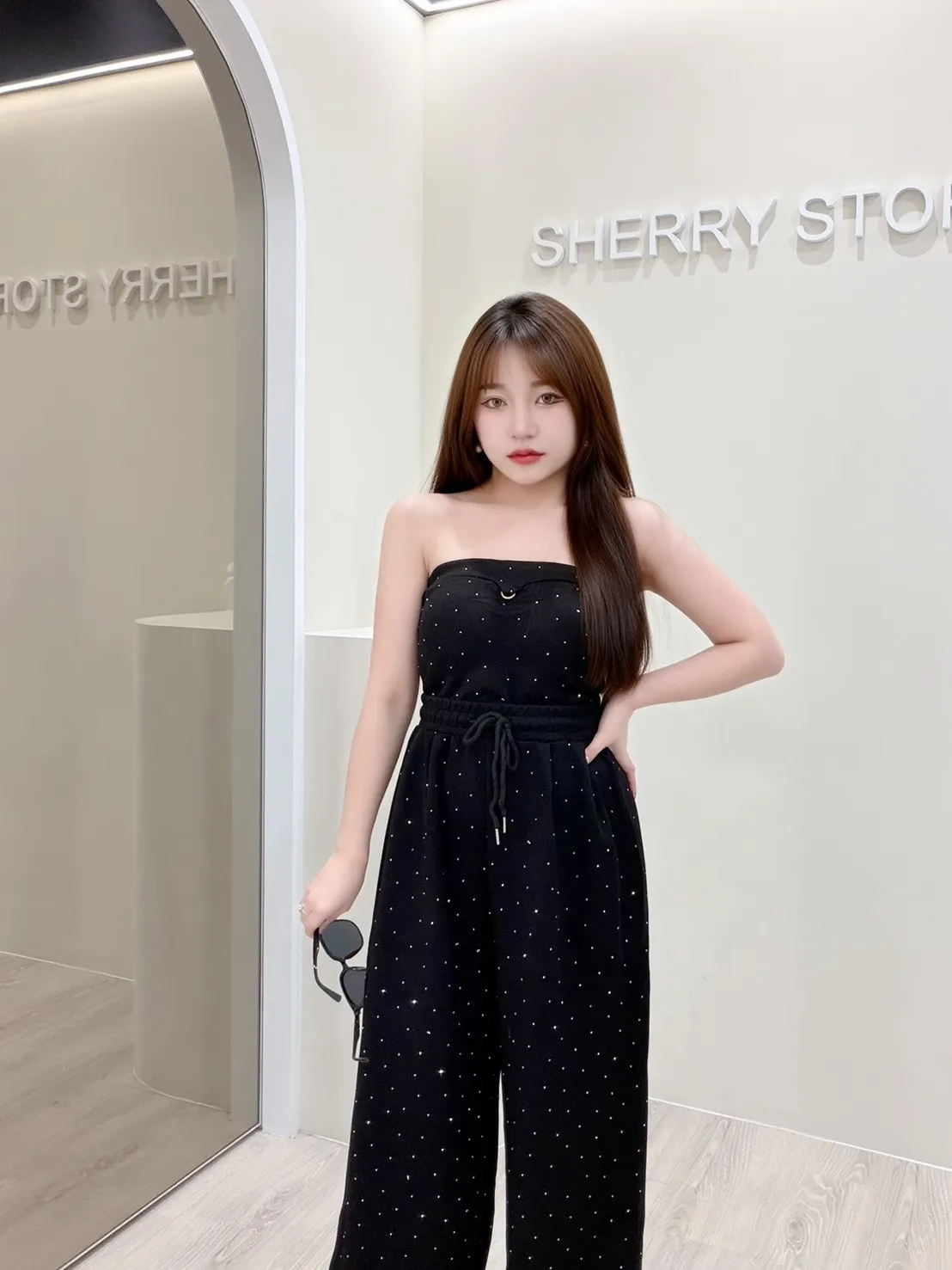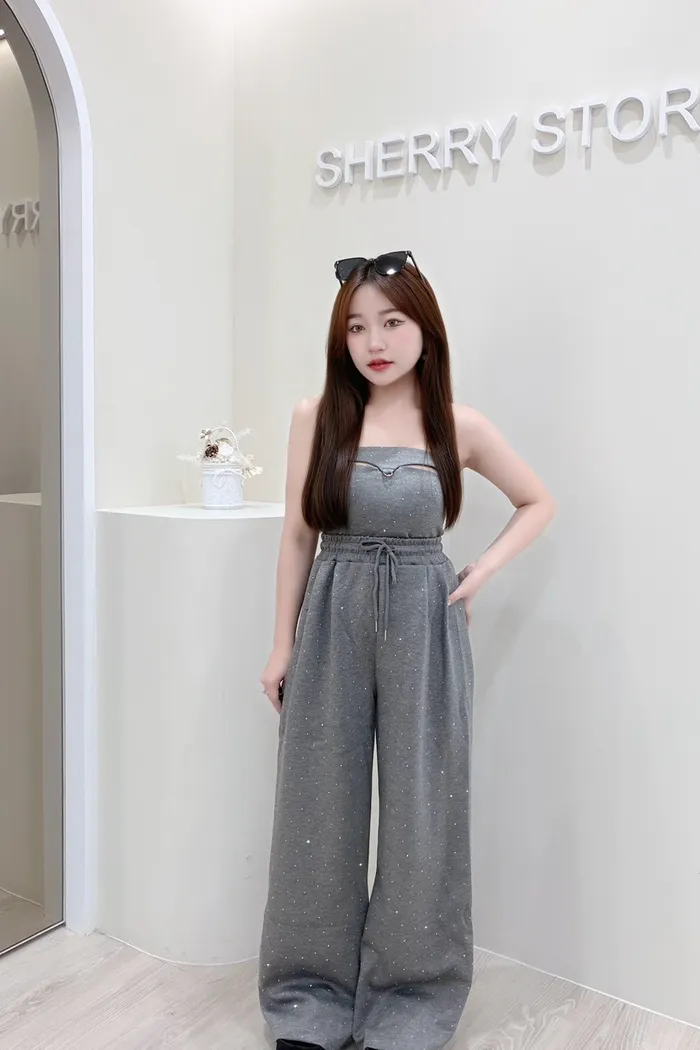 𝒔𝒉𝒆𝒓𝒓𝒚𝒔𝒕𝒐𝒓𝒆L美式辣妹性感抹胸閃鑽套裝褲L4724