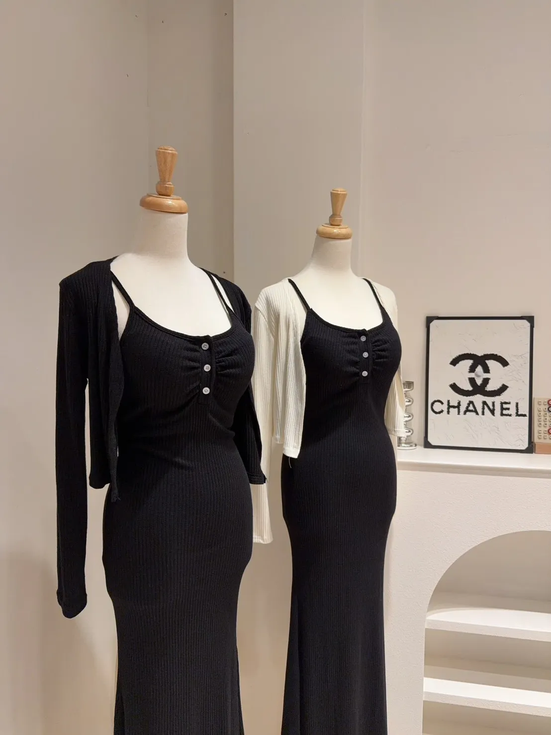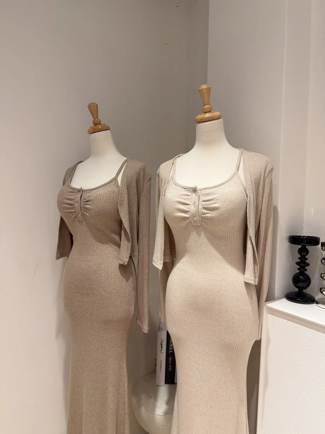 𝒔𝒉𝒆𝒓𝒓𝒚𝒔𝒕𝒐𝒓𝒆韓系CHIC溫柔小姐姐抓皺桃心連身裙+小外套兩件套LM1394
