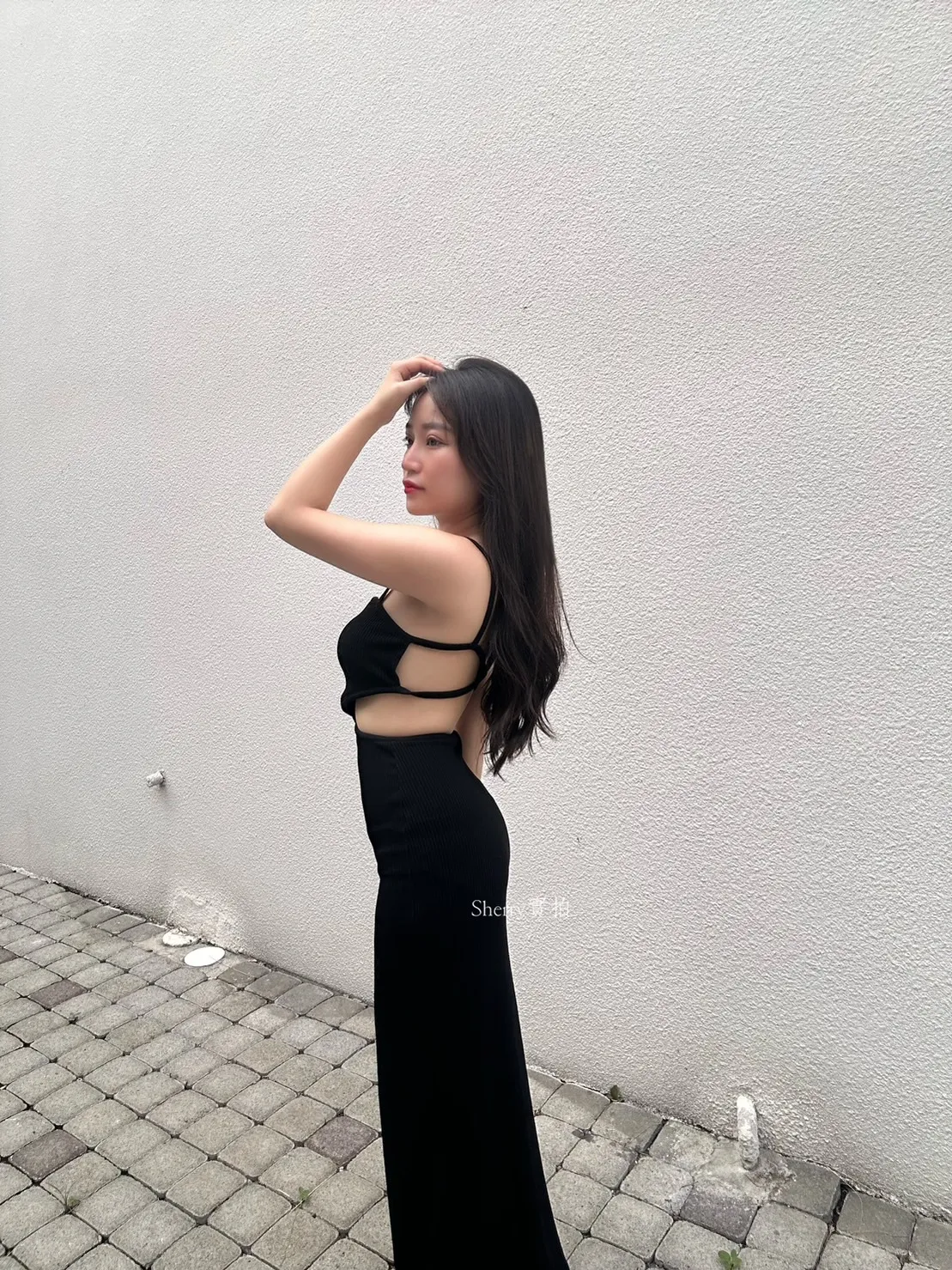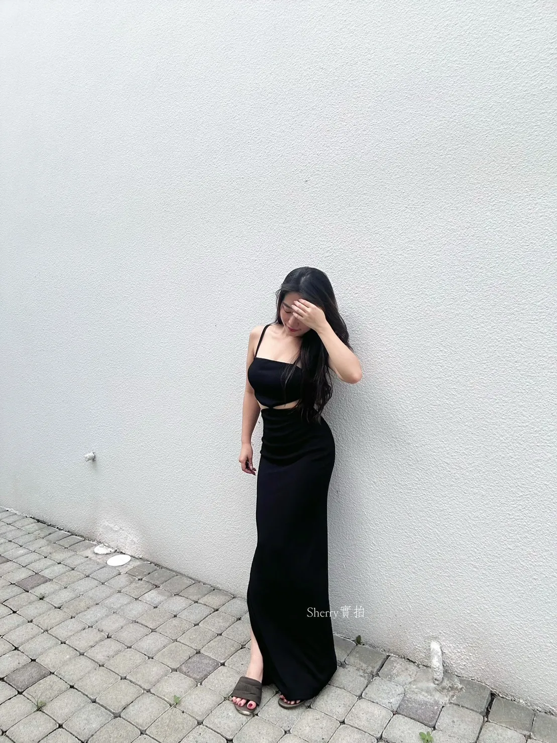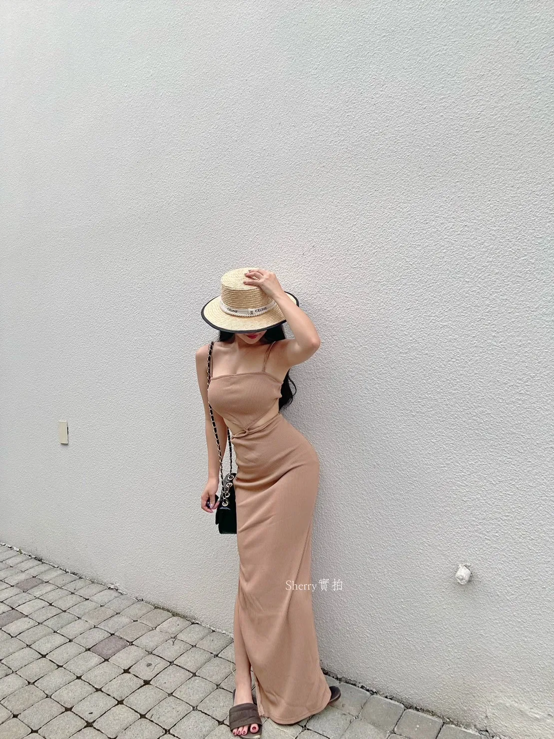 渡假款歐美風簍空後露背交叉性感連身開衩裙 M3248