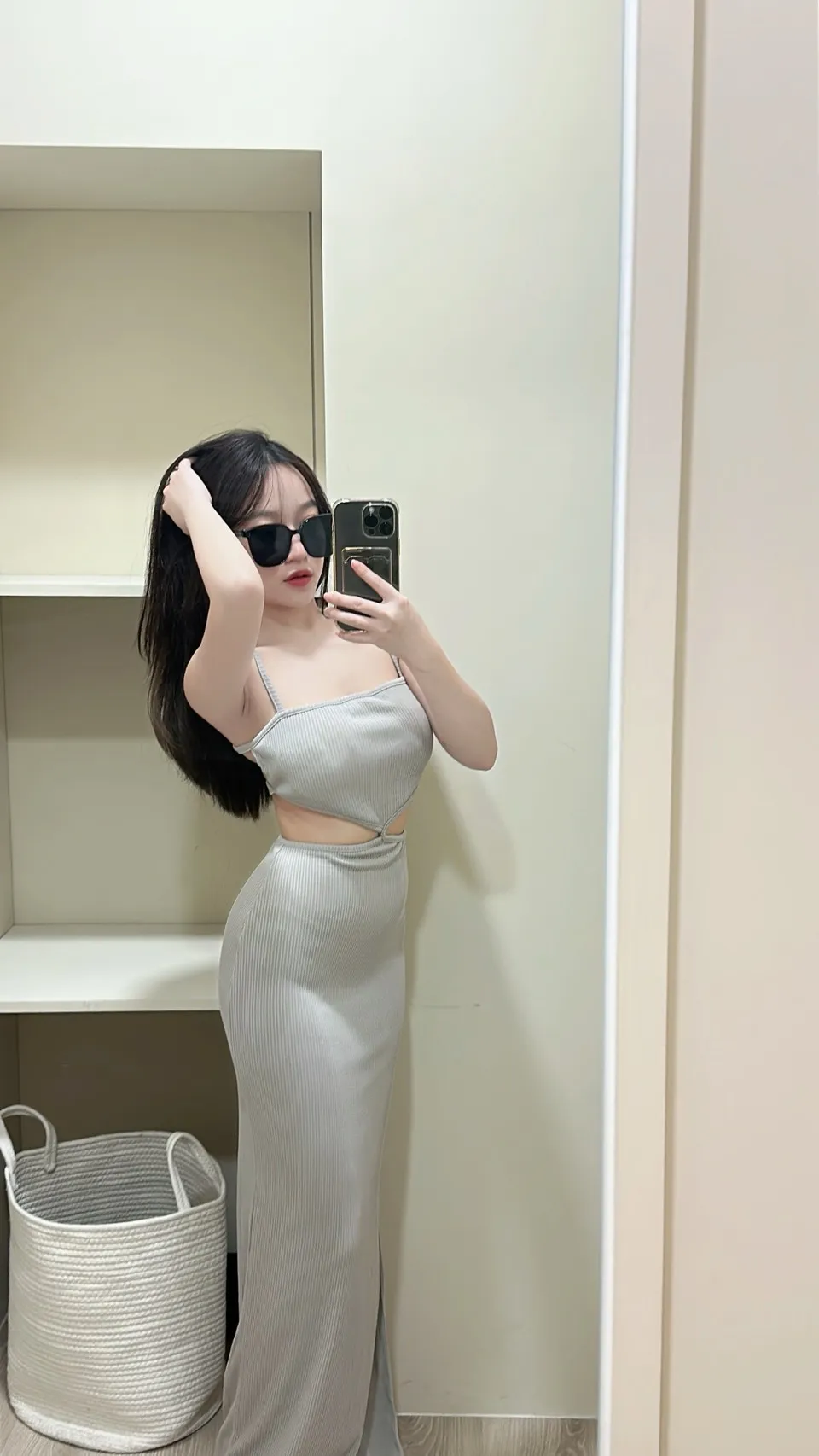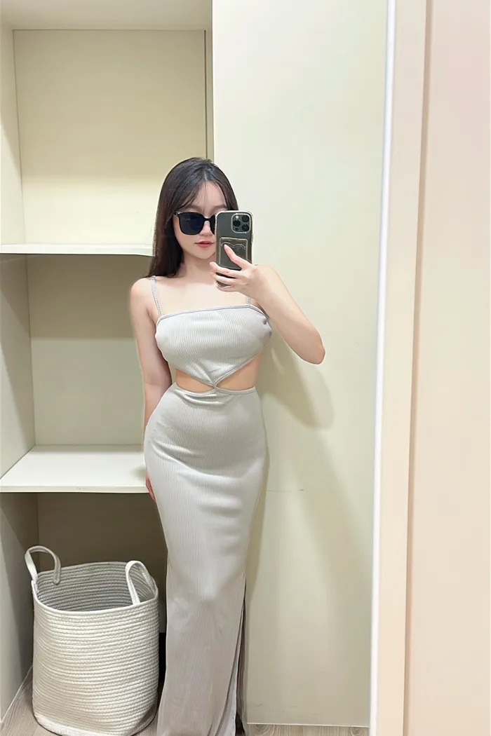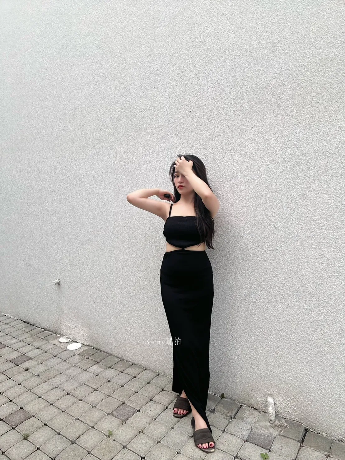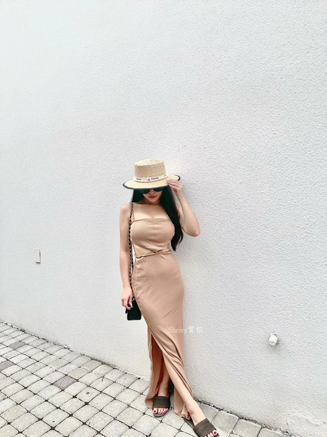 渡假款歐美風簍空後露背交叉性感連身開衩裙 M3248