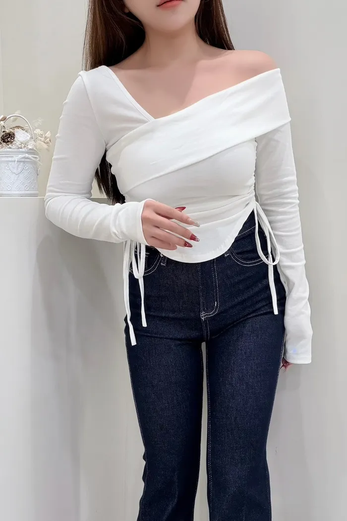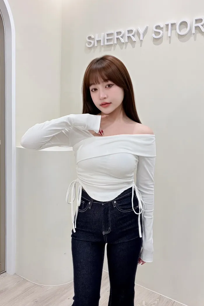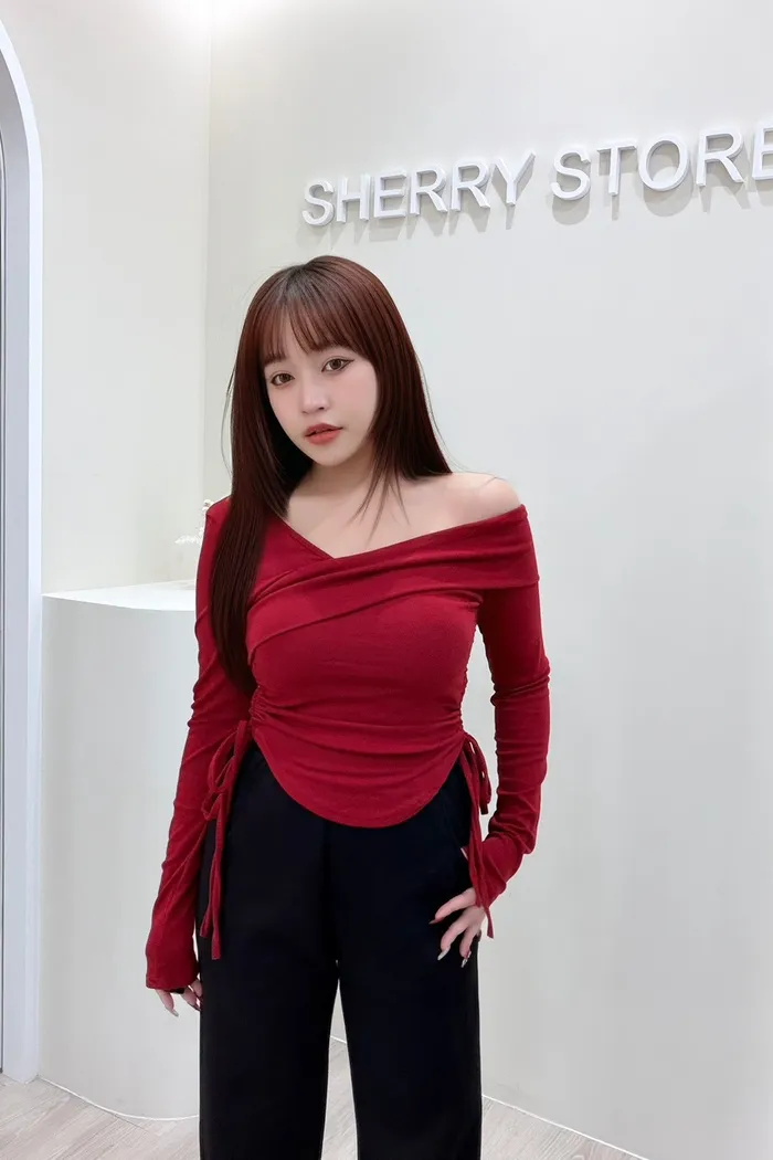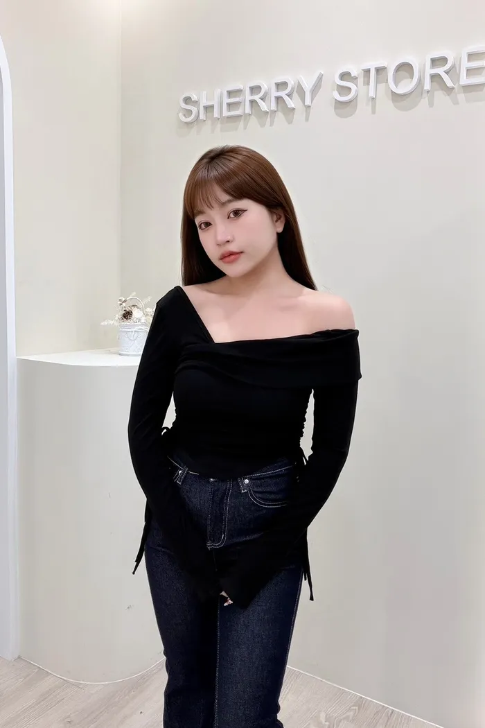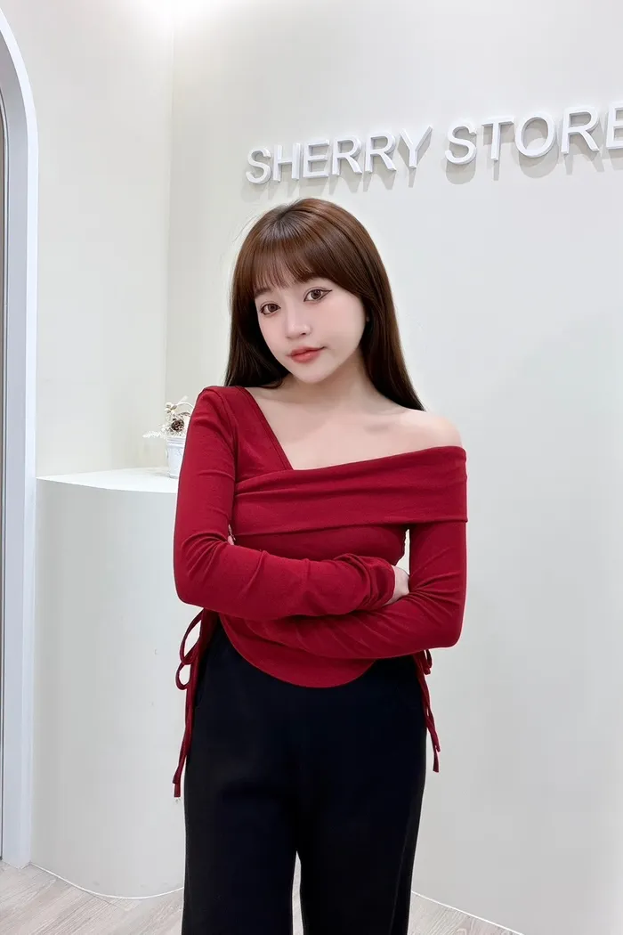 𝒔𝒉𝒆𝒓𝒓𝒚𝒔𝒕𝒐𝒓𝒆誰穿誰正妹設計感露單香肩上衣ML2812