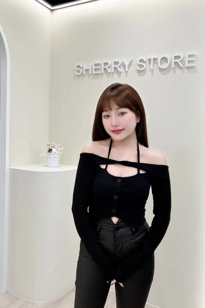 𝒔𝒉𝒆𝒓𝒓𝒚𝒔𝒕𝒐𝒓𝒆小性感挖空掛脖長袖修身上衣ML2879