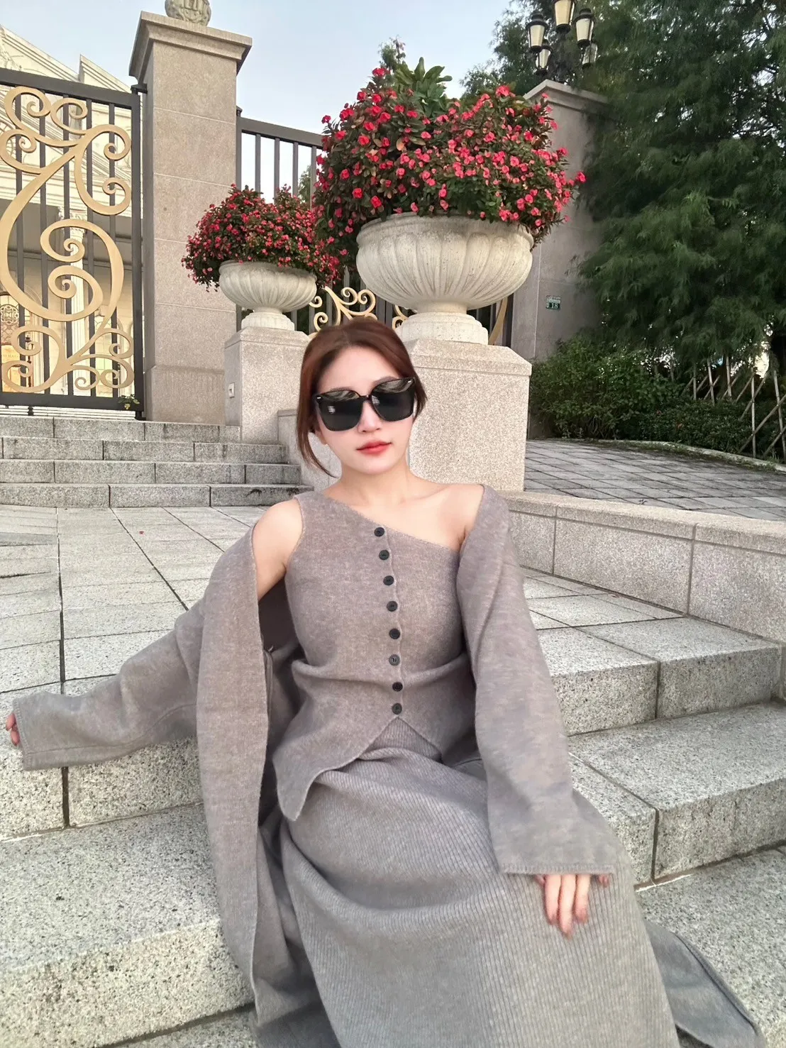 斜肩排釦不規則 露鎖骨 視覺上更加顯瘦💯