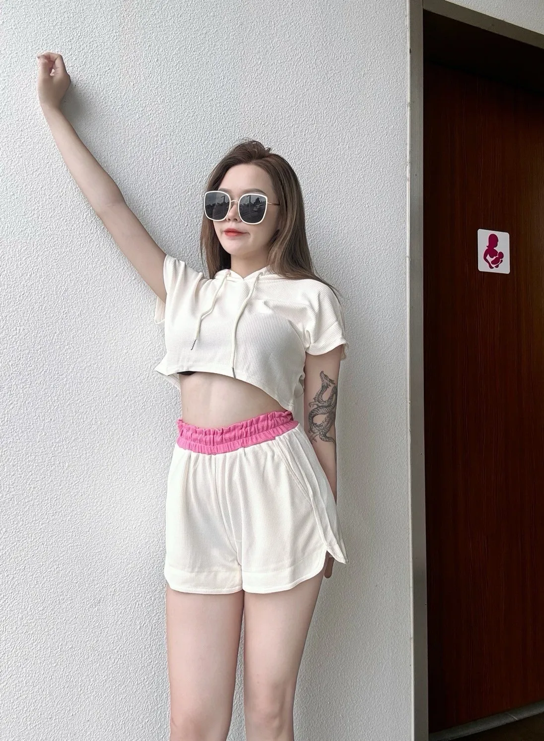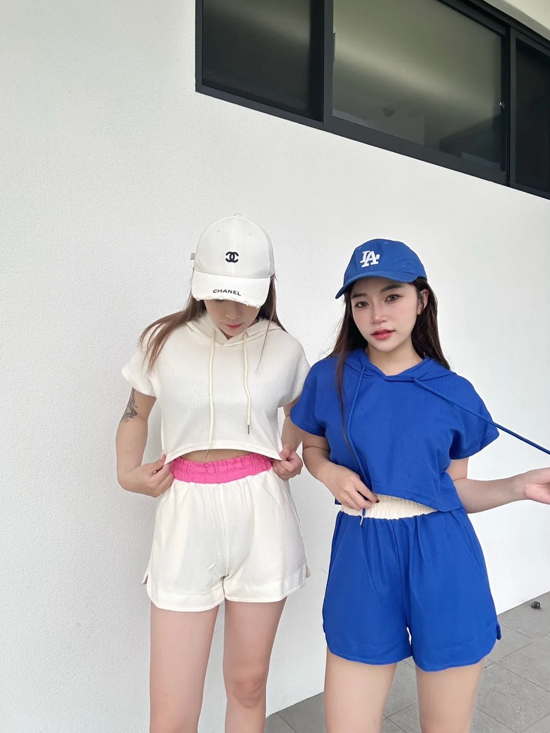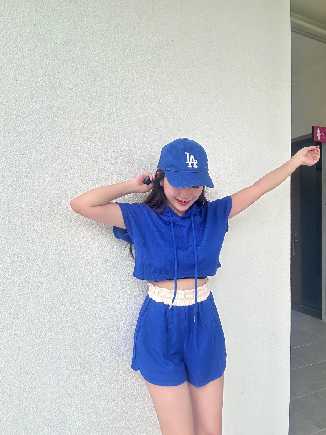 𝒔𝒉𝒆𝒓𝒓𝒚𝒔𝒕𝒐𝒓𝒆韓國撞色拼接華夫格連帽套裝褲 PE2012