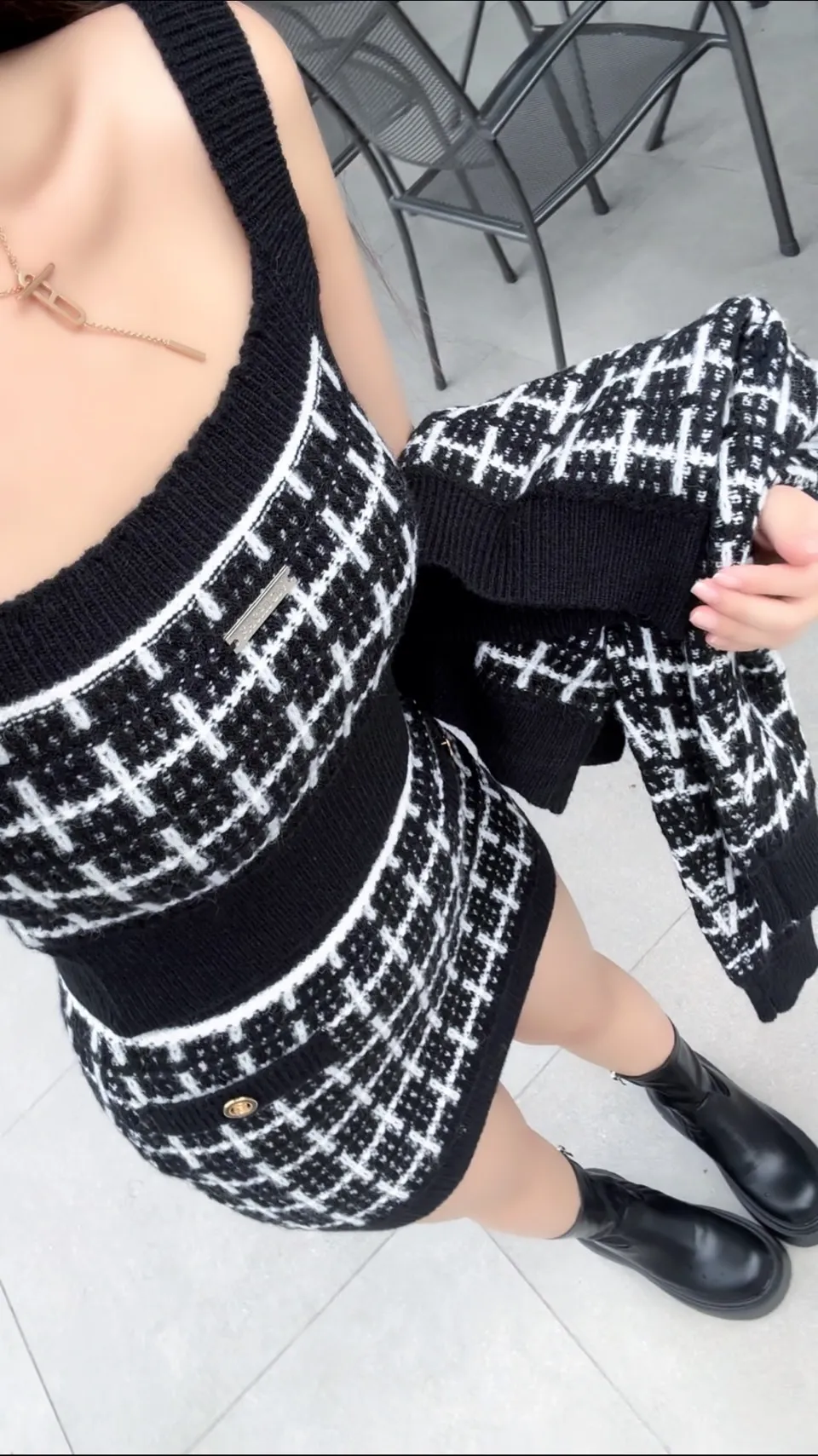 秋冬限定名媛風針織背心+短裙+小外套三件套PE3326