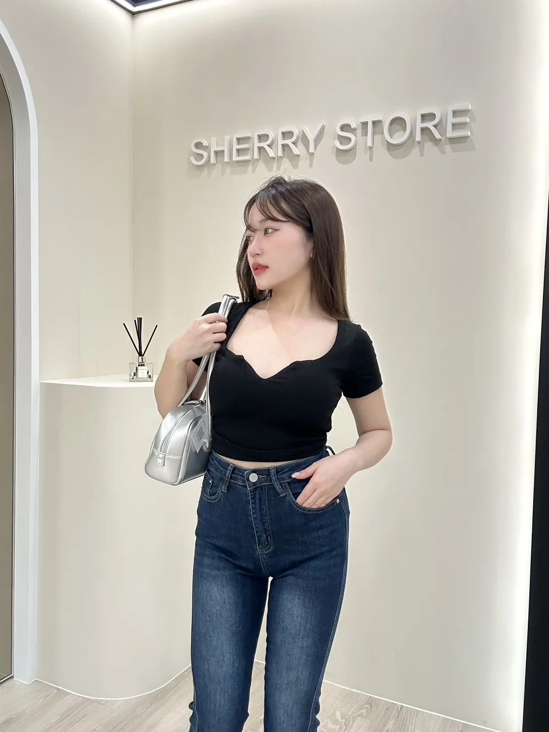 𝒔𝒉𝒆𝒓𝒓𝒚𝒔𝒕𝒐𝒓𝒆慵懶日常素面小V自帶罩杯抓皺上衣PE3601