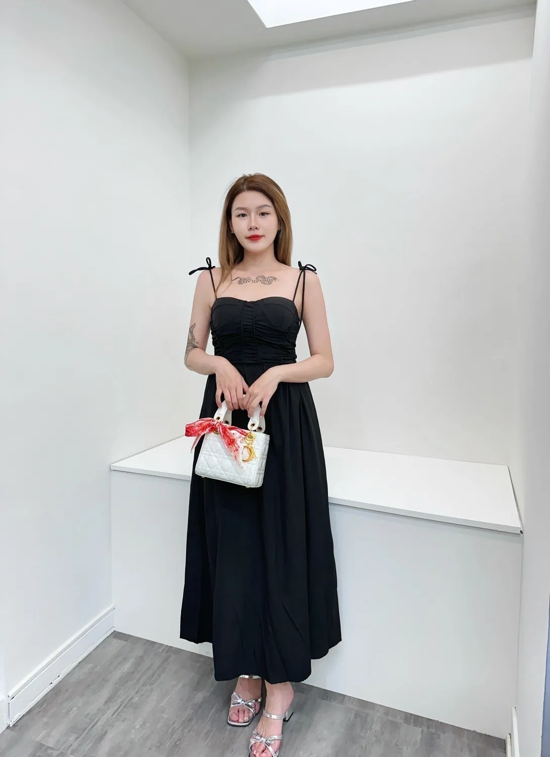 粉色闆娘實穿:150/40黑色實穿MODEL:156/52 巨彈!可以穿到L唷! 大胸寶寶們也可以閉眼入手的一款長洋🏝️ 附縫死薄墊 可以再貼Nu Bra讓胸型更好看💯 肩帶綁繩設計可自行調整 小個高個都沒問題! 穿上它!輕鬆擁有完美曲線 絕對不會像孕婦前抓皺設計 完全不凸顯小腹😚